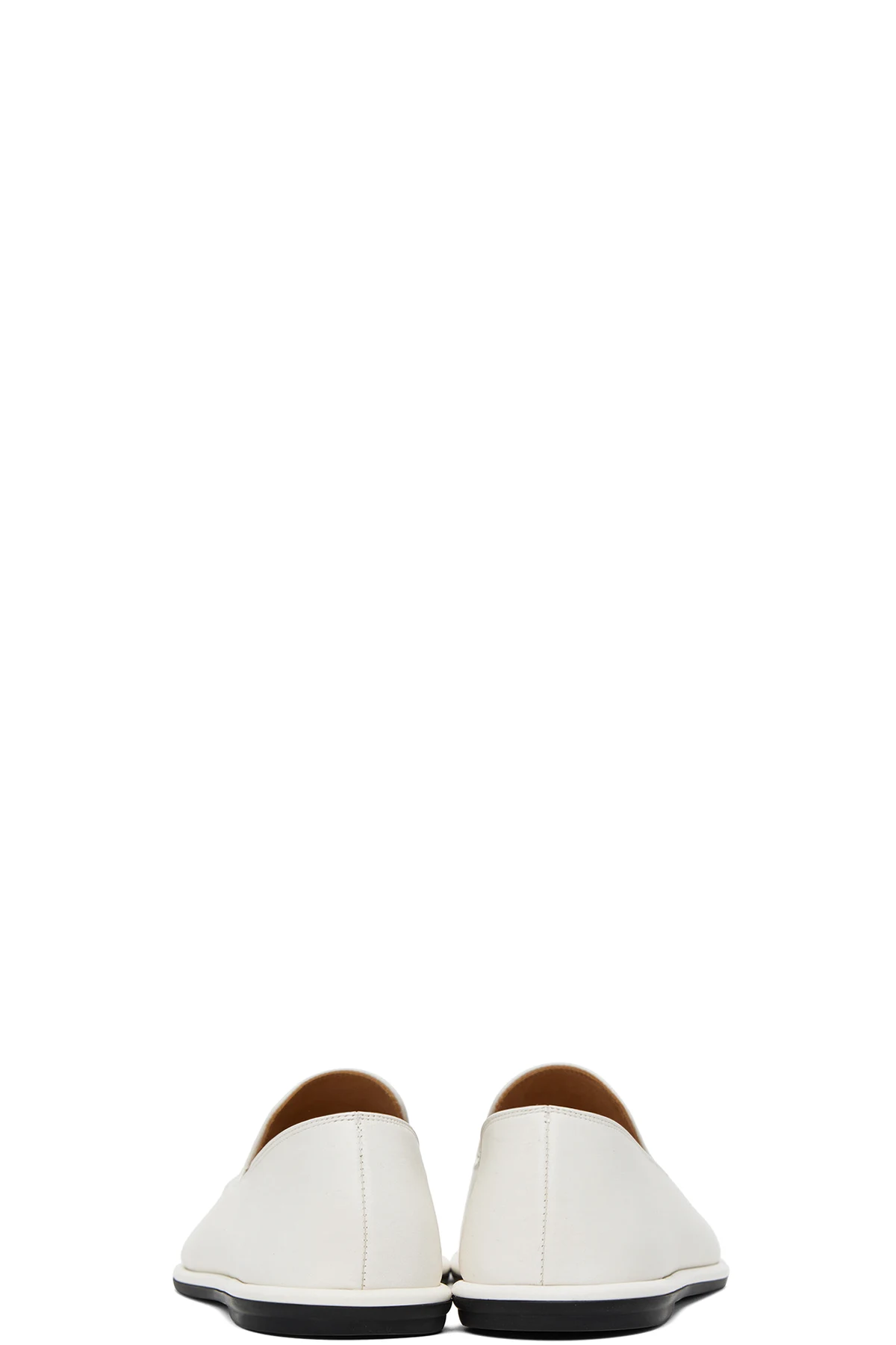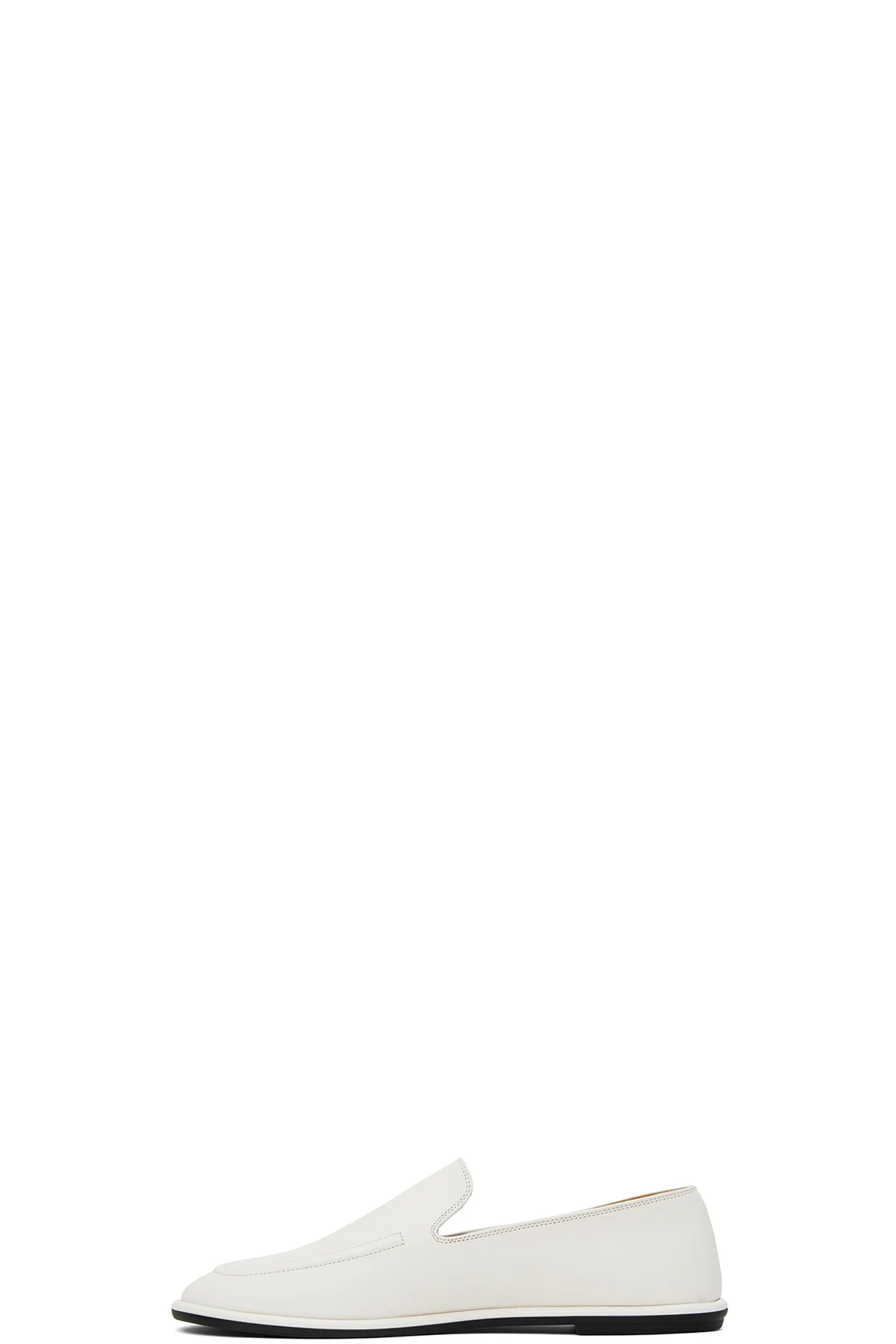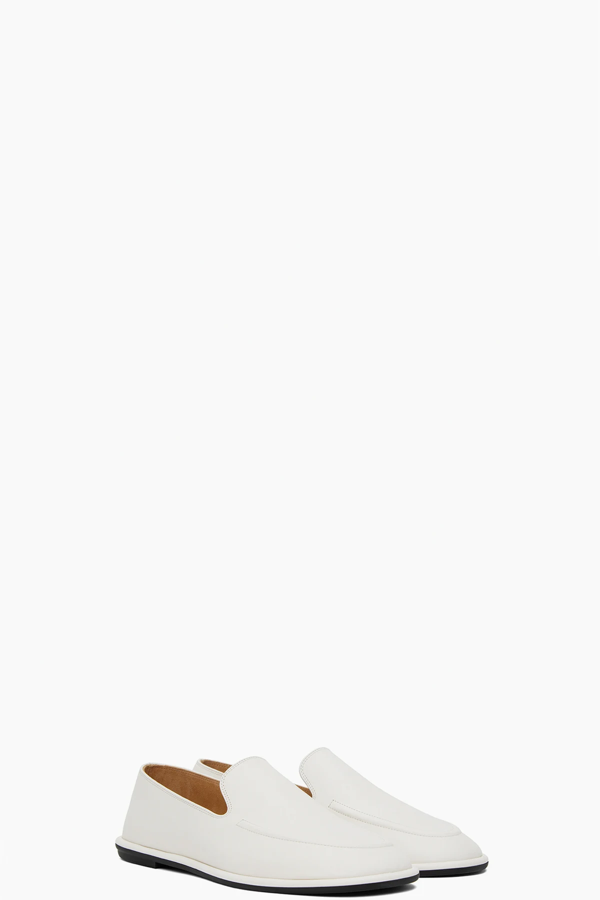 Vegetable-tanned buffed calfskin loafers in off-white.