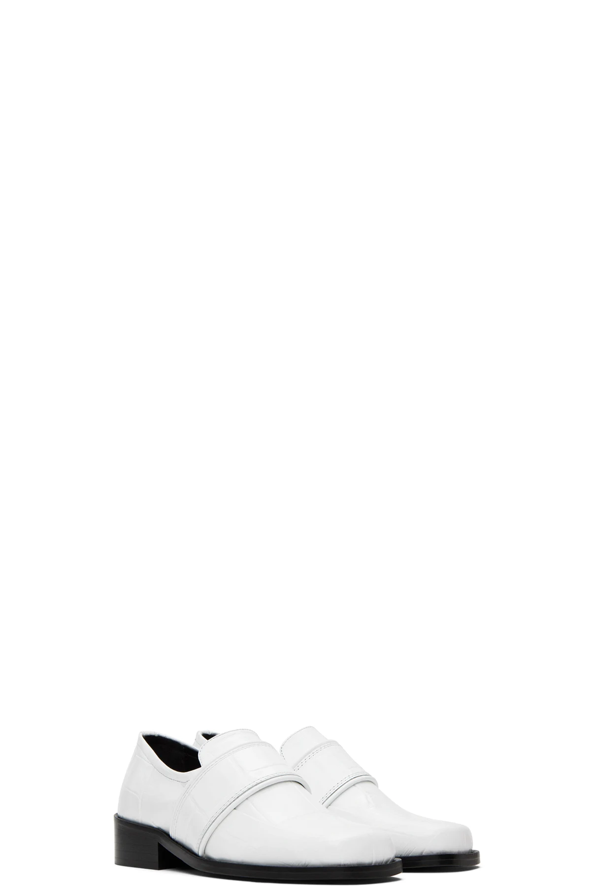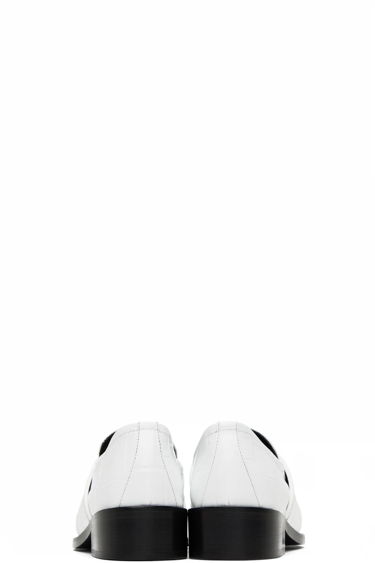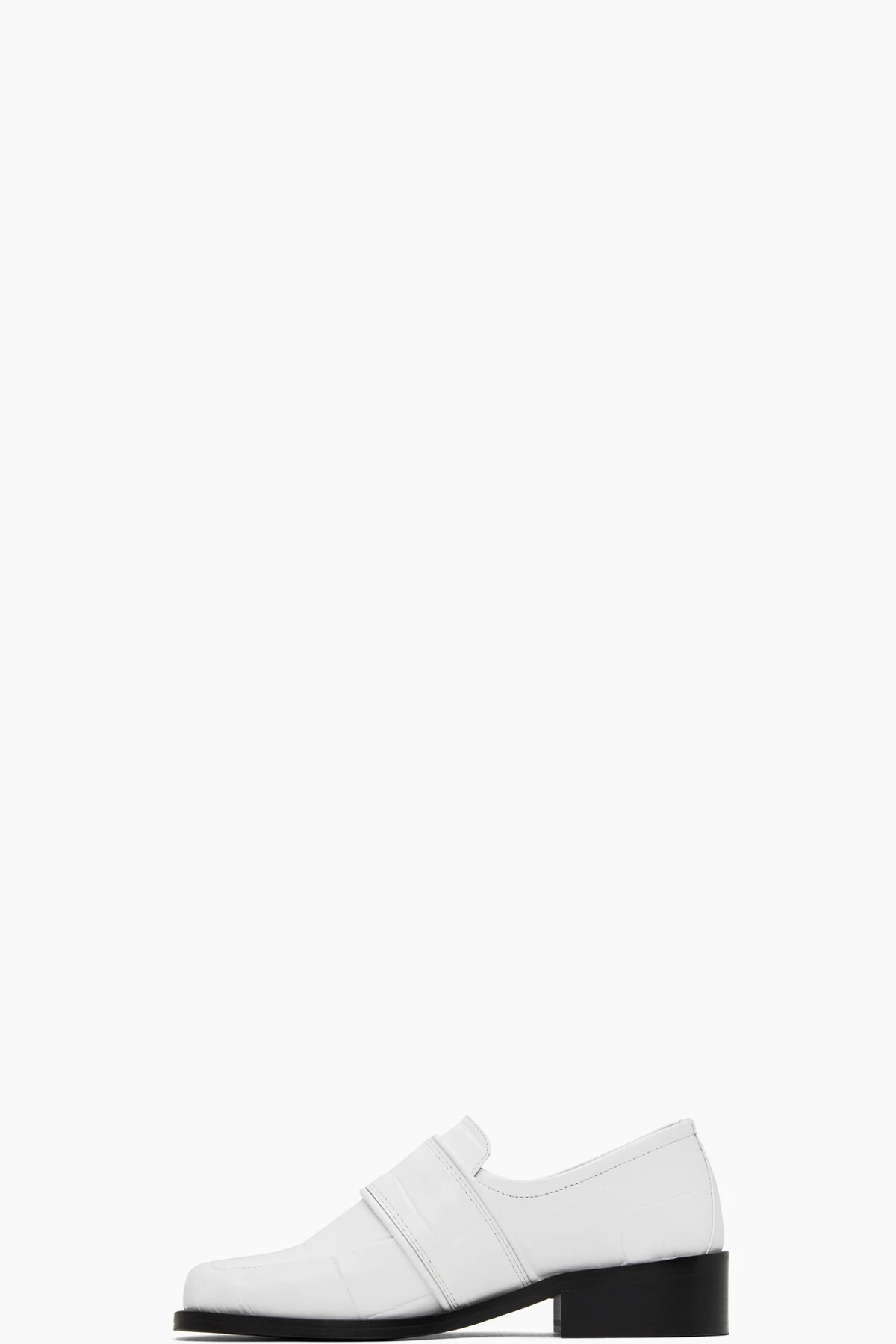 Croc-embossed leather loafers in white. Hand-stitched detailing throughout.