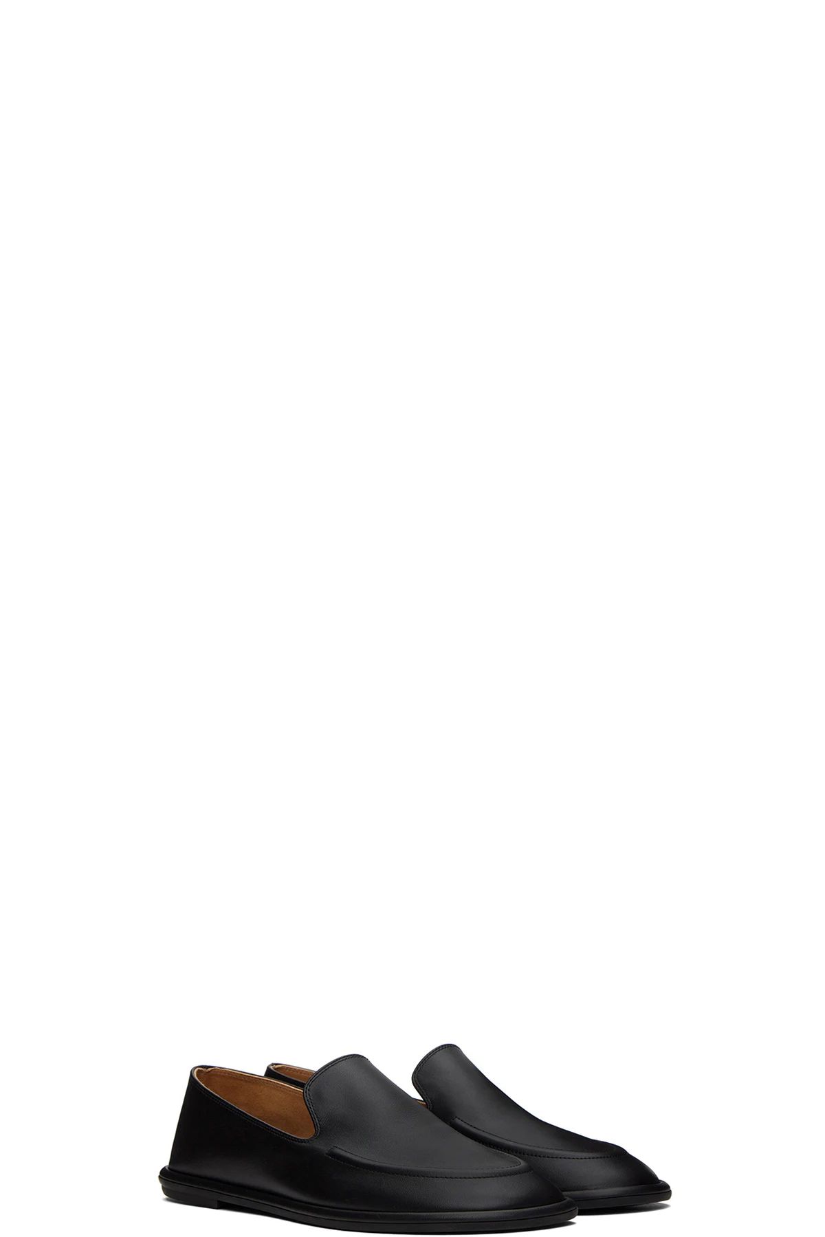 Vegetable-tanned calfskin loafers in black.