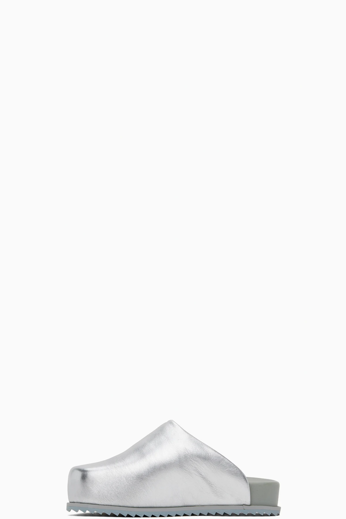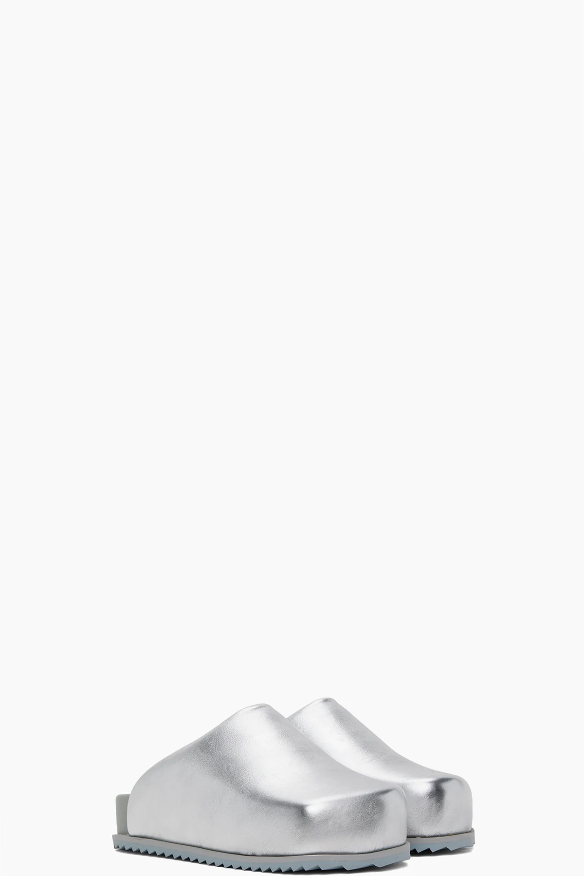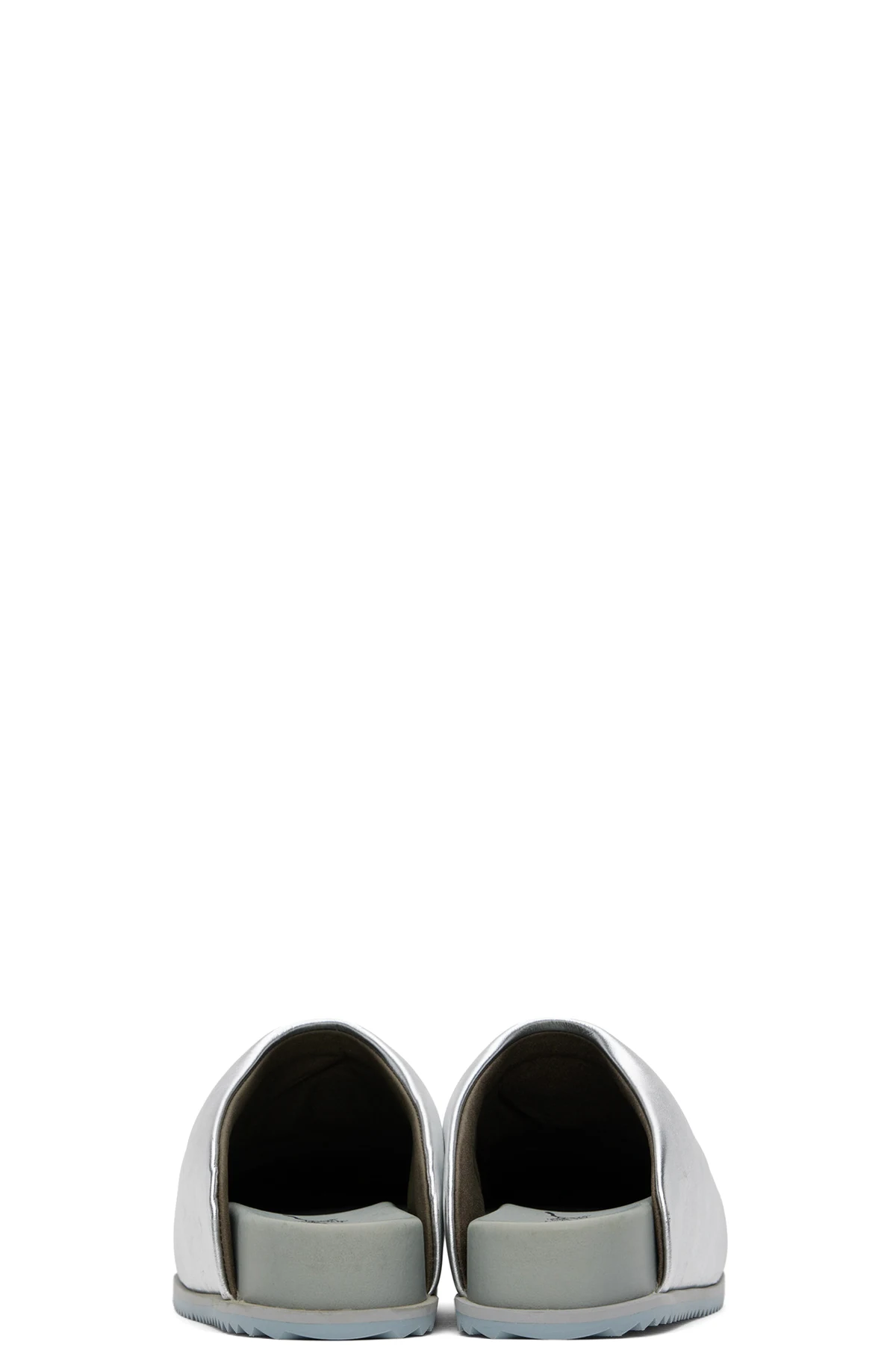Faux-leather slip-on loafers in metallic silver tone.