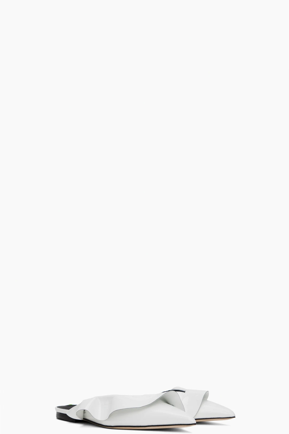Patent leather mules in white.