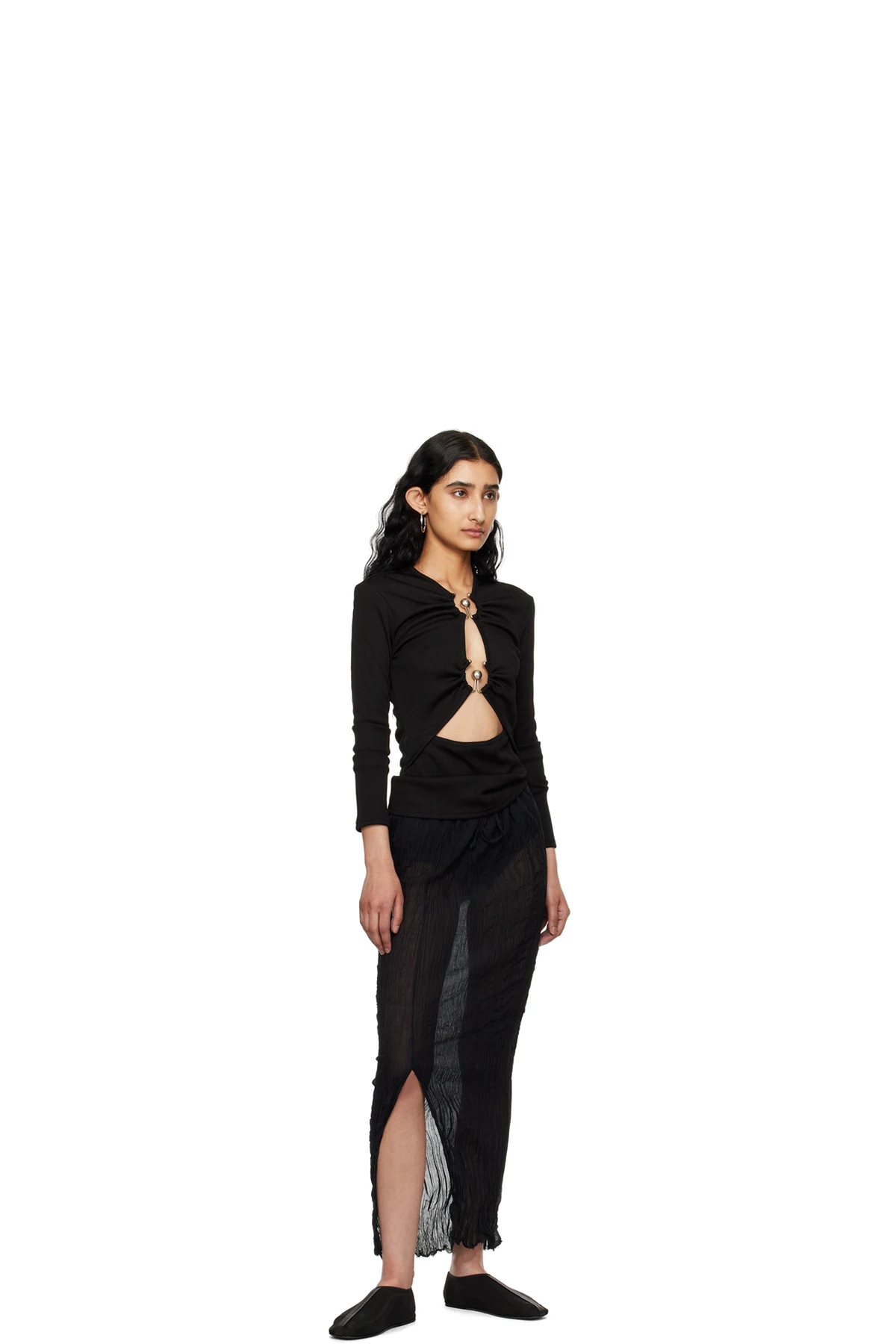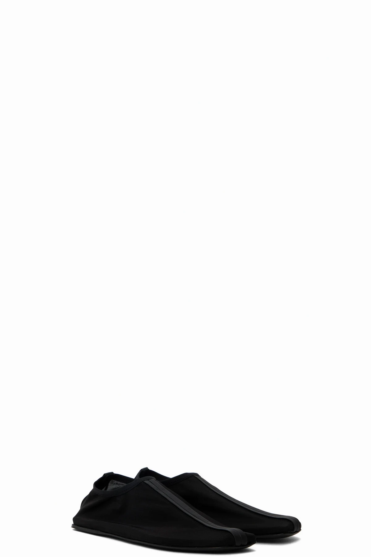 Semi-sheer nylon mesh slippers in black.