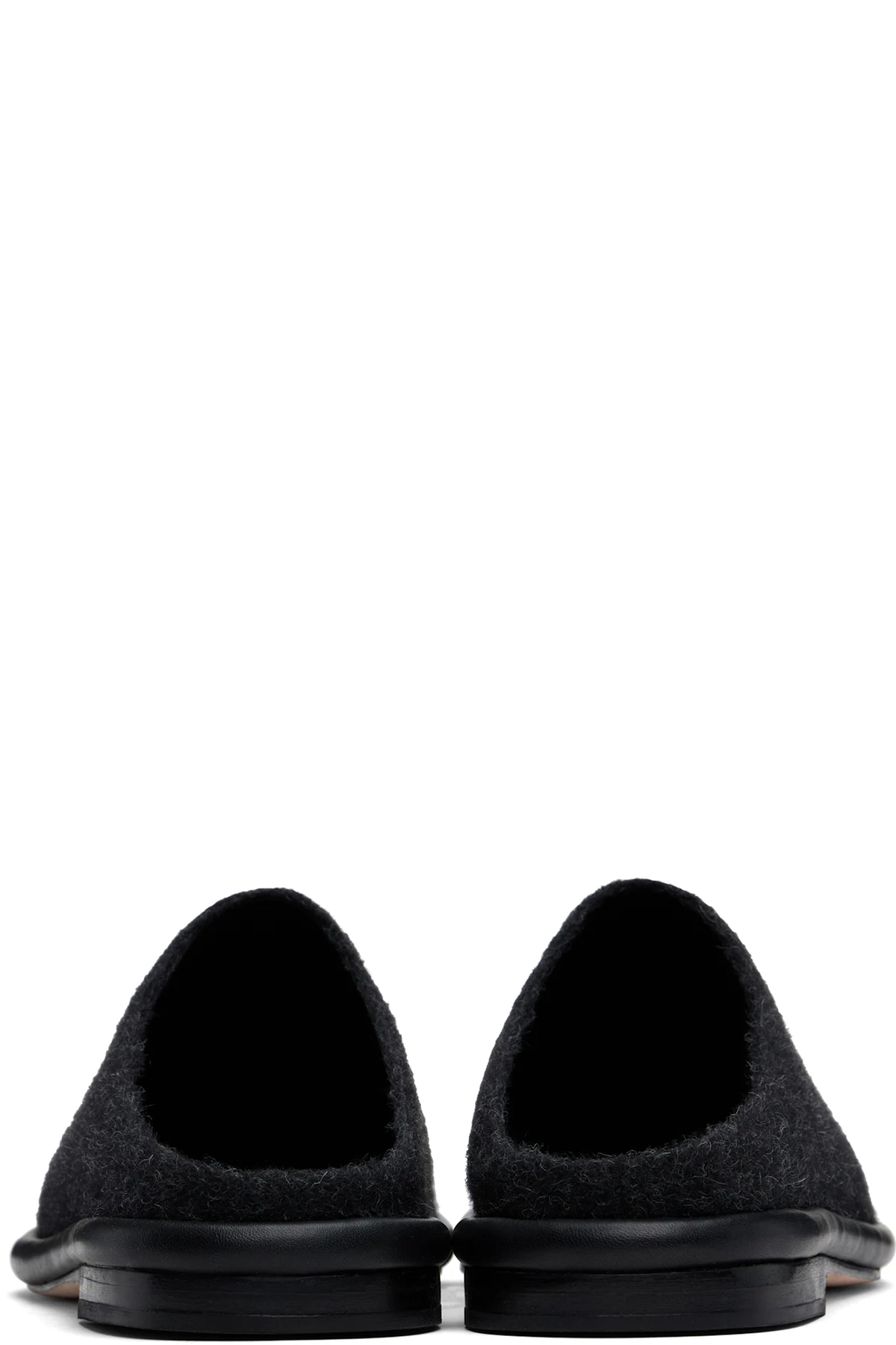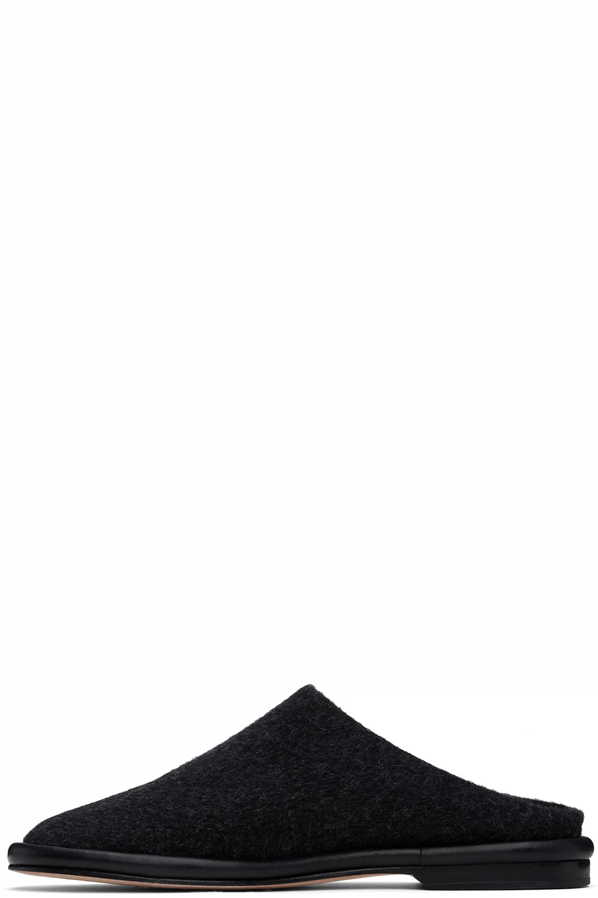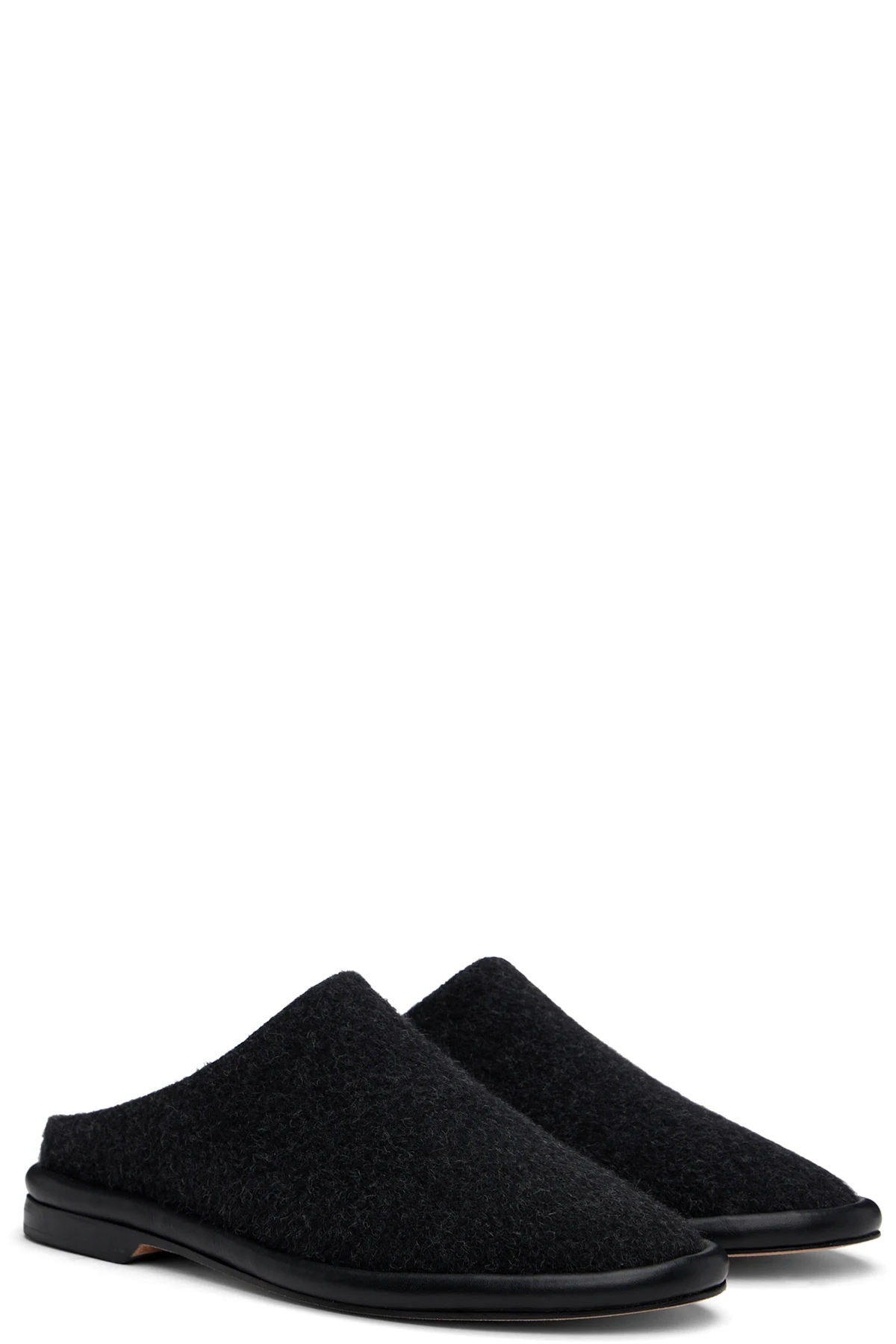 Brushed woven baby alpaca wool slip-on loafers in black.