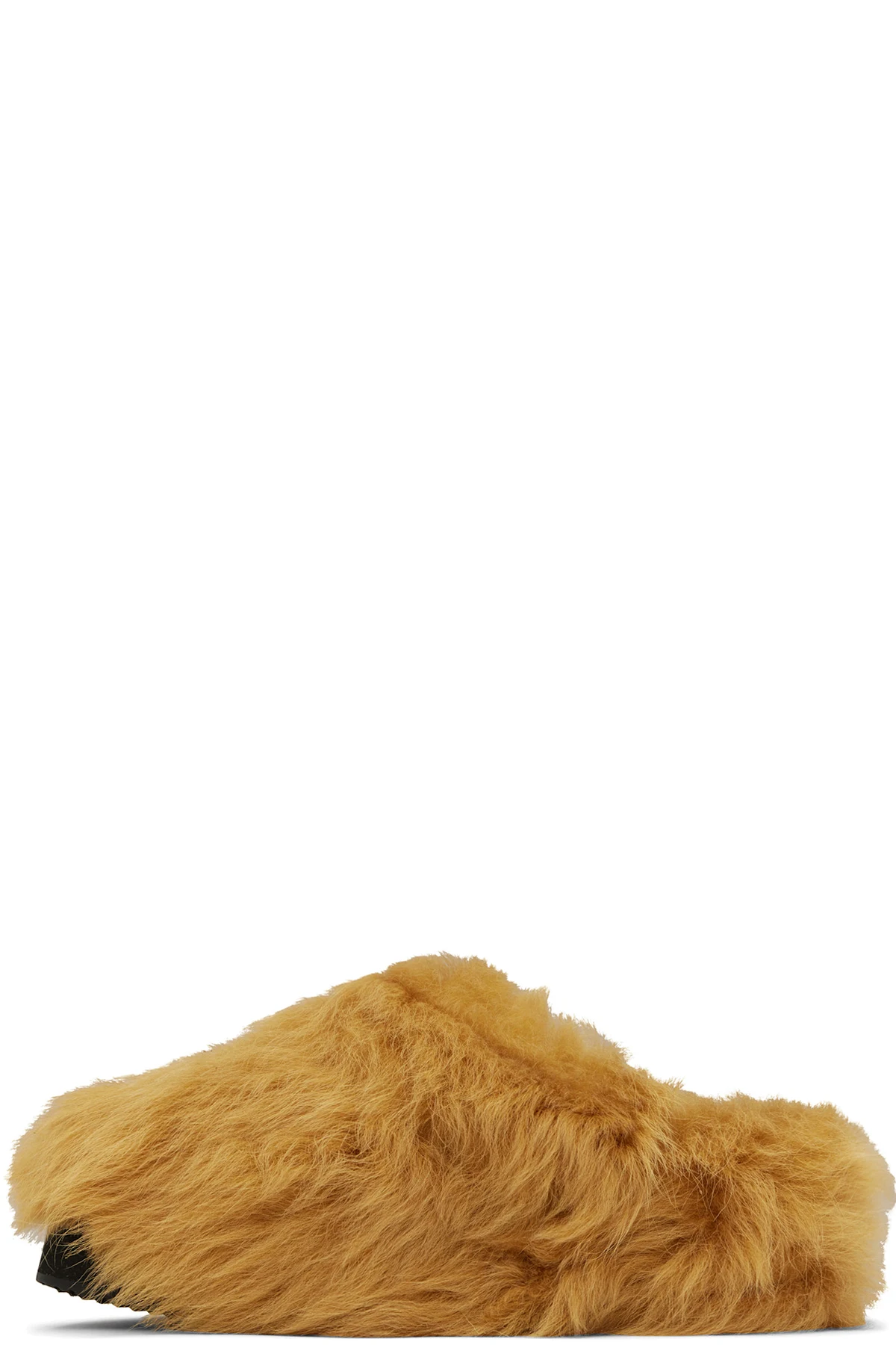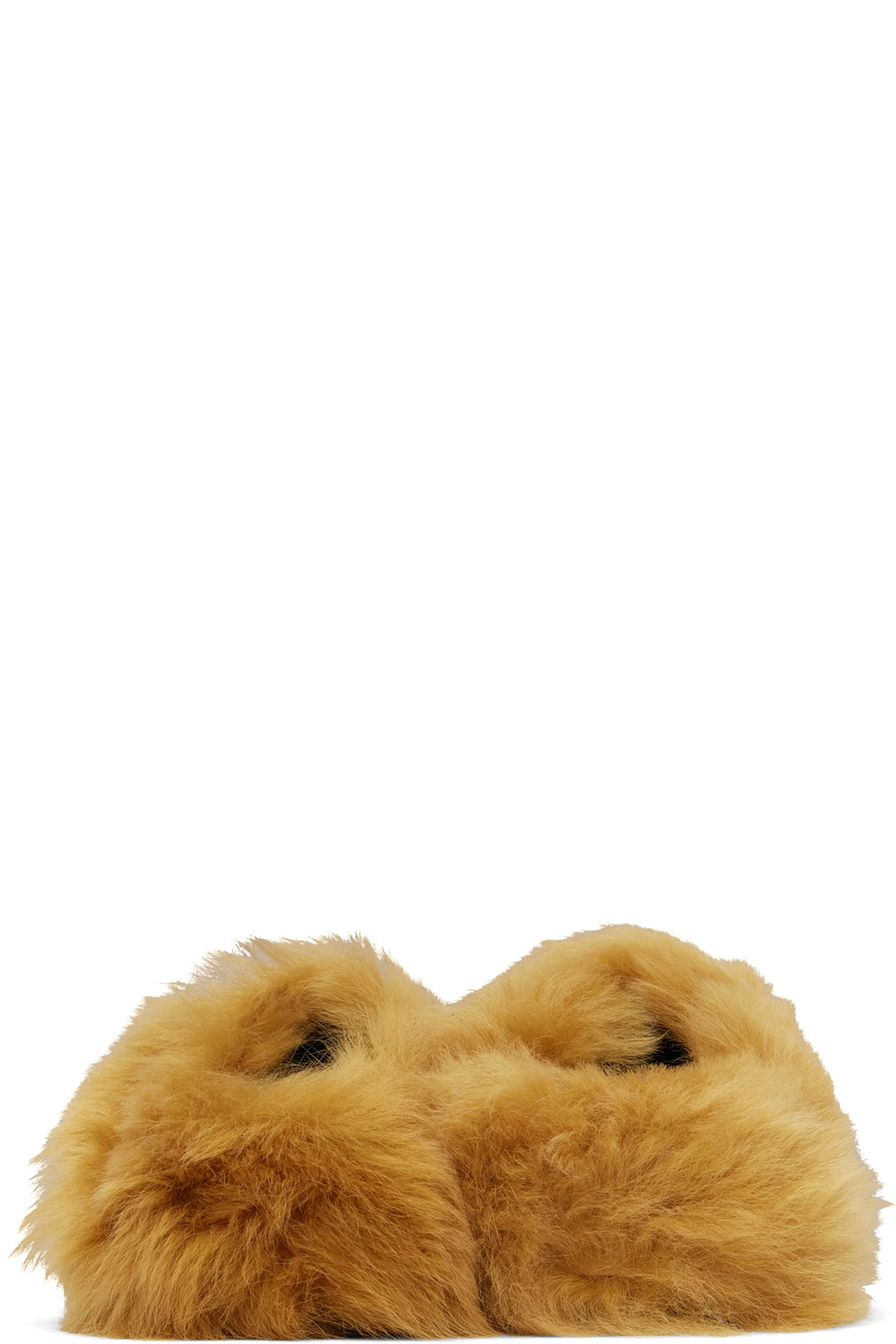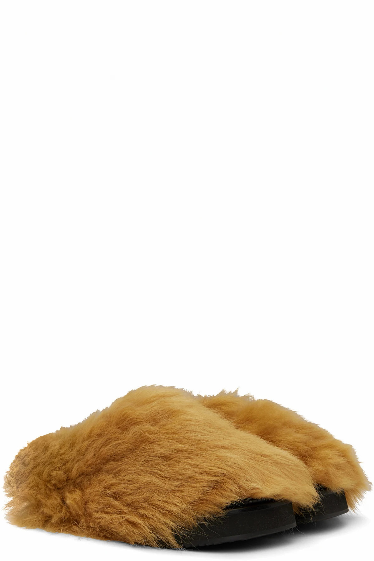 Lambskin shearling slippers in tan.