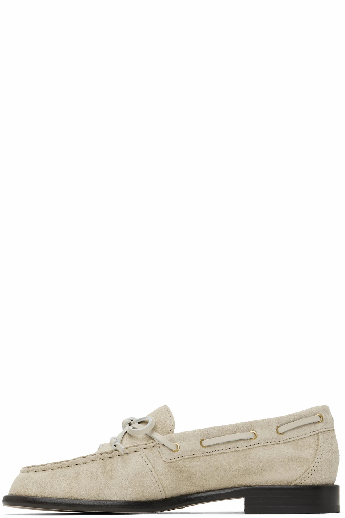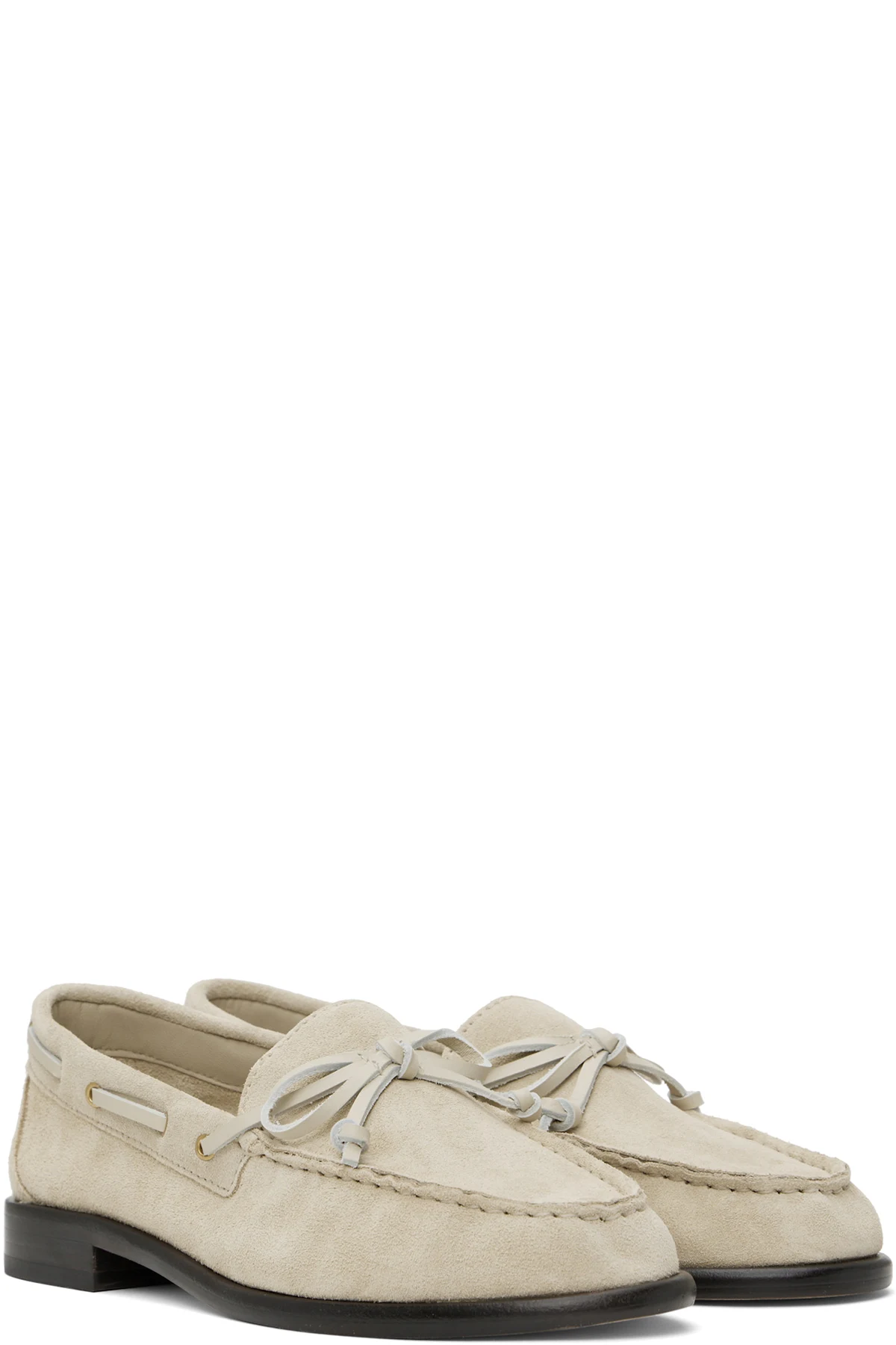 Suede boat shoes in beige.