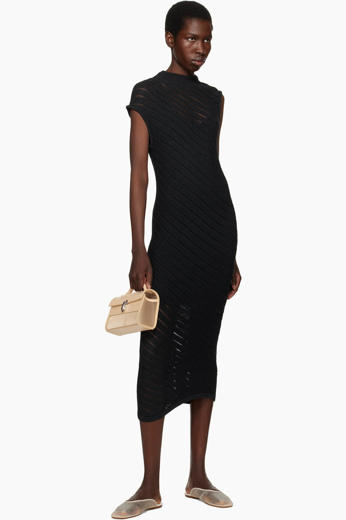 Mesh mules in off-white.