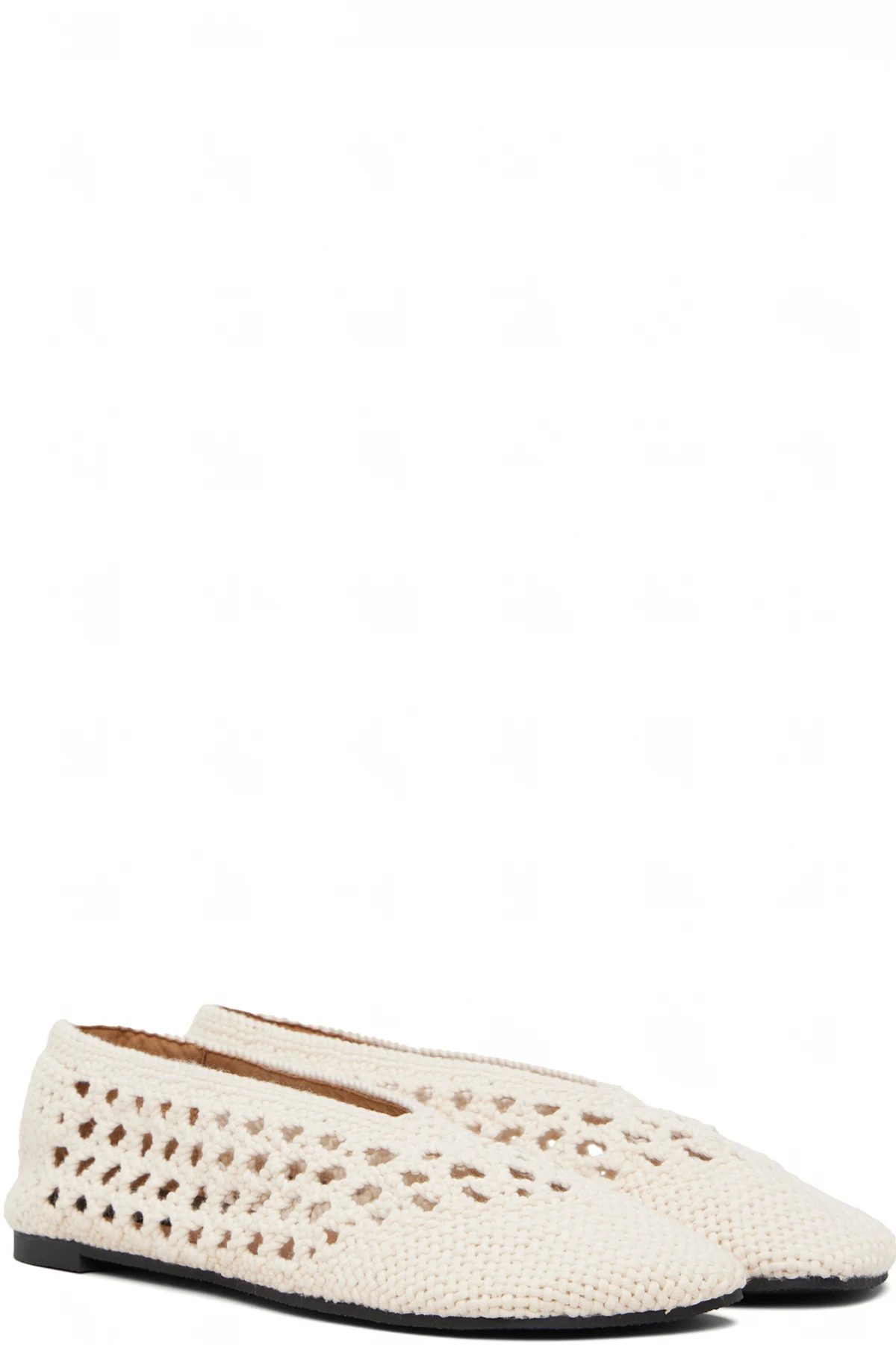 Crocheted cotton loafers in off-white.