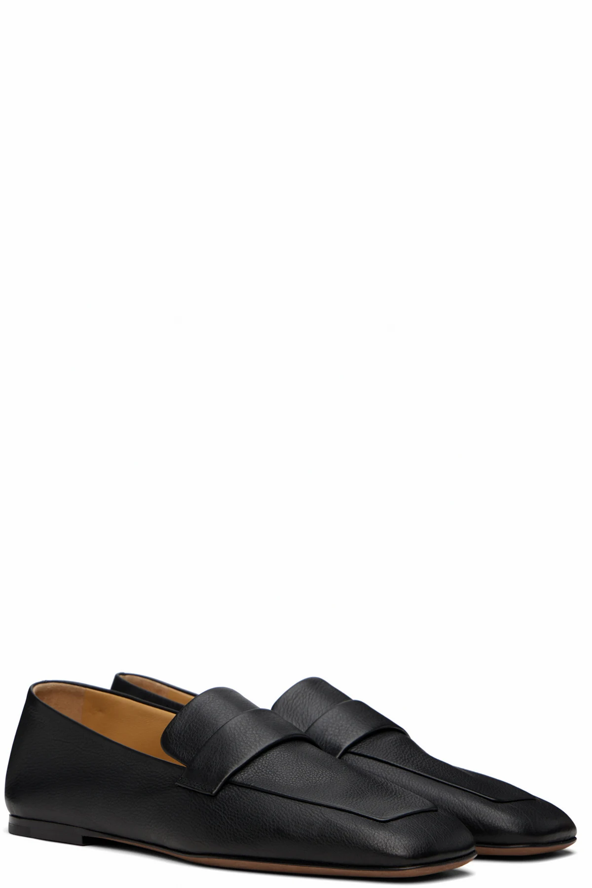Pebble-grained calfskin loafers in black.