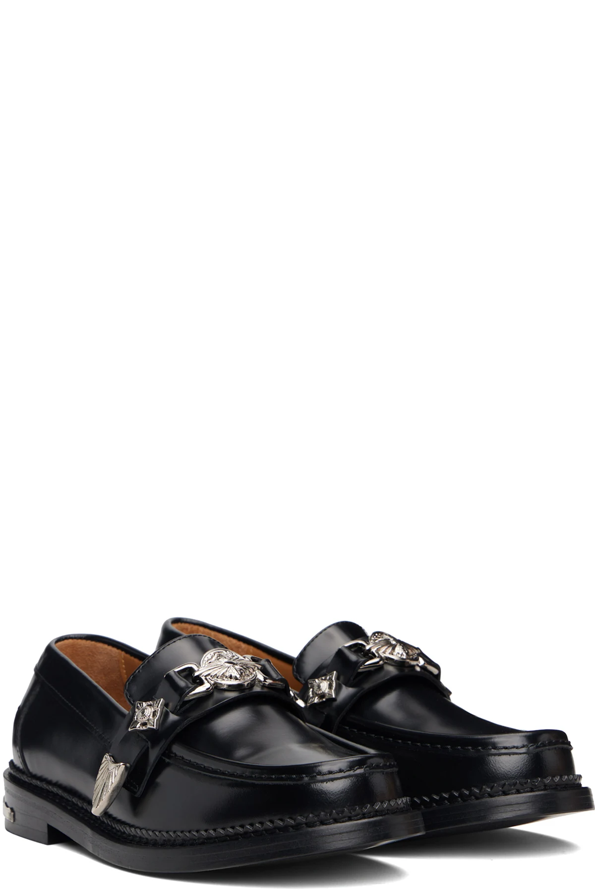 Black Polished Leather Loafers