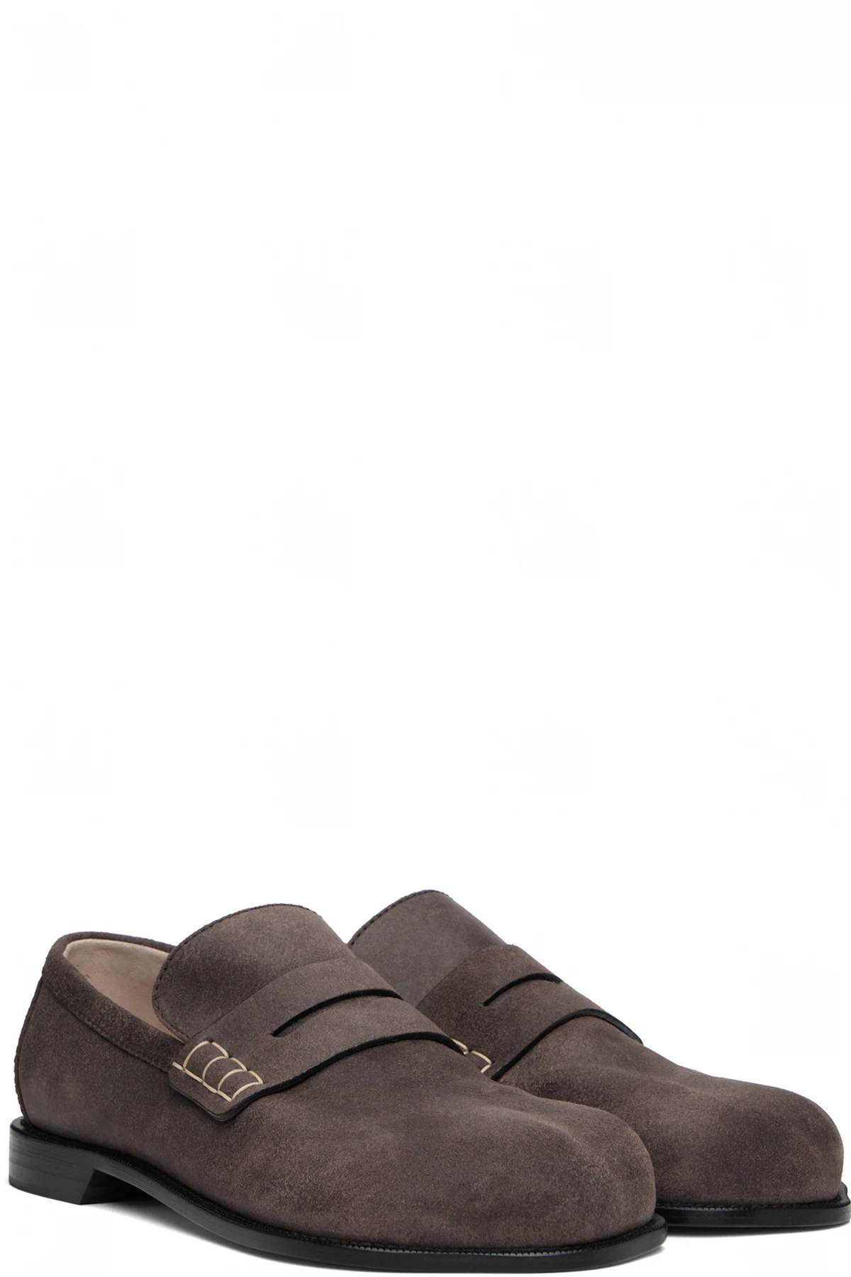 Blistered suede loafers.