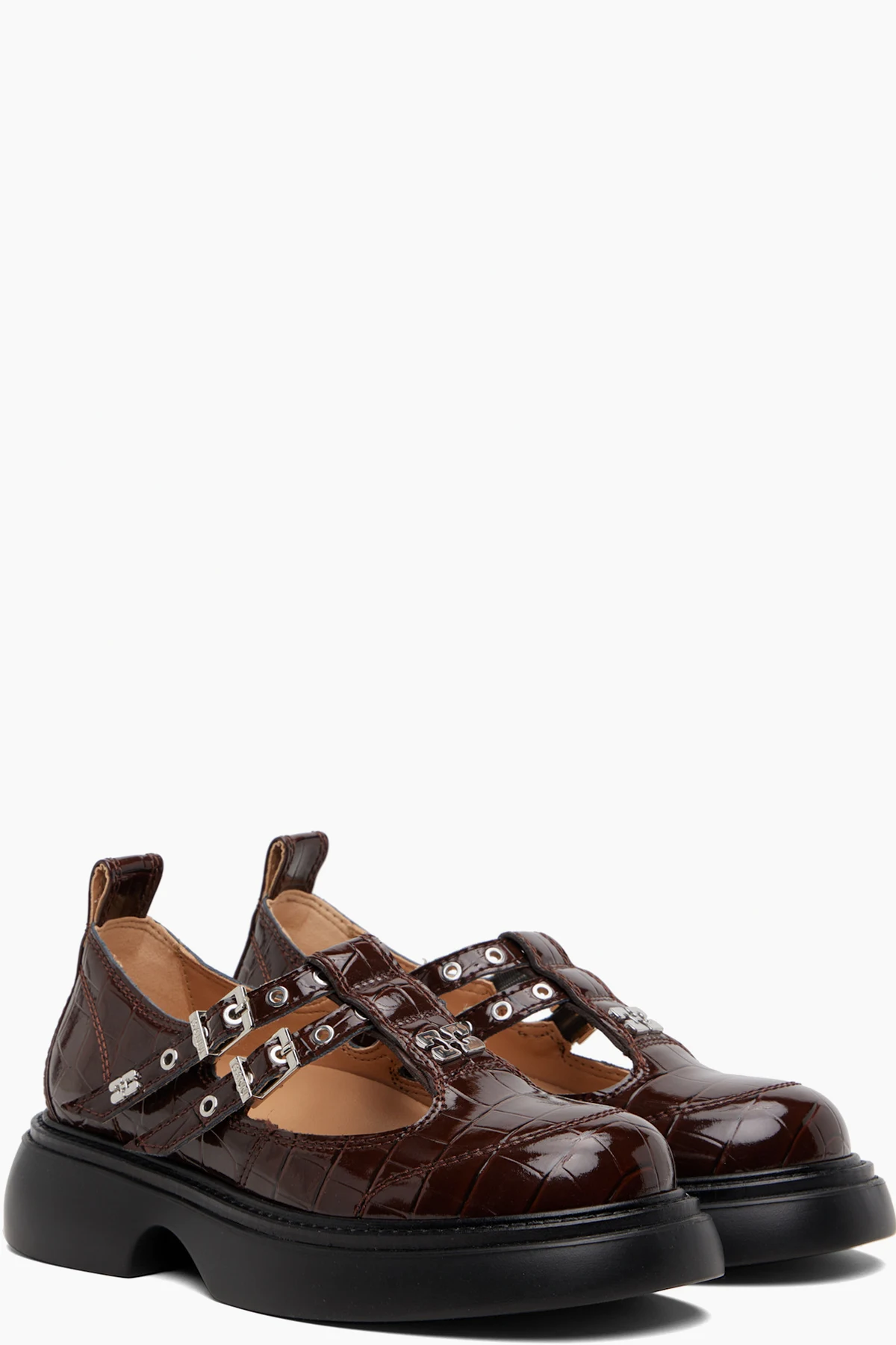 Croc-embossed recycled leather-blend Mary Jane-style loafers.