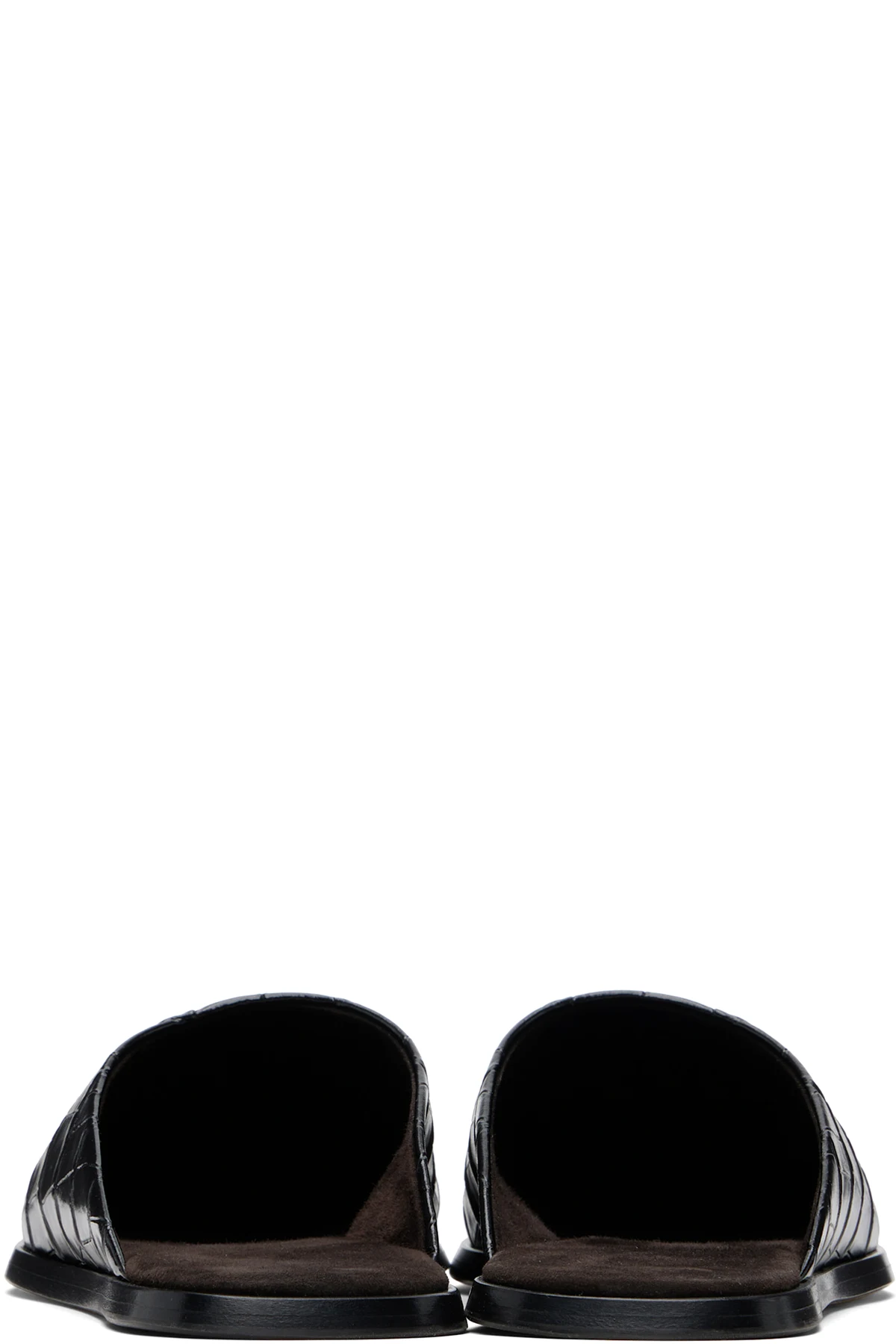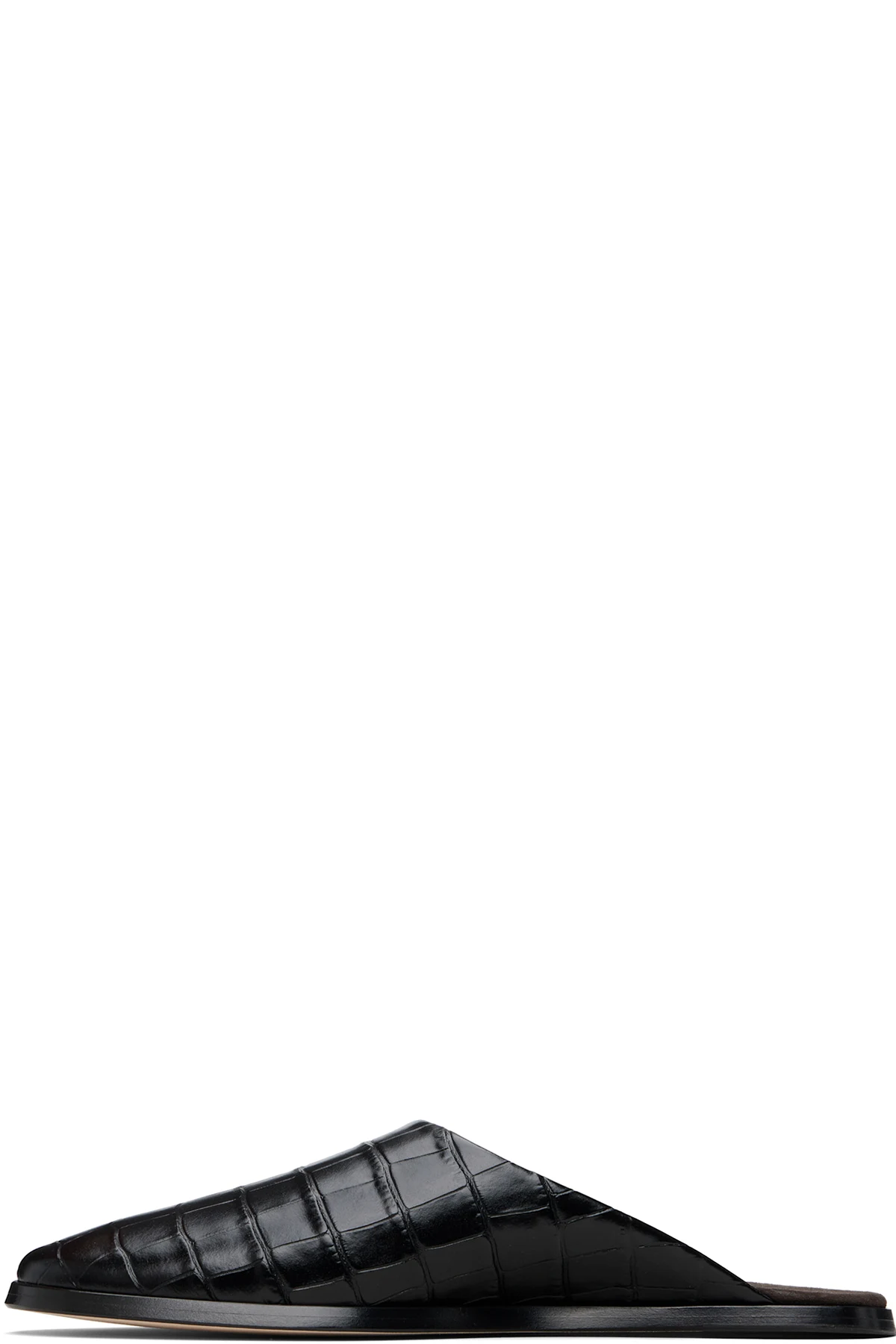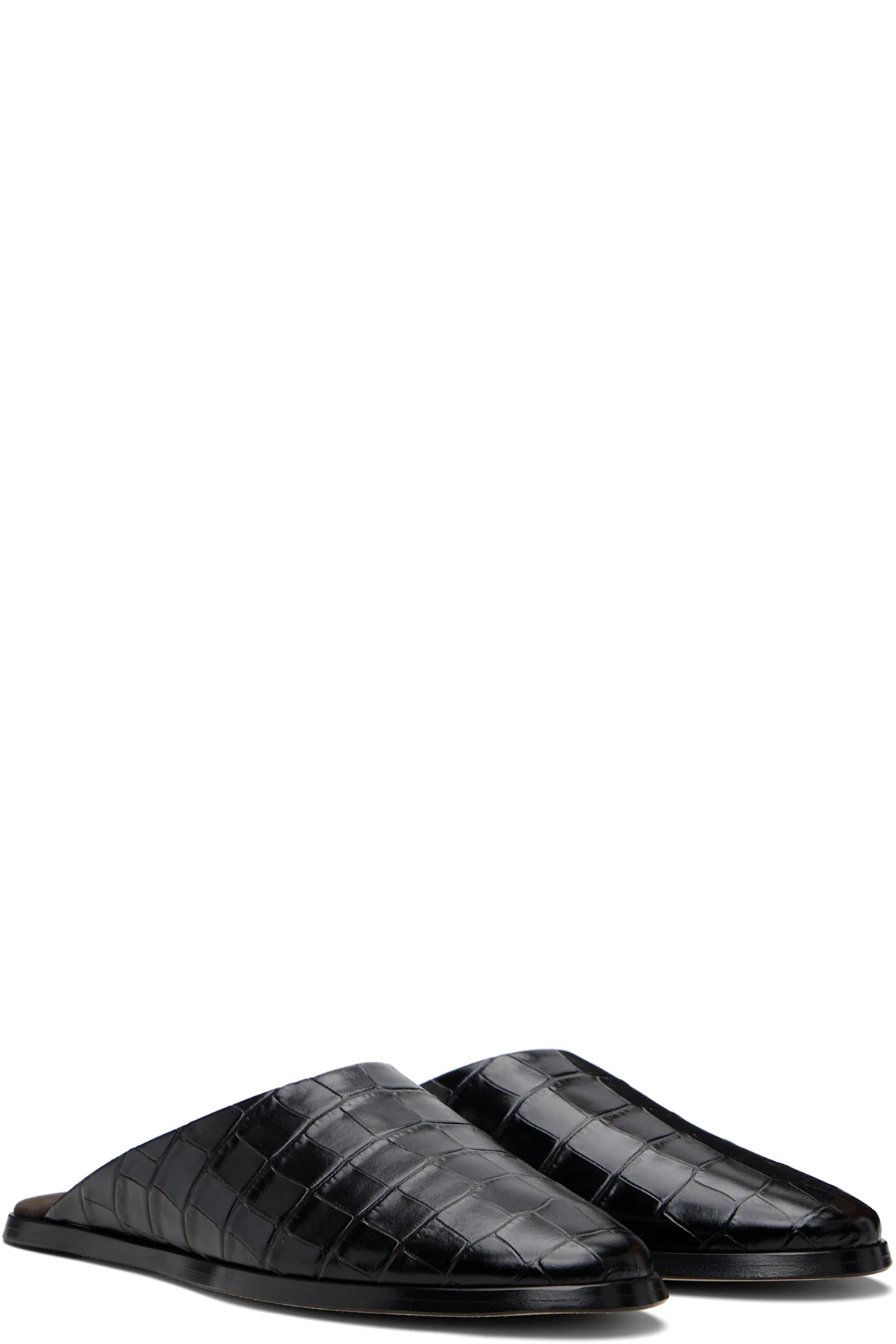 Croc-embossed leather slides.