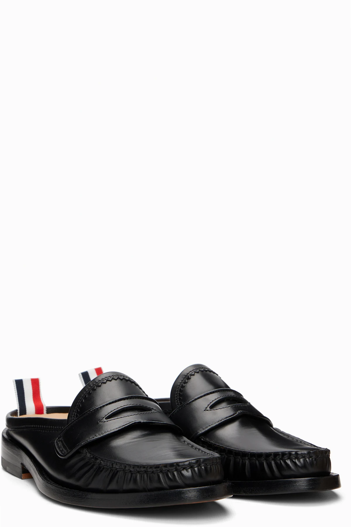 Black Calf Flexible Leather Mule Penny Loafers