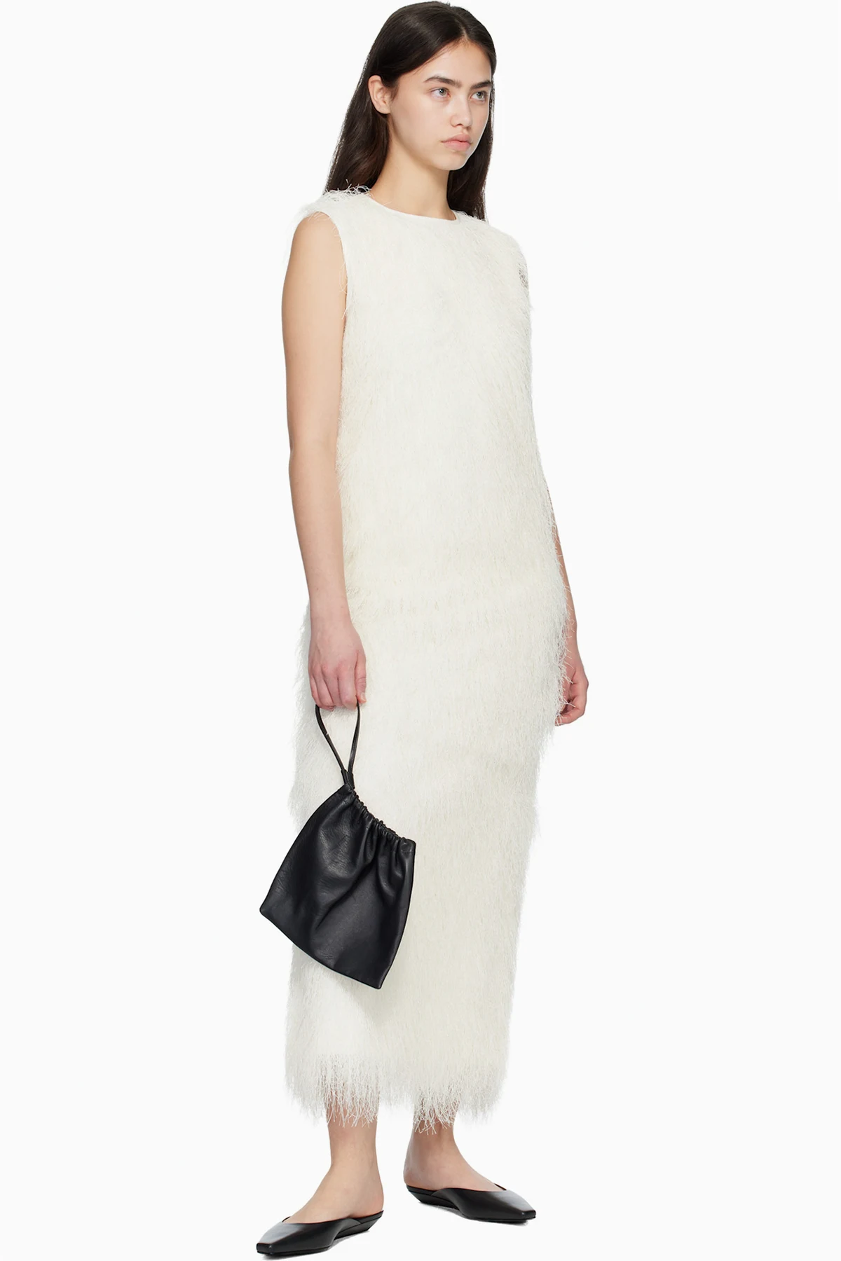 Black Diane Calf Leather Mule Flats