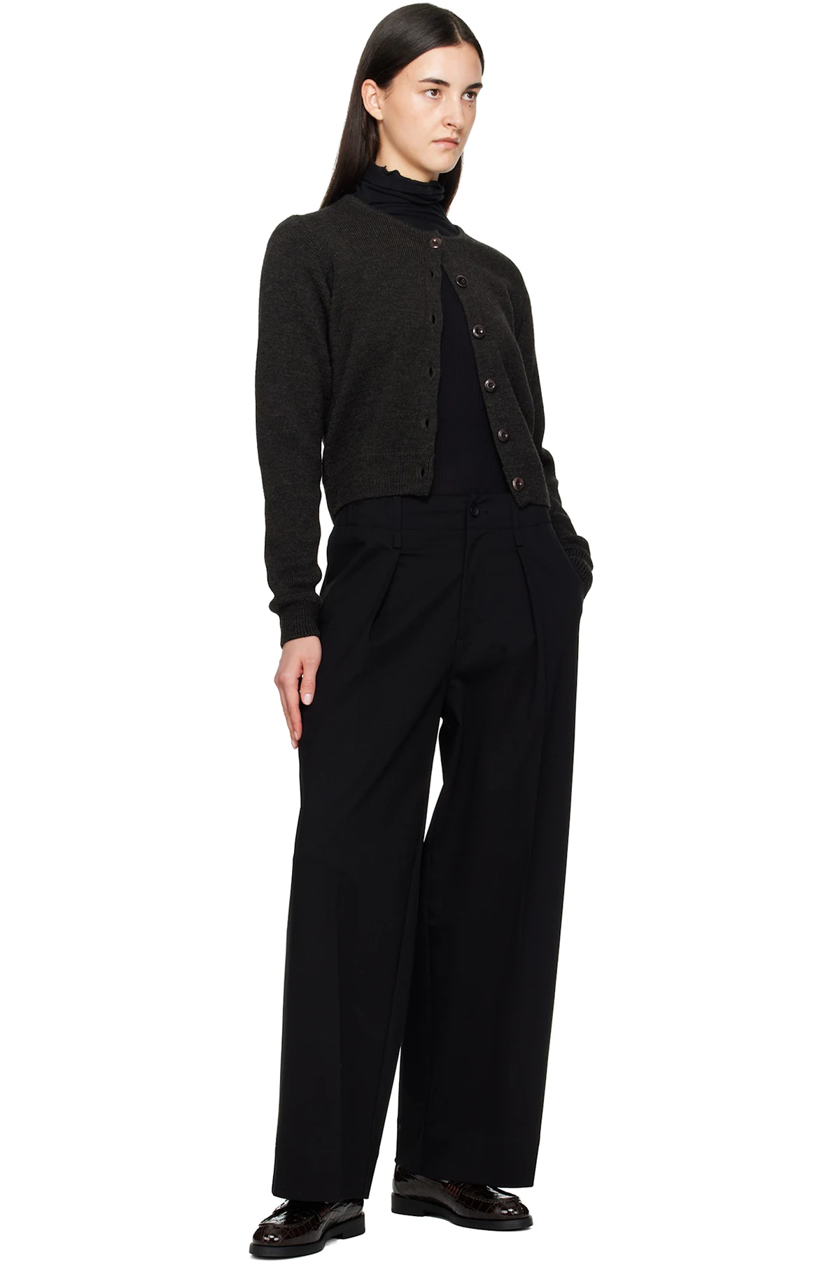 Croc-embossed patent leather loafers.