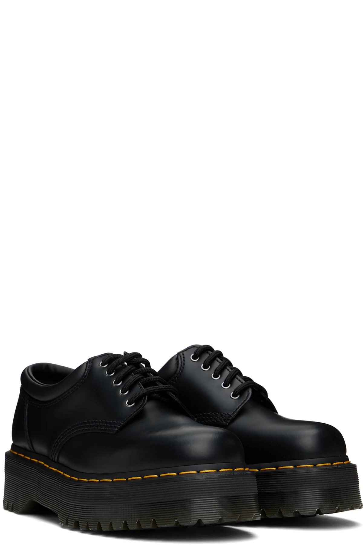 Polished buffed leather derbys in black.