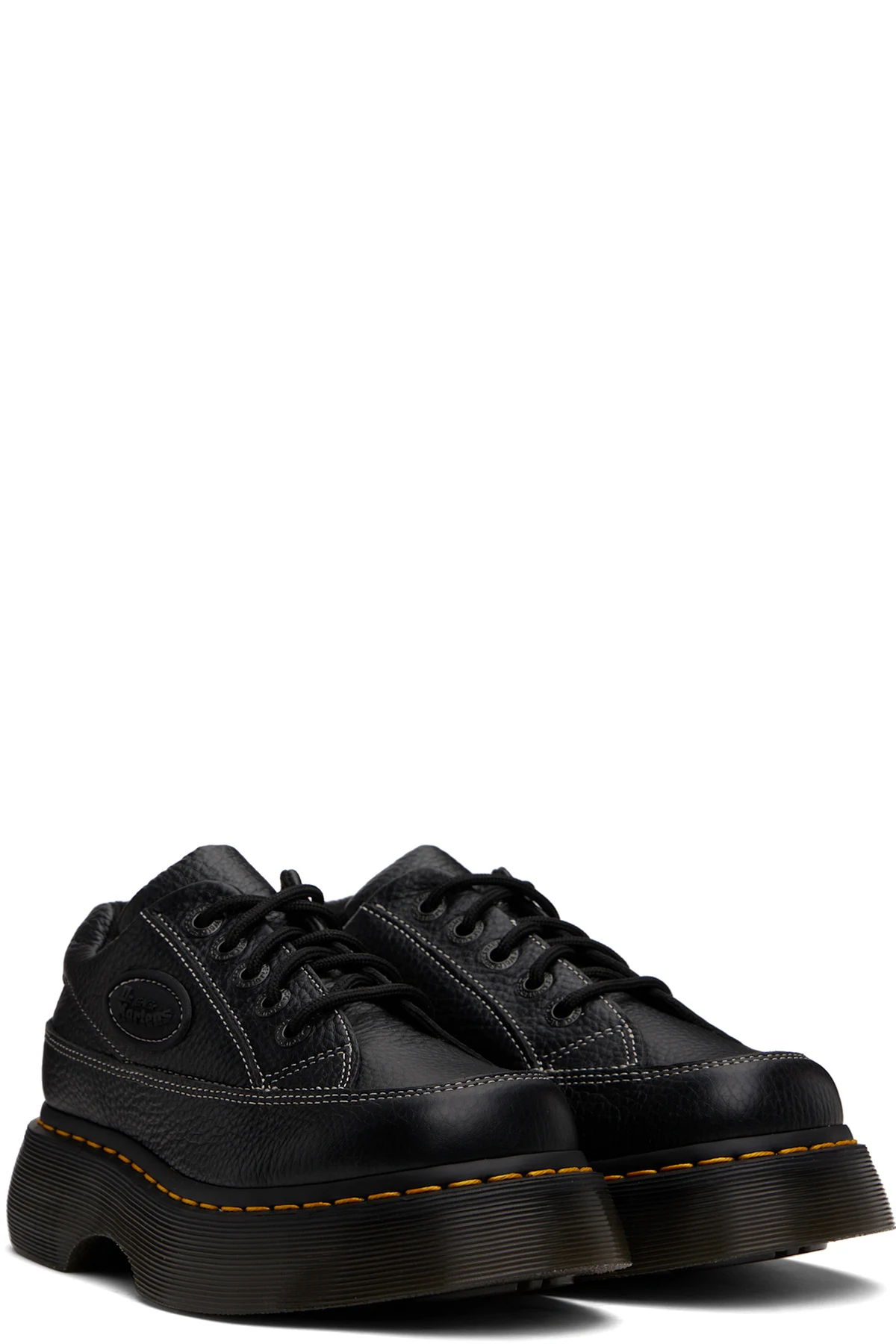 Pebble-grained nappa leather derbys in black.