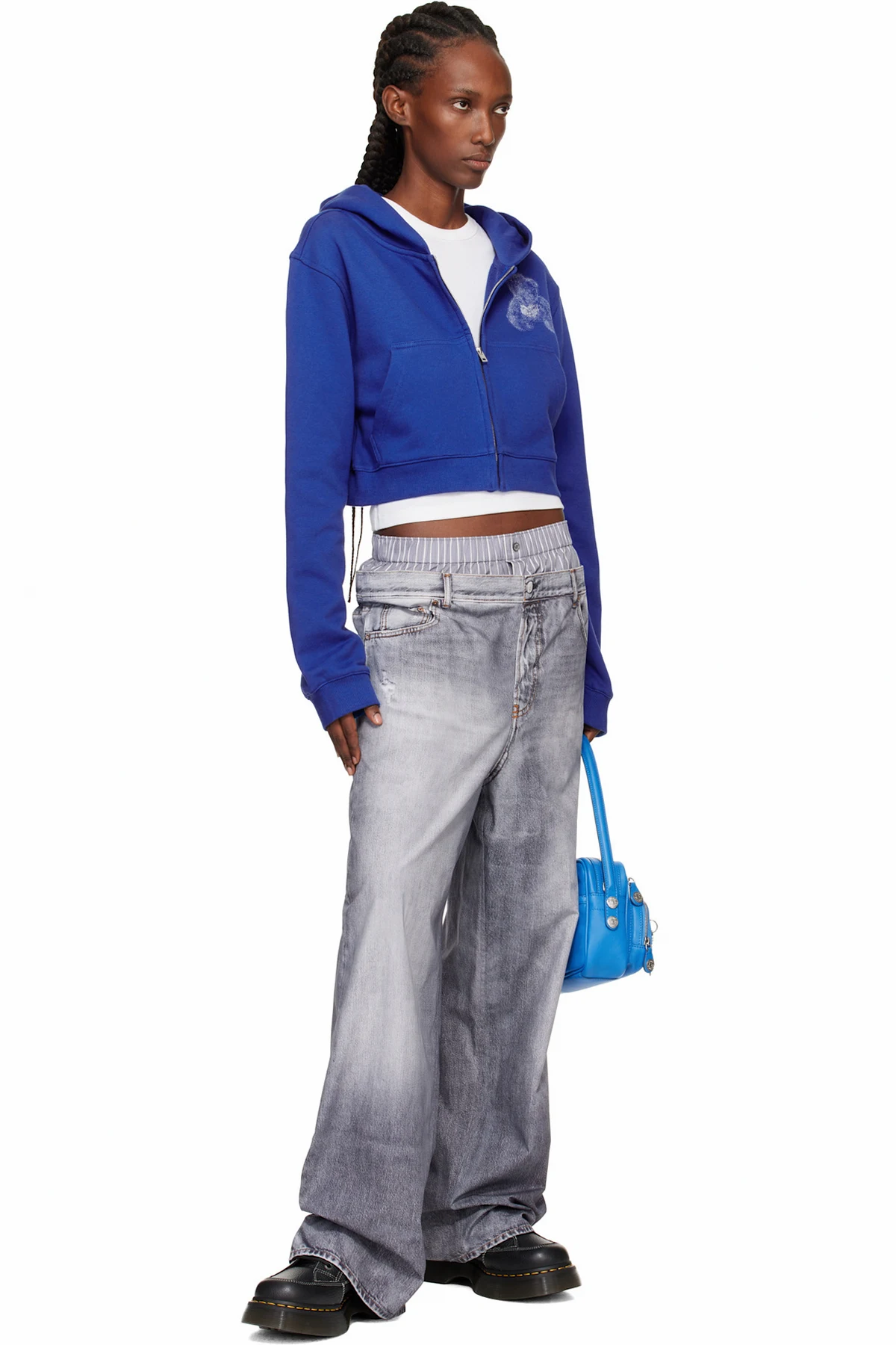 · Contrast stitching in white