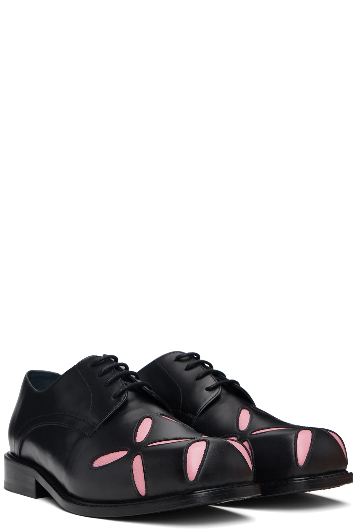 SSENSE Exclusive Black & Pink Slashed Square Toe Derbys