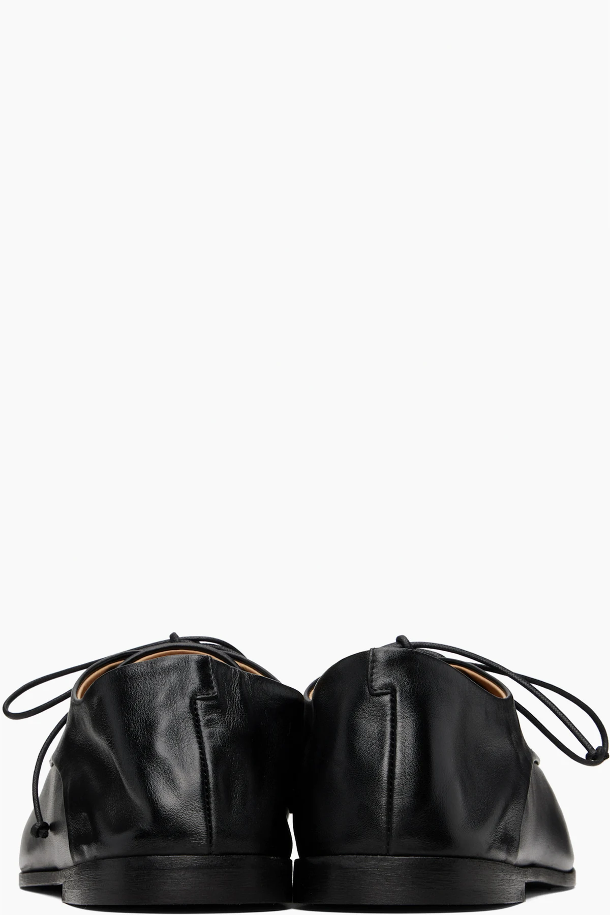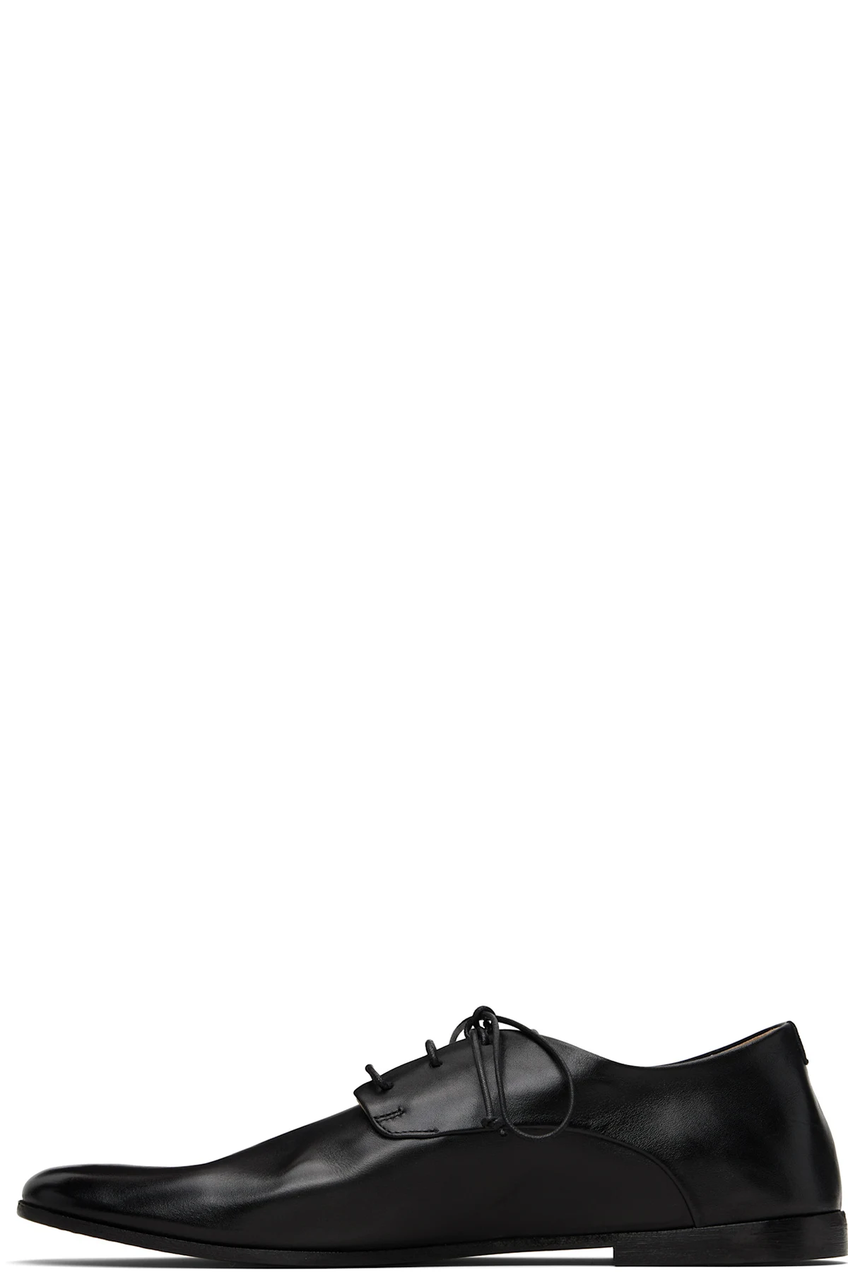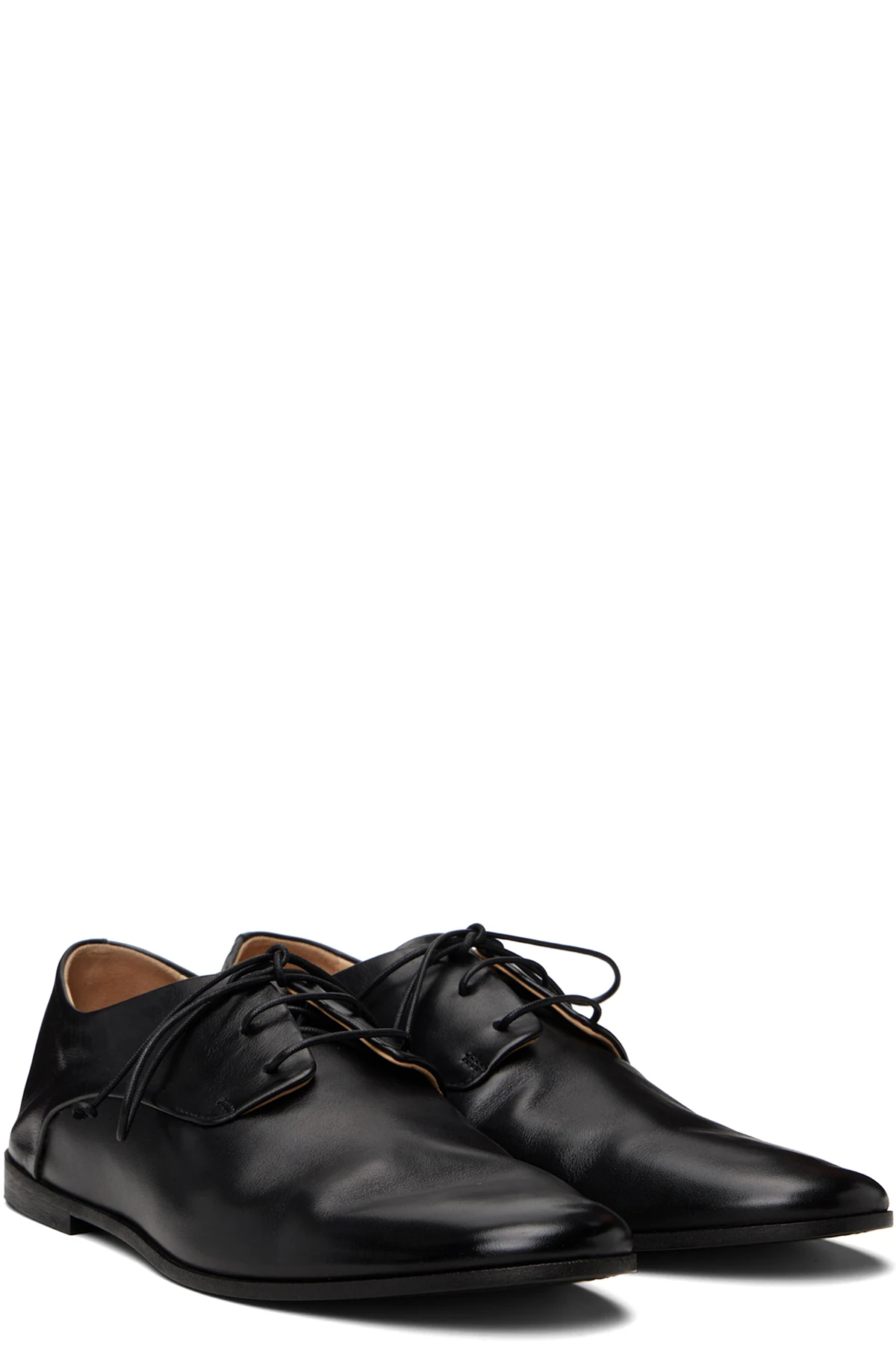 Crinkled polished calfskin derbys.