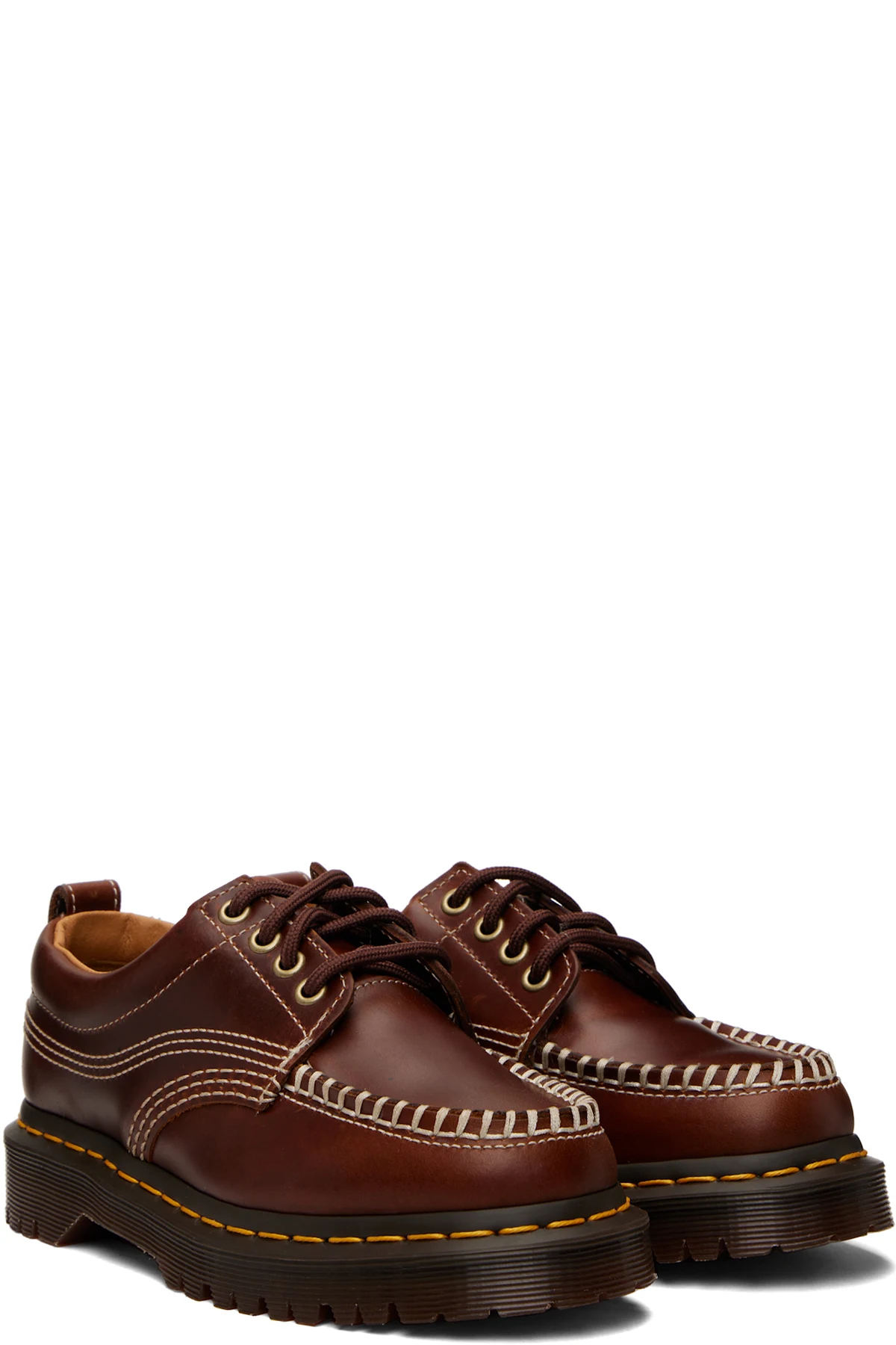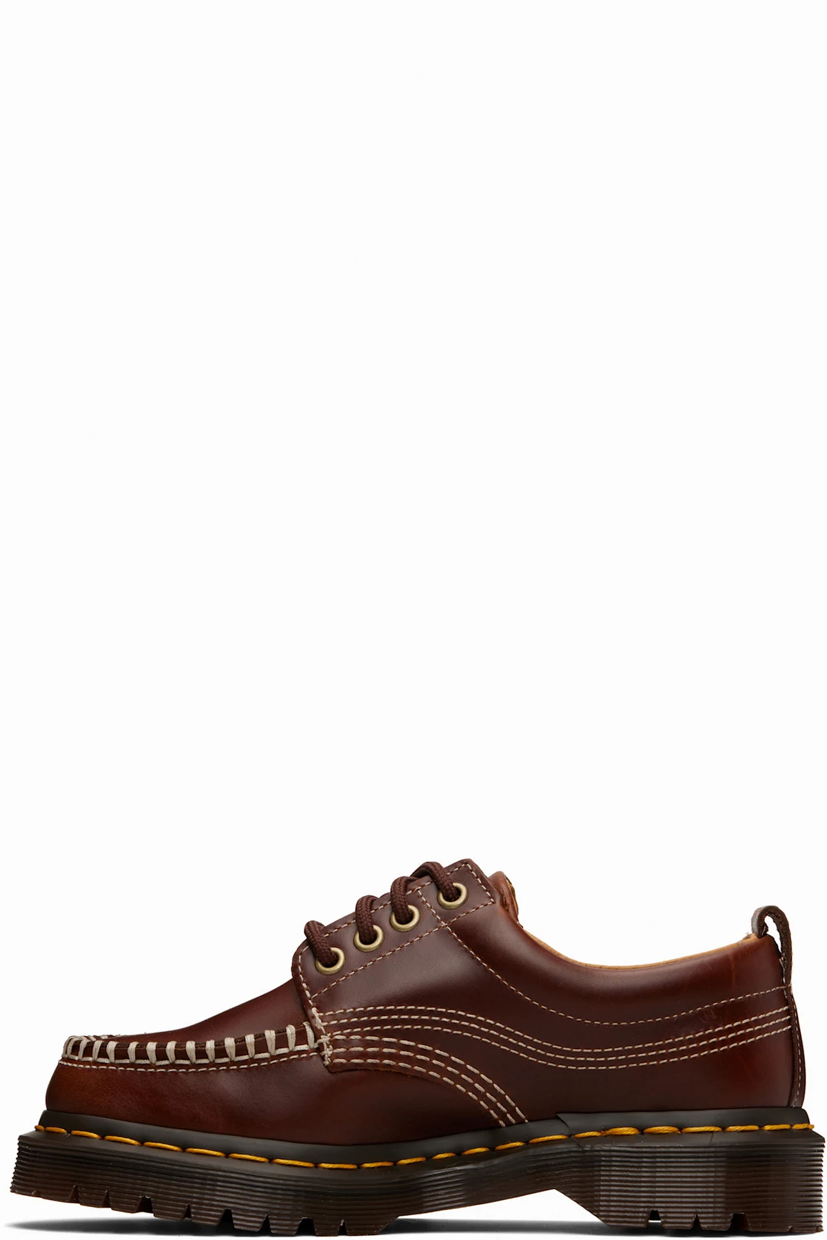 · Yellow topstitching at heat-sealed Goodyear welt