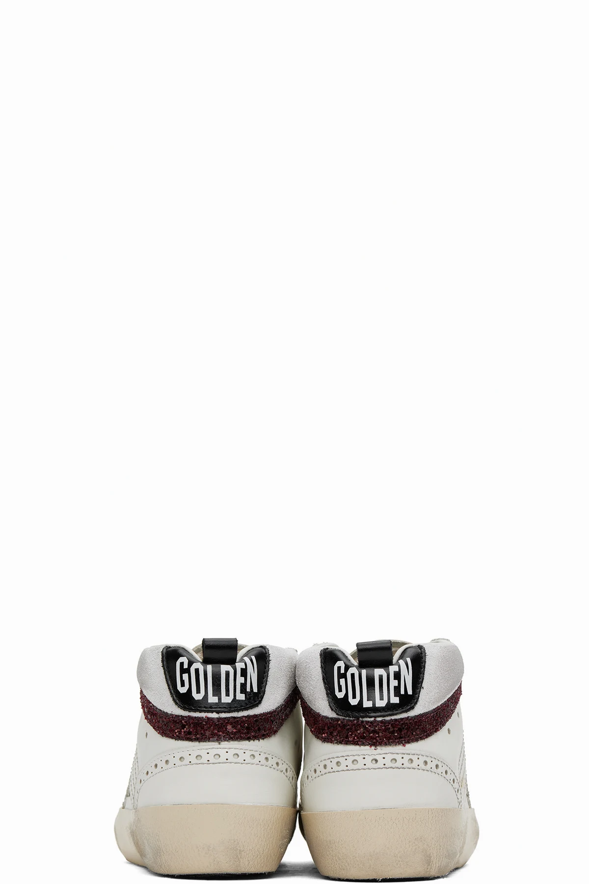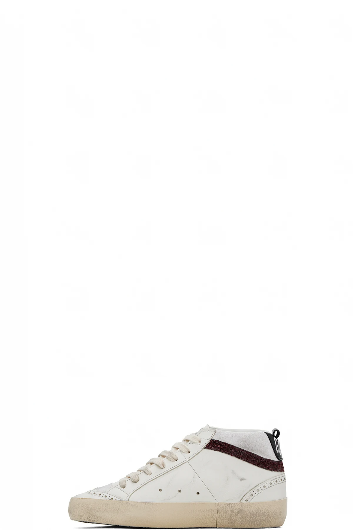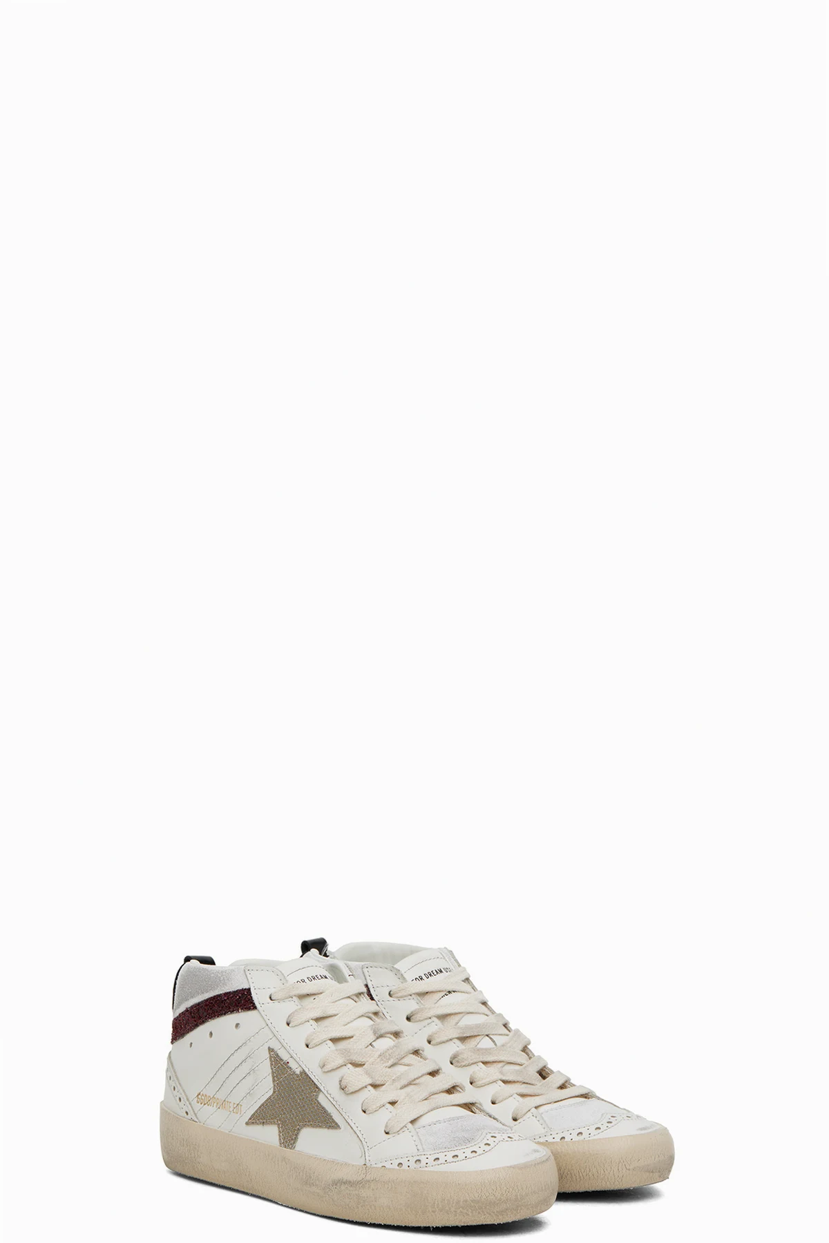 Handcrafted mid-top buffed leather and suede sneakers in white.