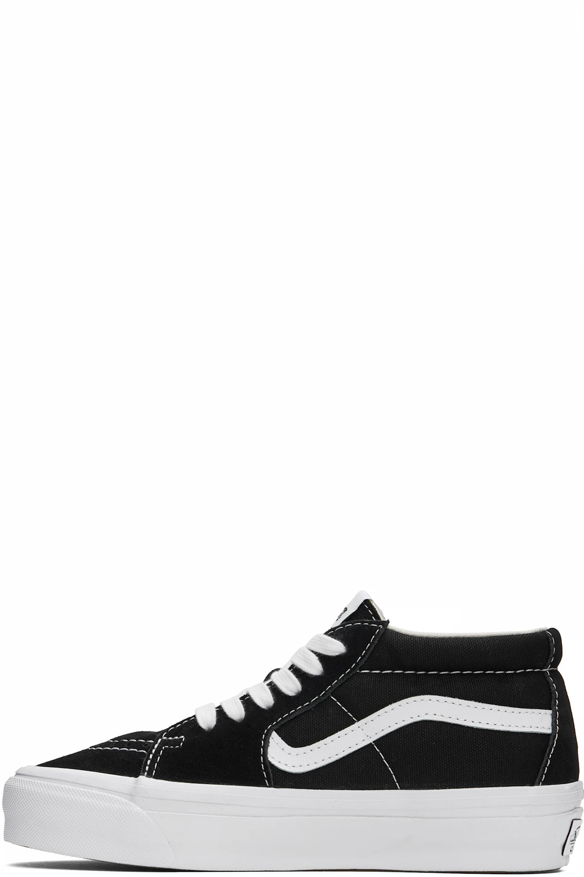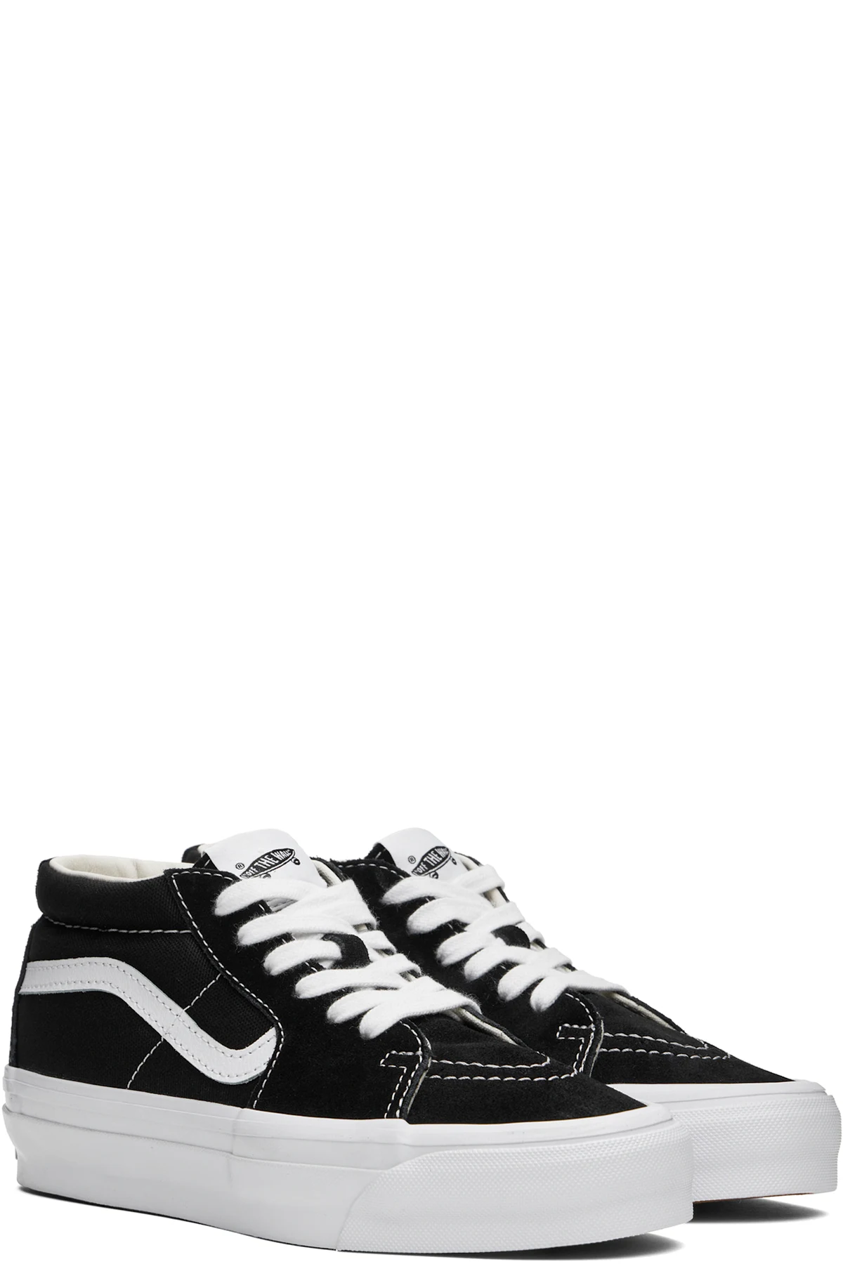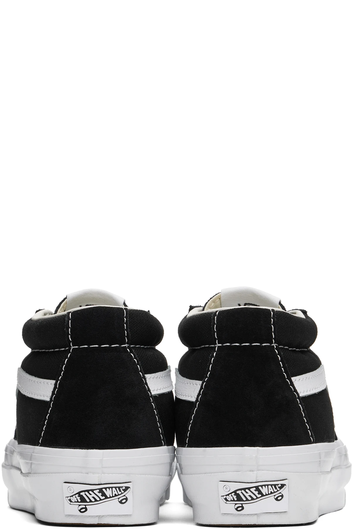 Mid-top 8 oz canvas and suede sneakers in black and white.
