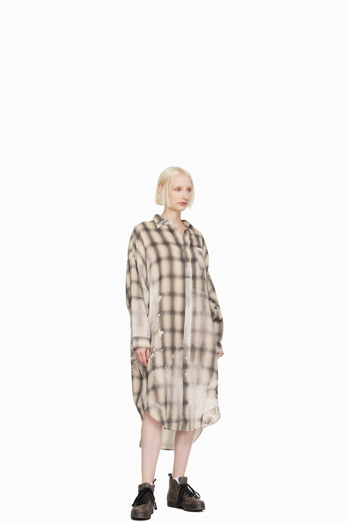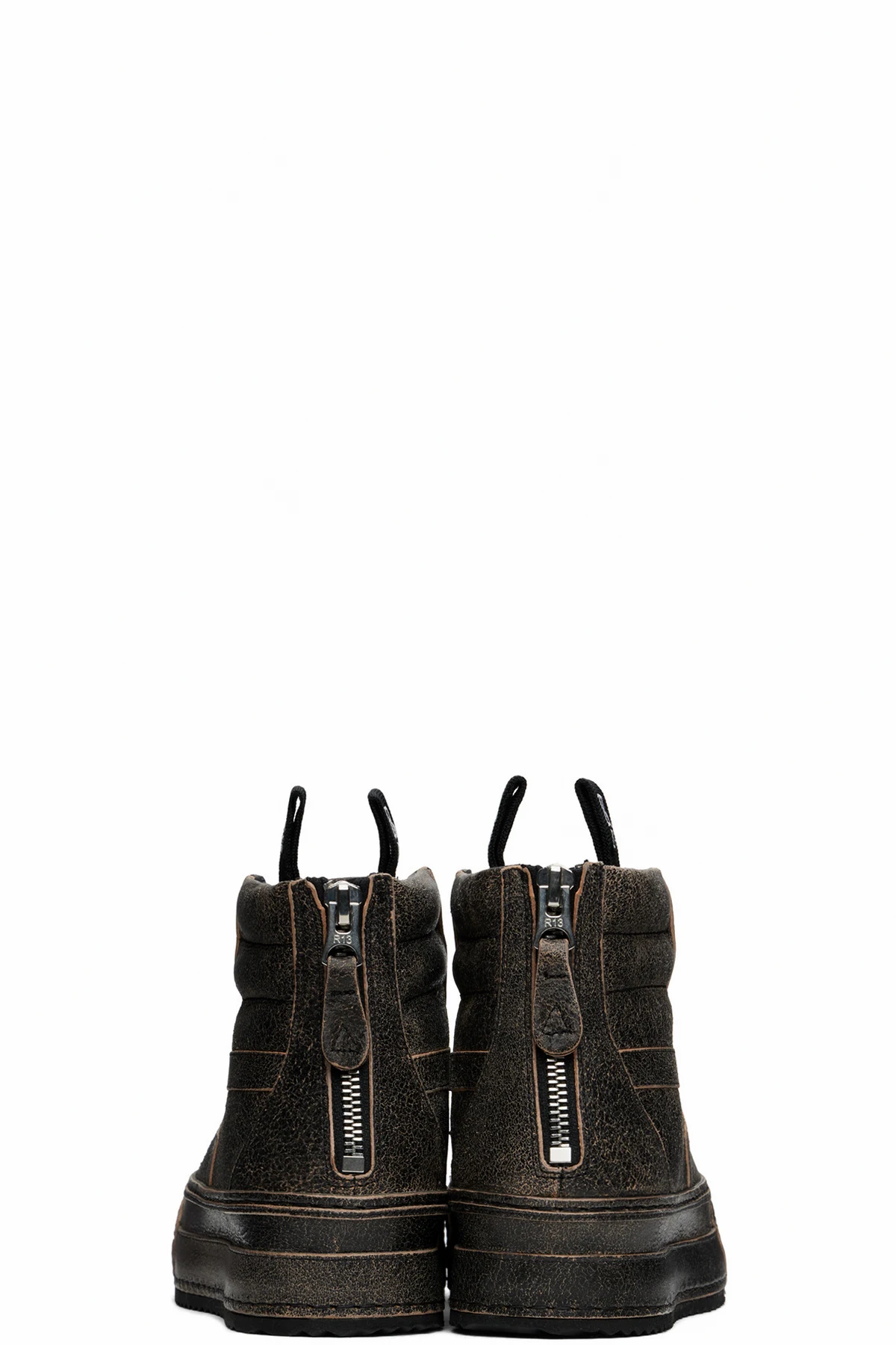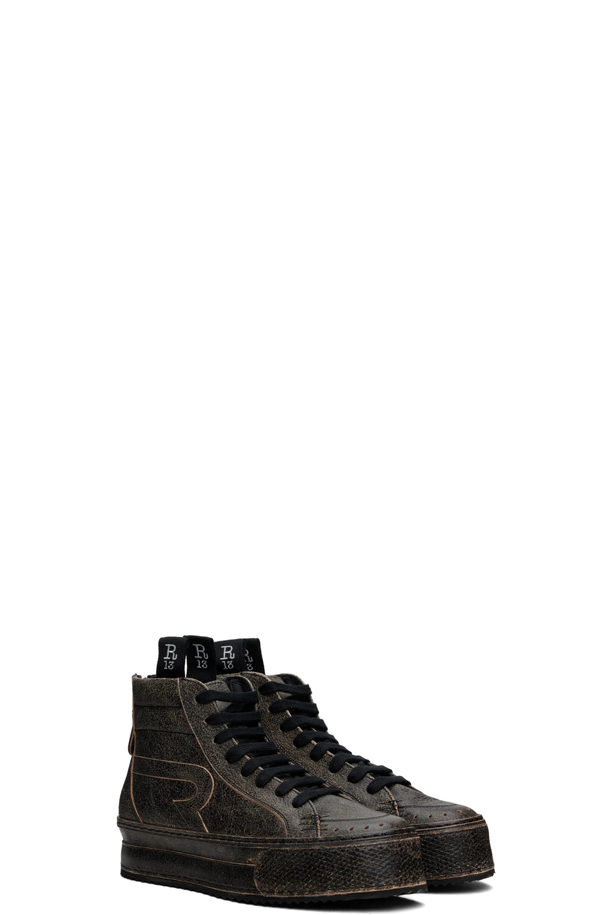 High-top cracked leather sneakers in black. Fading throughout.