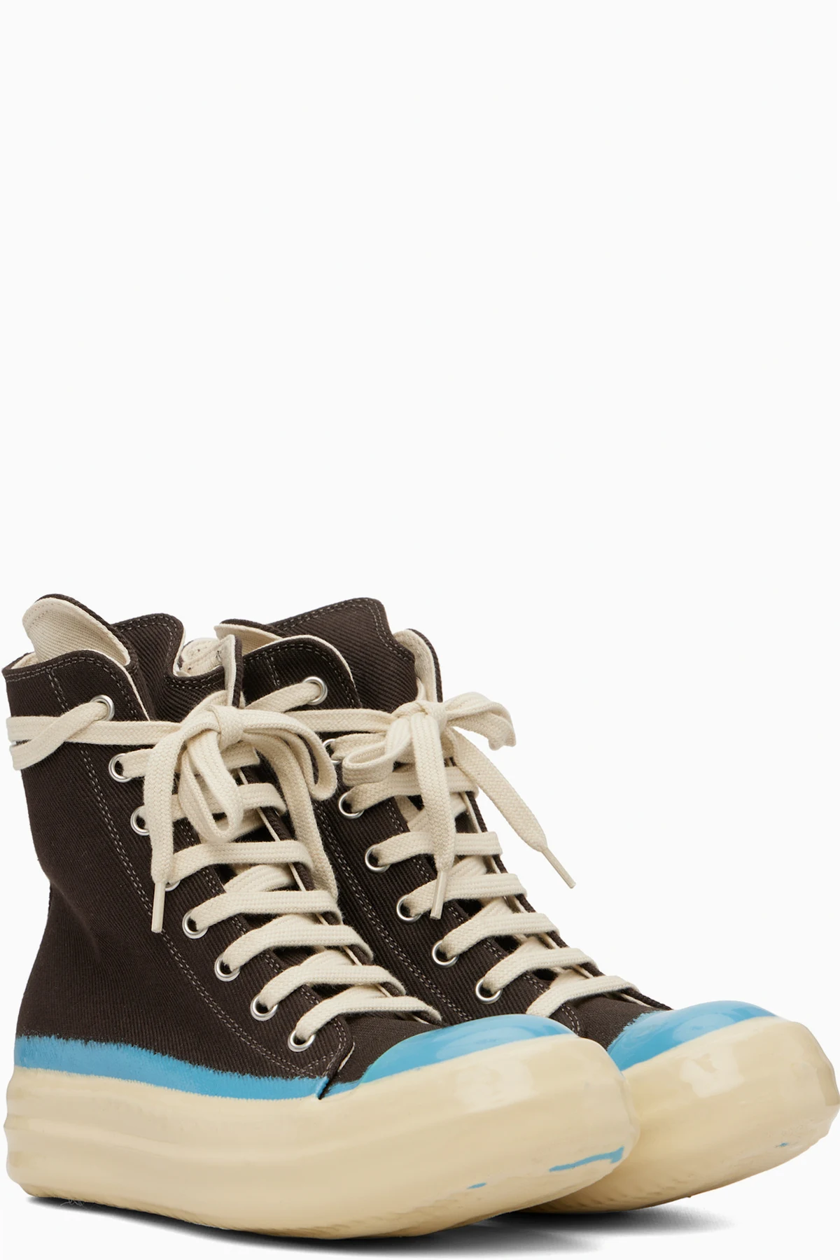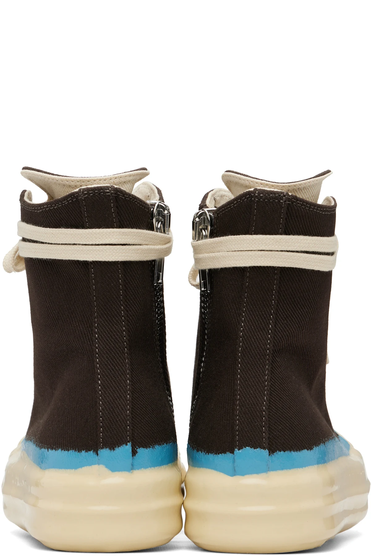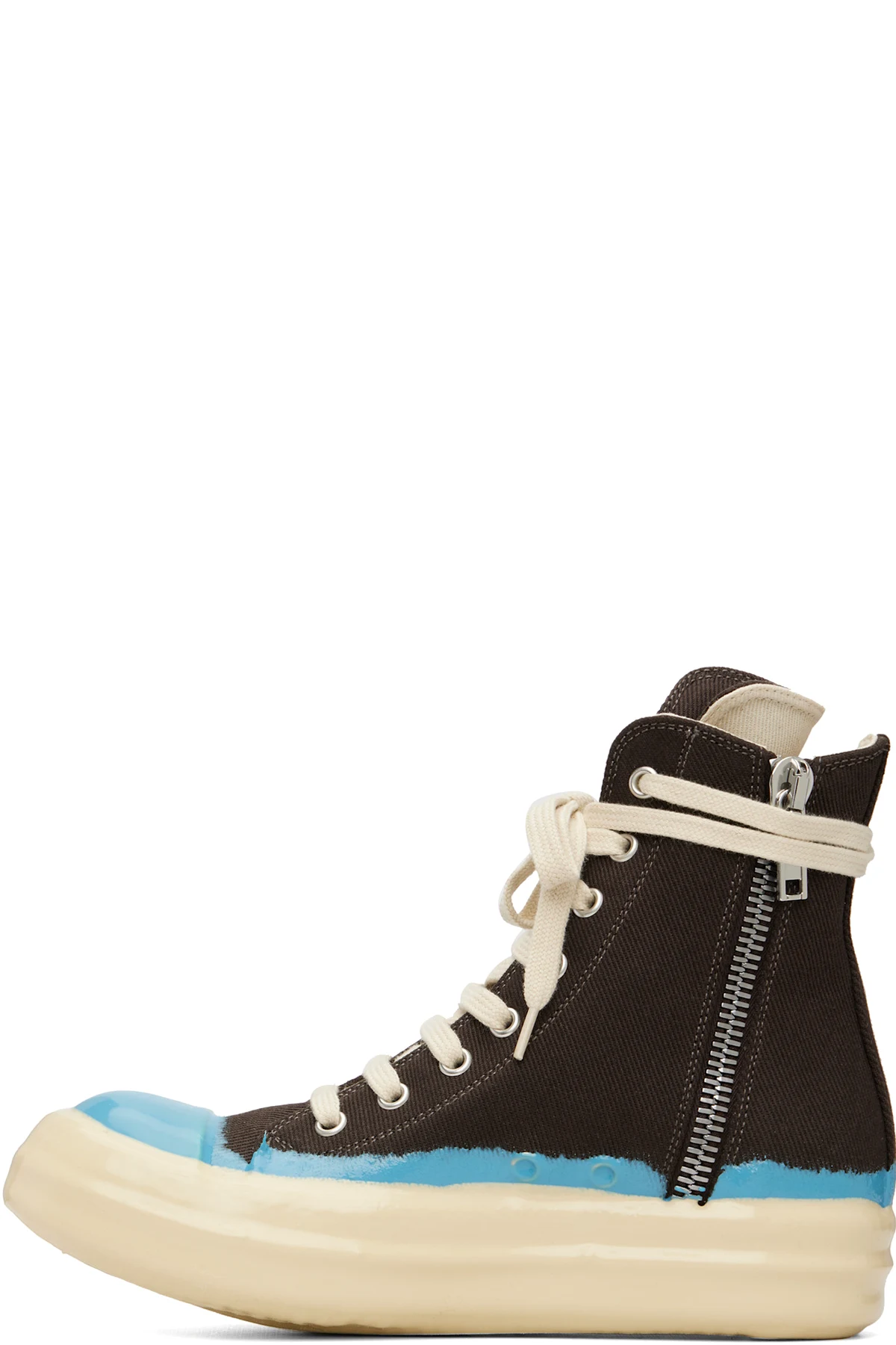 High-top overdyed 13 oz organic cotton denim sneakers.