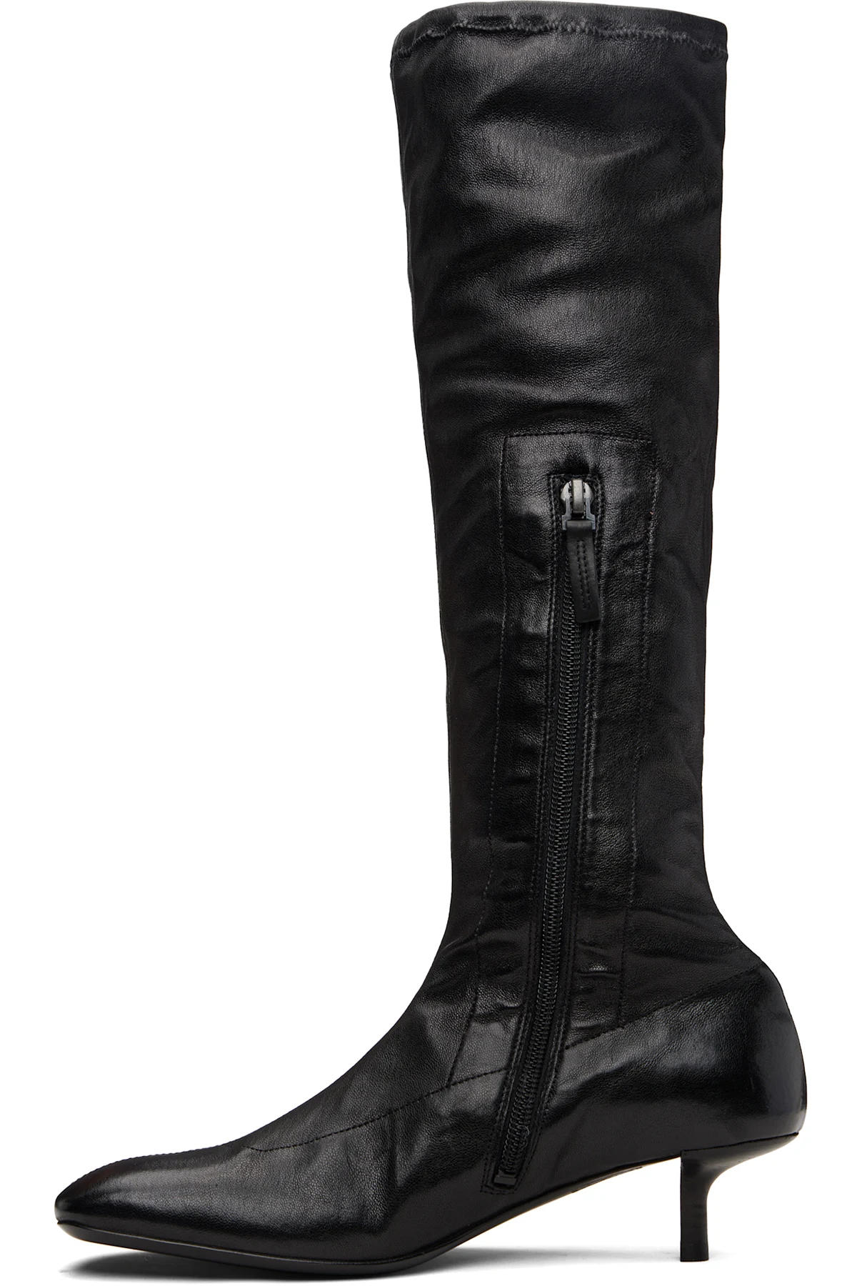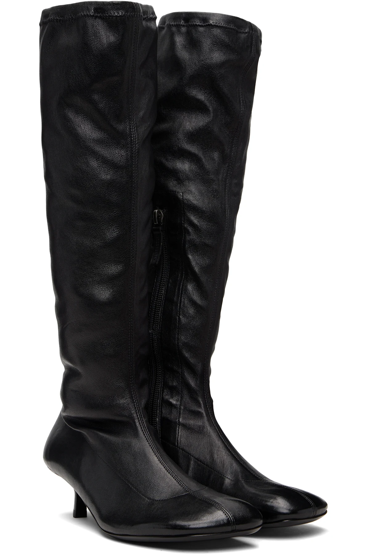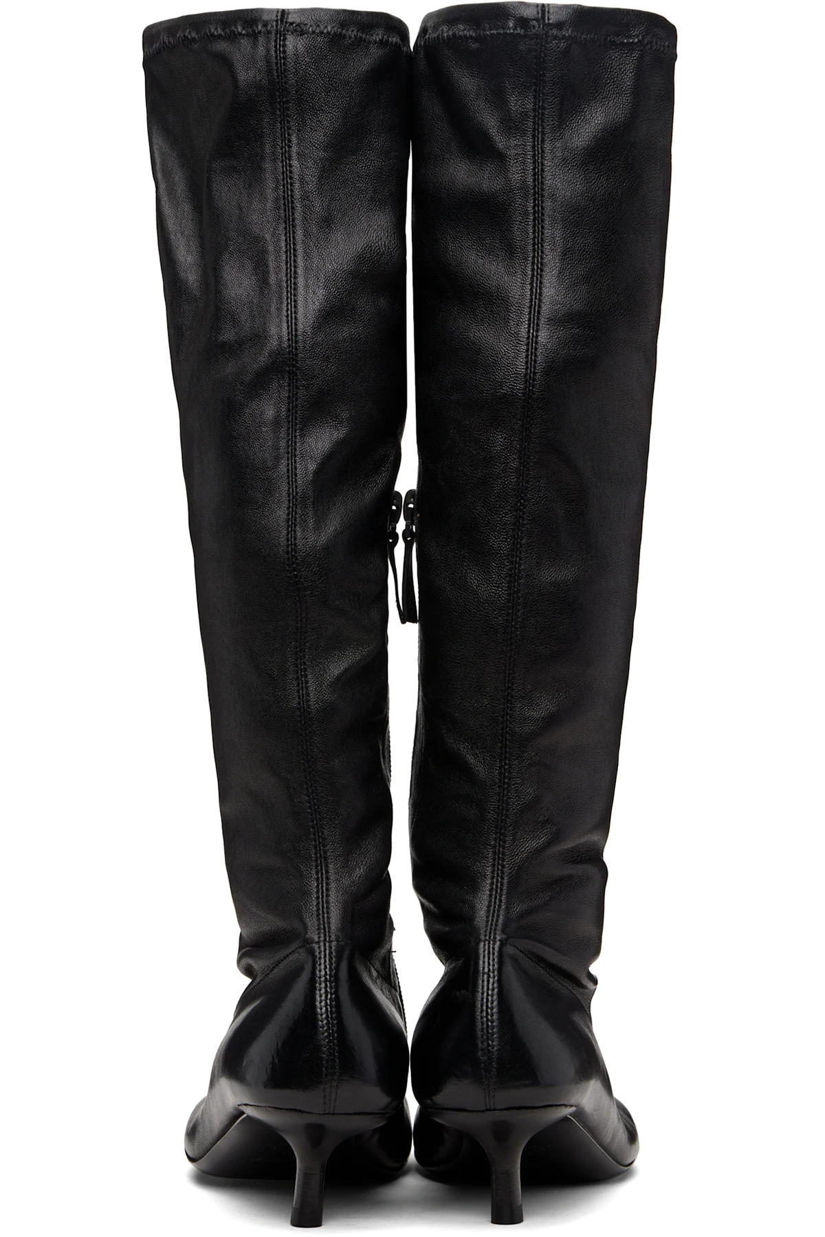 Knee-high grained leather boots.