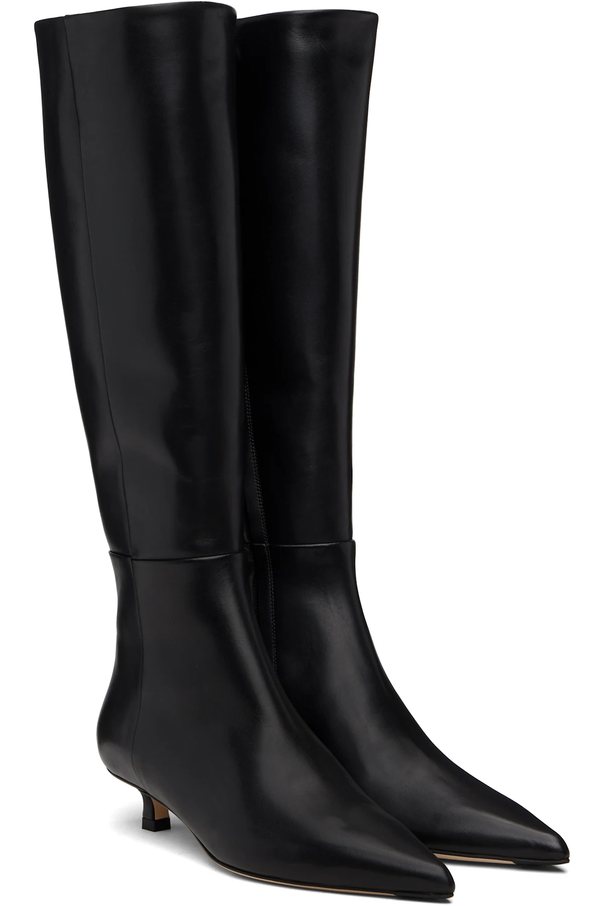 Knee-high polished calfskin boots.