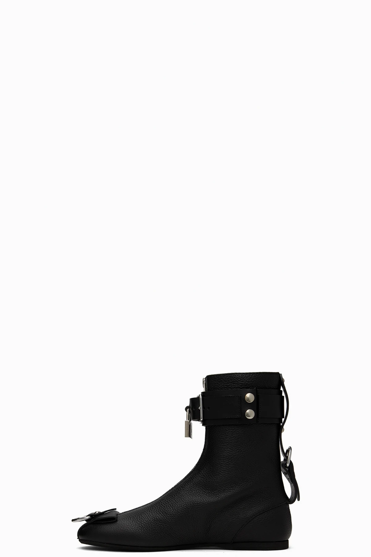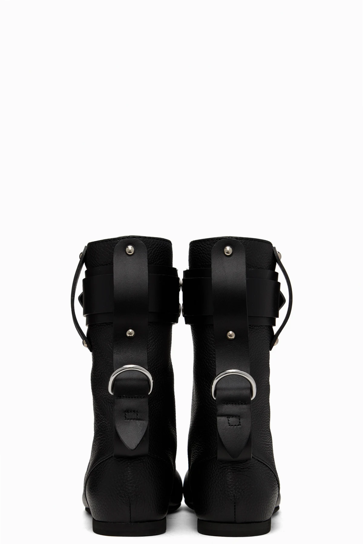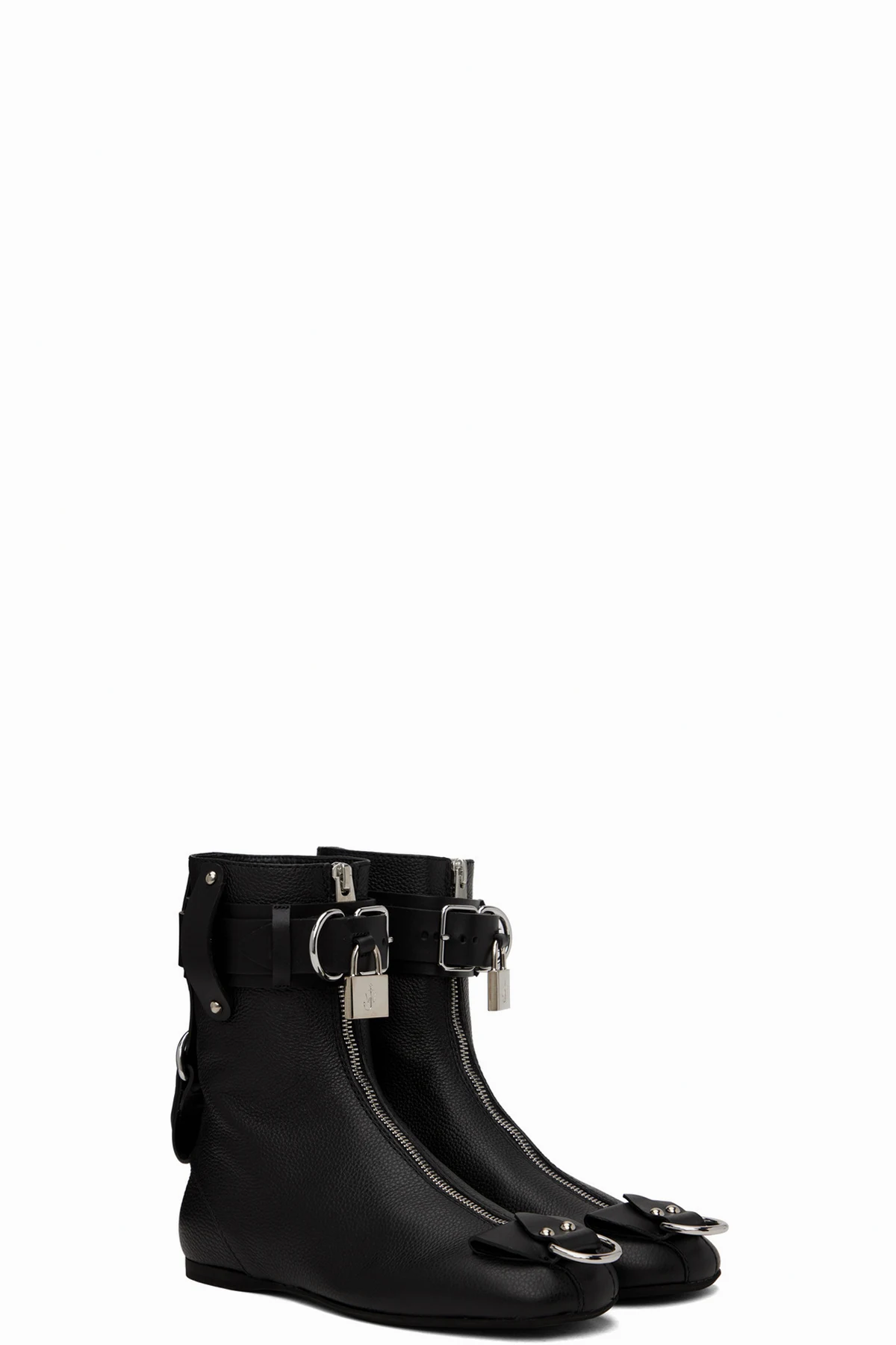 Ankle-high grained calfskin boots in black. D-rings throughout.