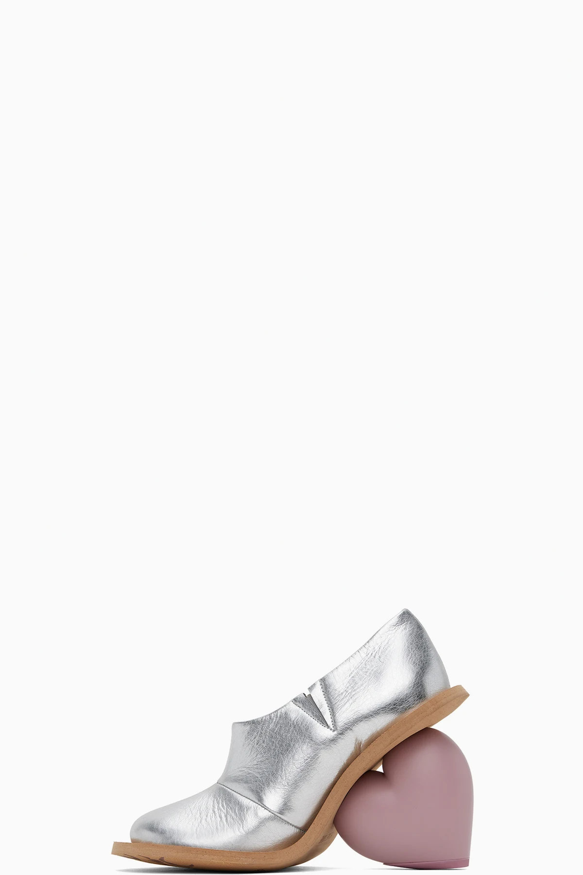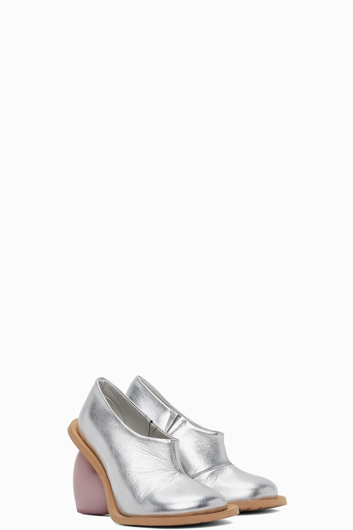 Ankle-high buffed faux-leather boots in metallic silver tone.