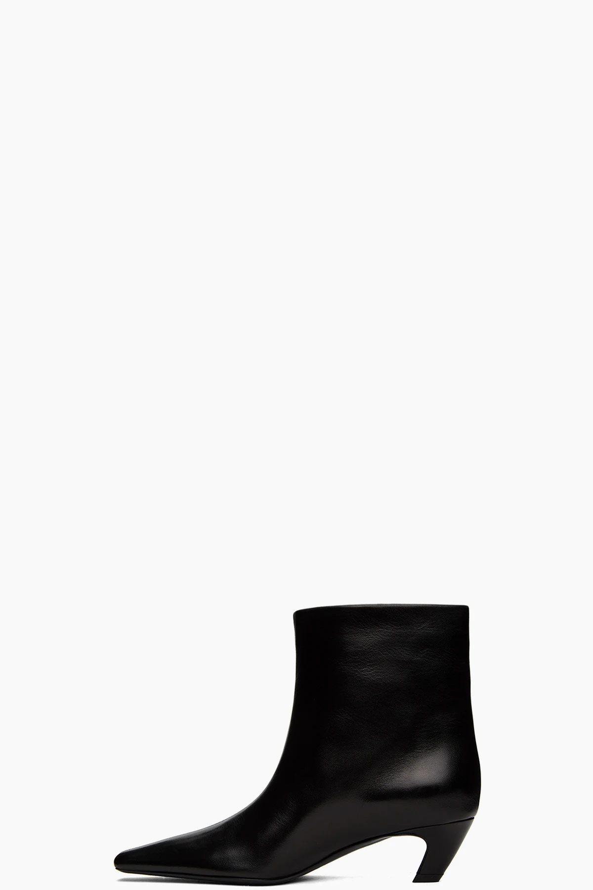 Ankle-high crinkled calfskin boots in black.