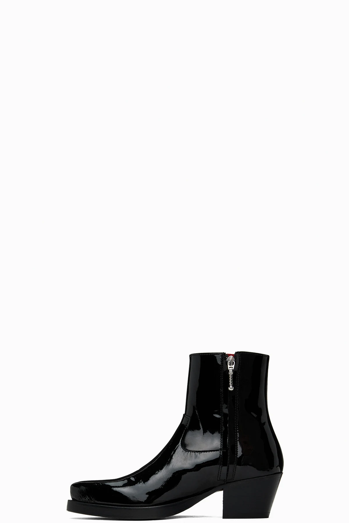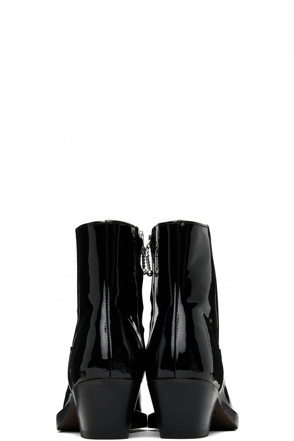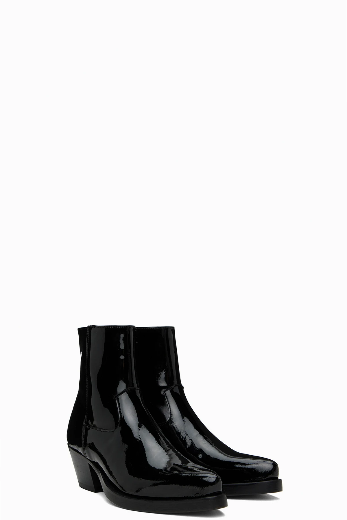 Ankle-high patent leather boots in black.