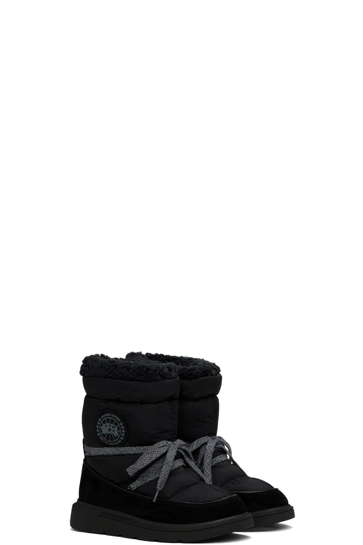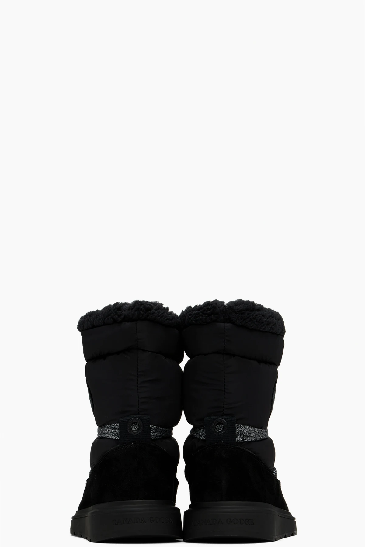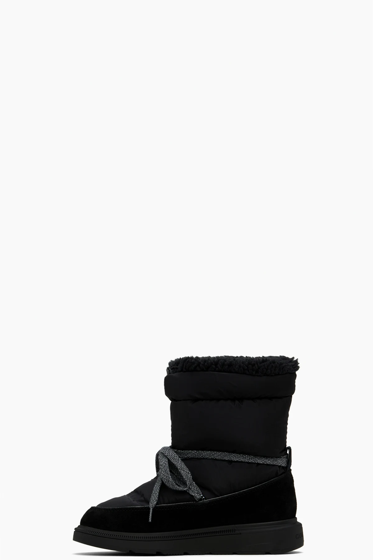 Mid-calf insulated quilted taffeta and suede boots in black.