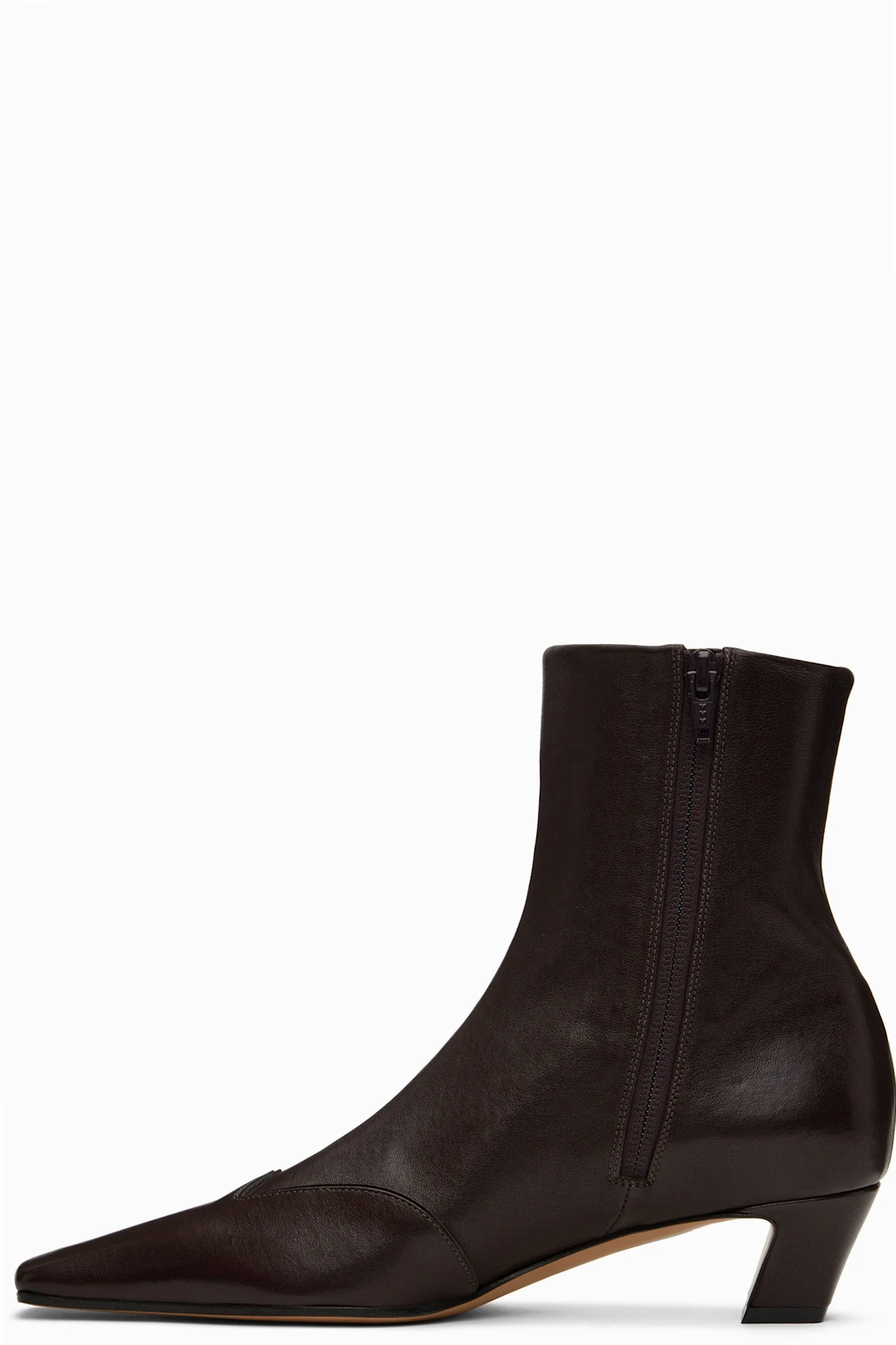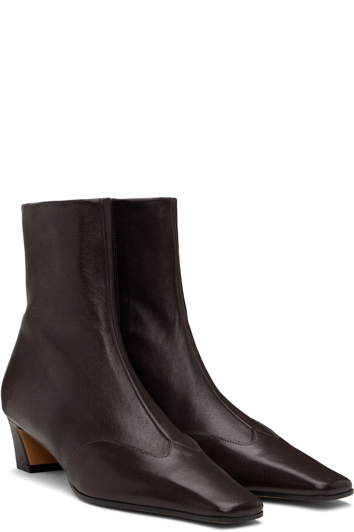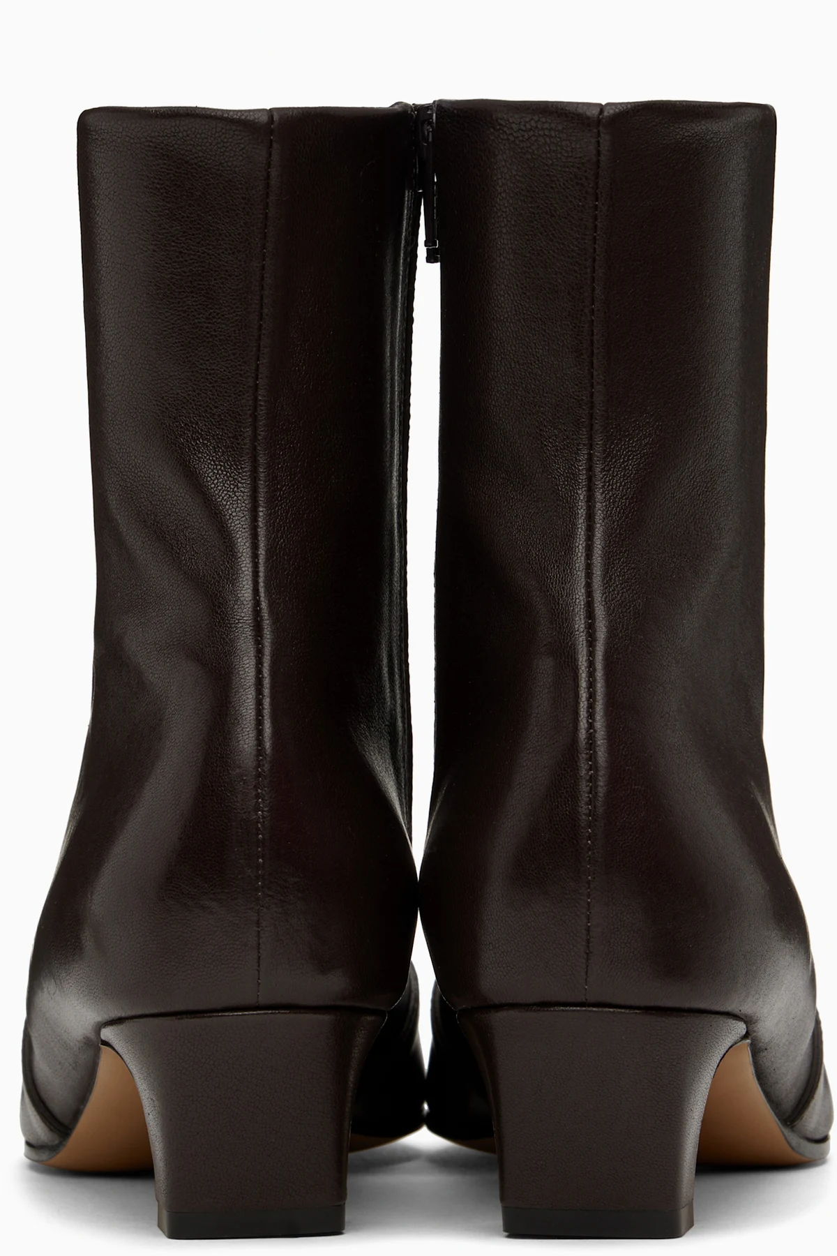 Ankle-high grained lambskin boots in brown.