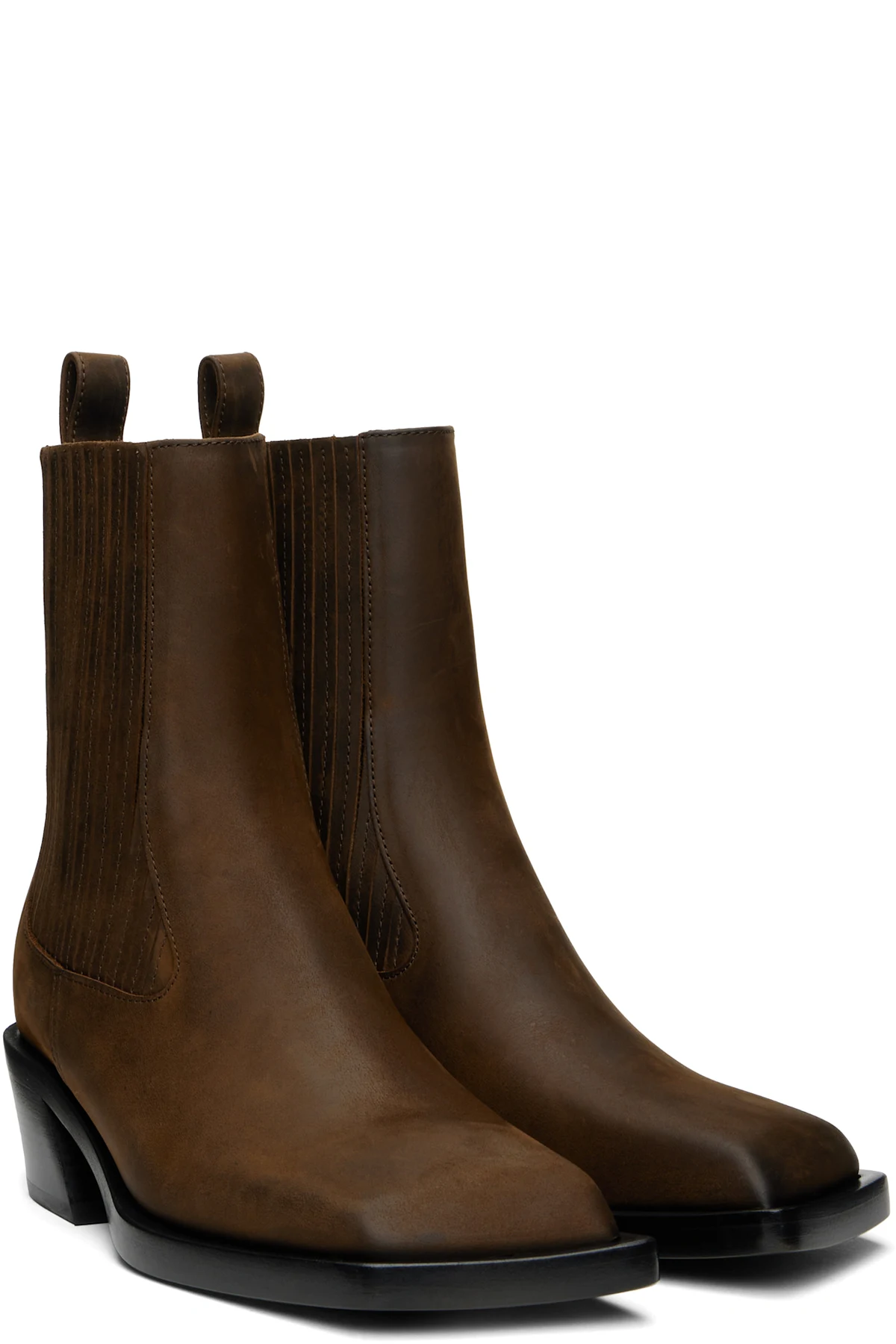 Ankle-high waxed calfskin suede Chelsea boots in brown.