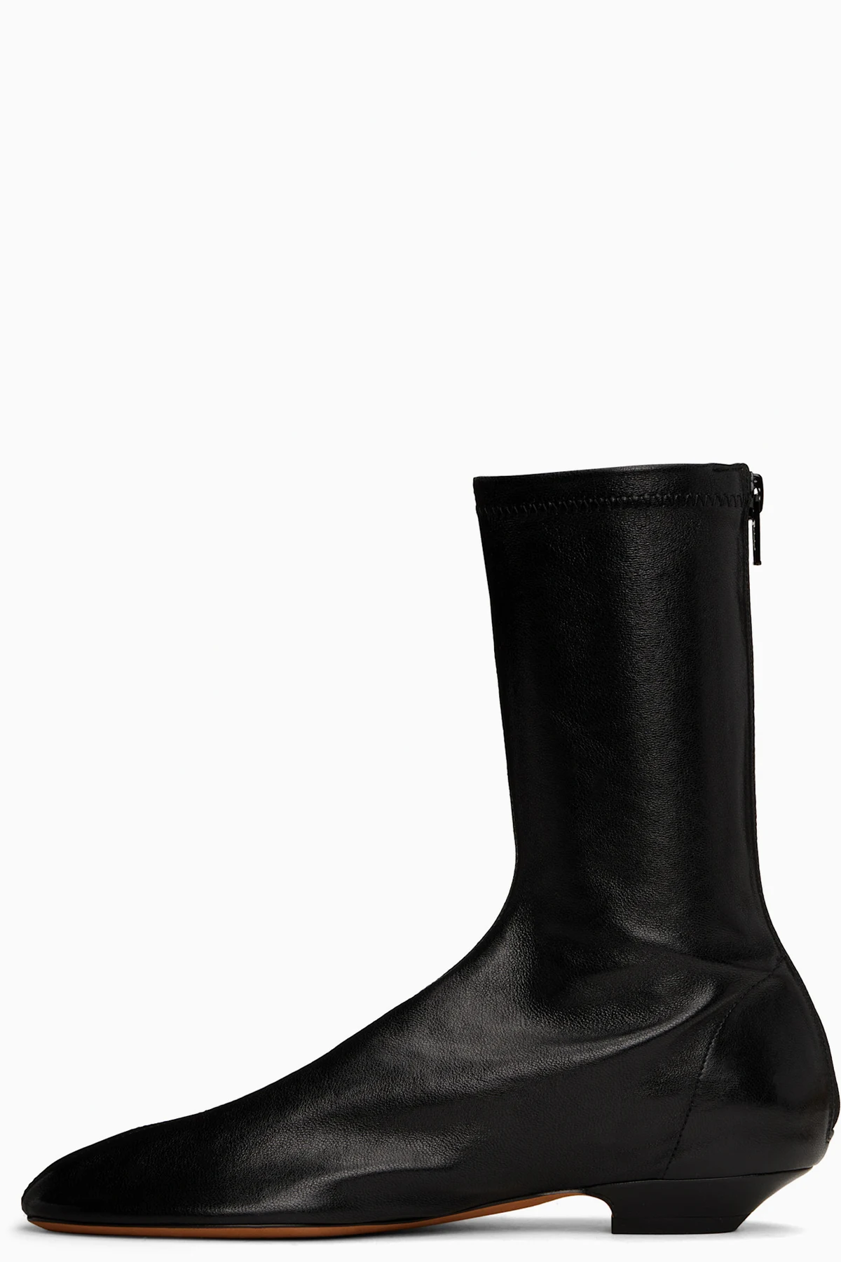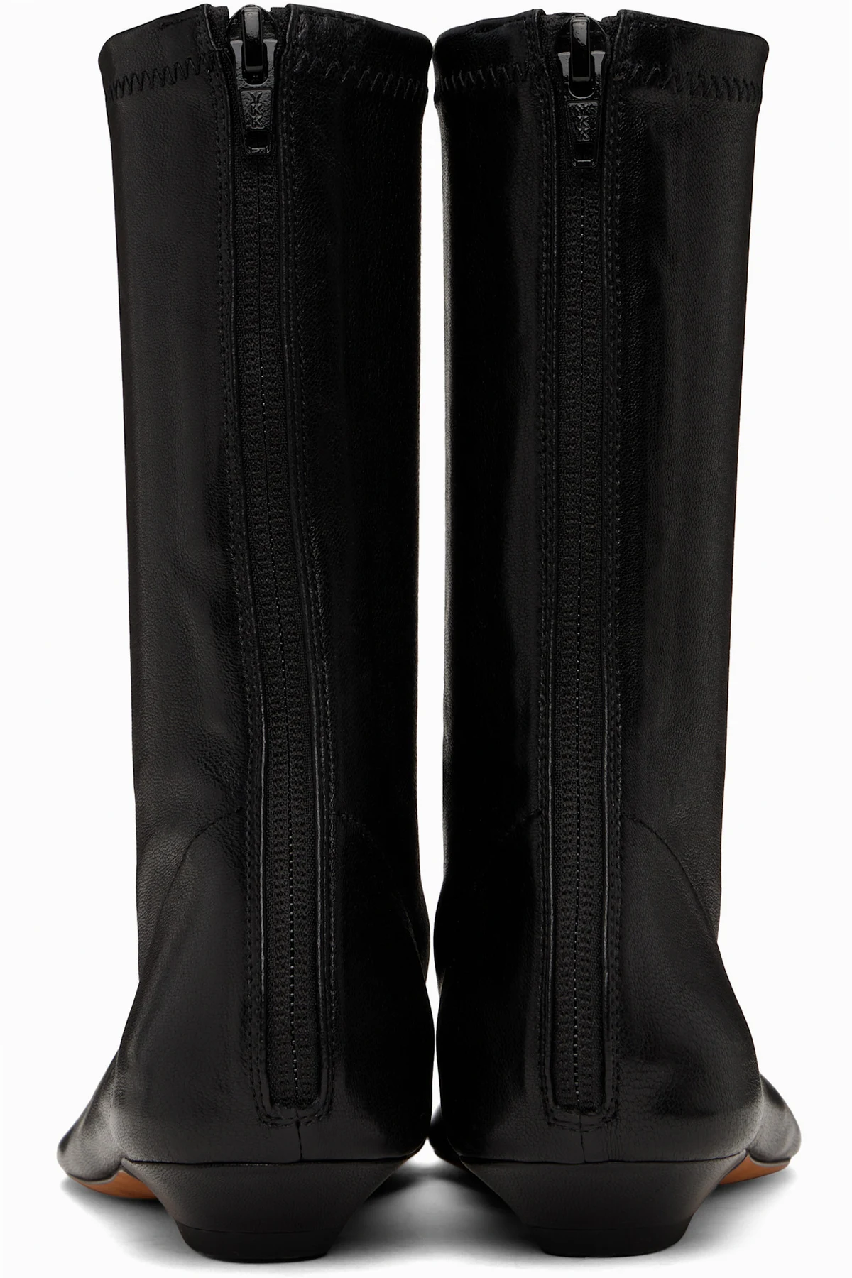 Mid-calf grained nappa lambskin boots in black.