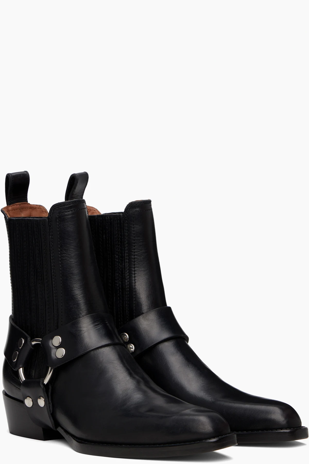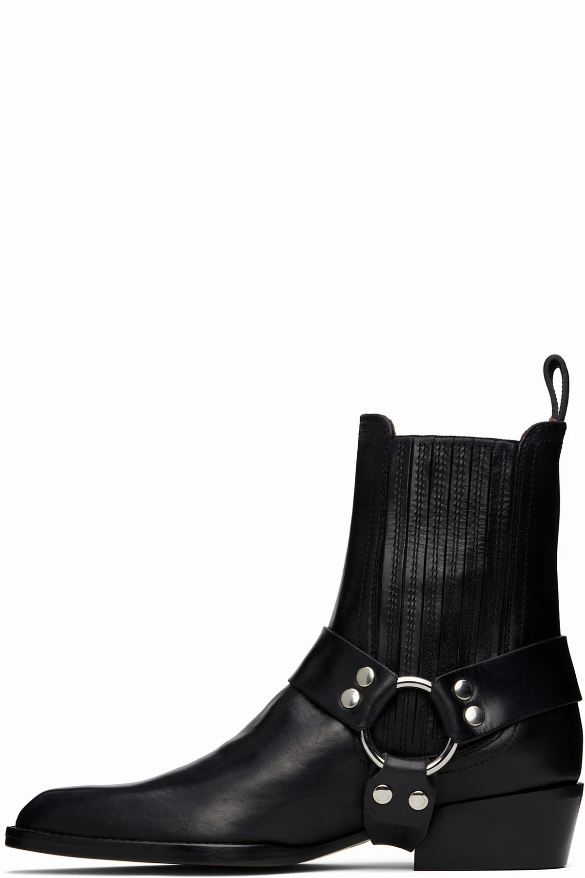 Ankle-high buffed calfskin boots in black.