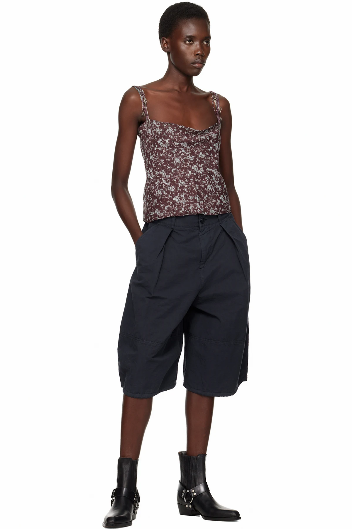 · Harness-style straps at sides