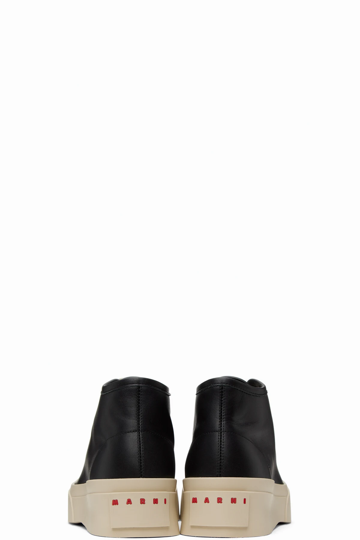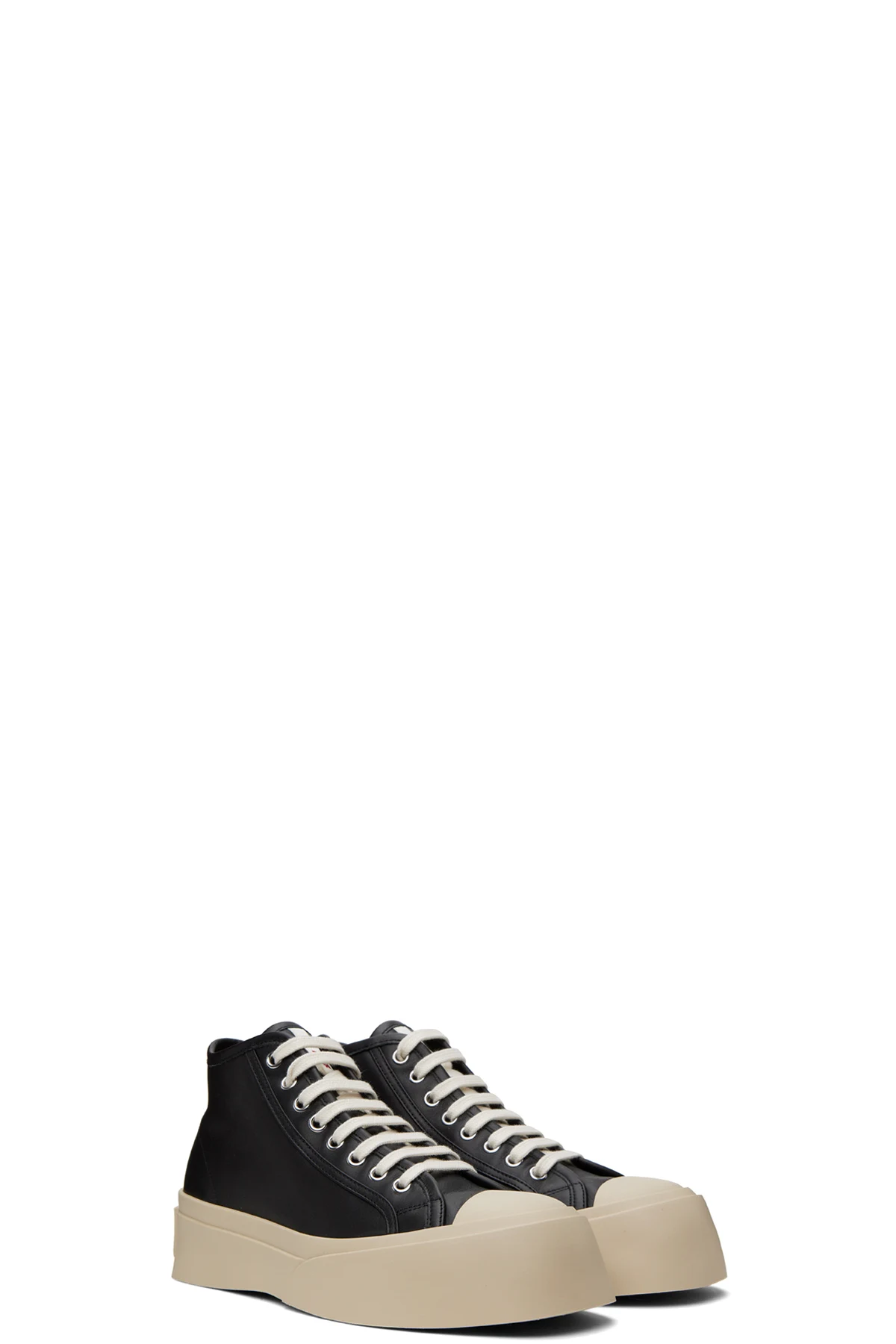 High-top paneled buffed nappa calfskin sneakers in black.