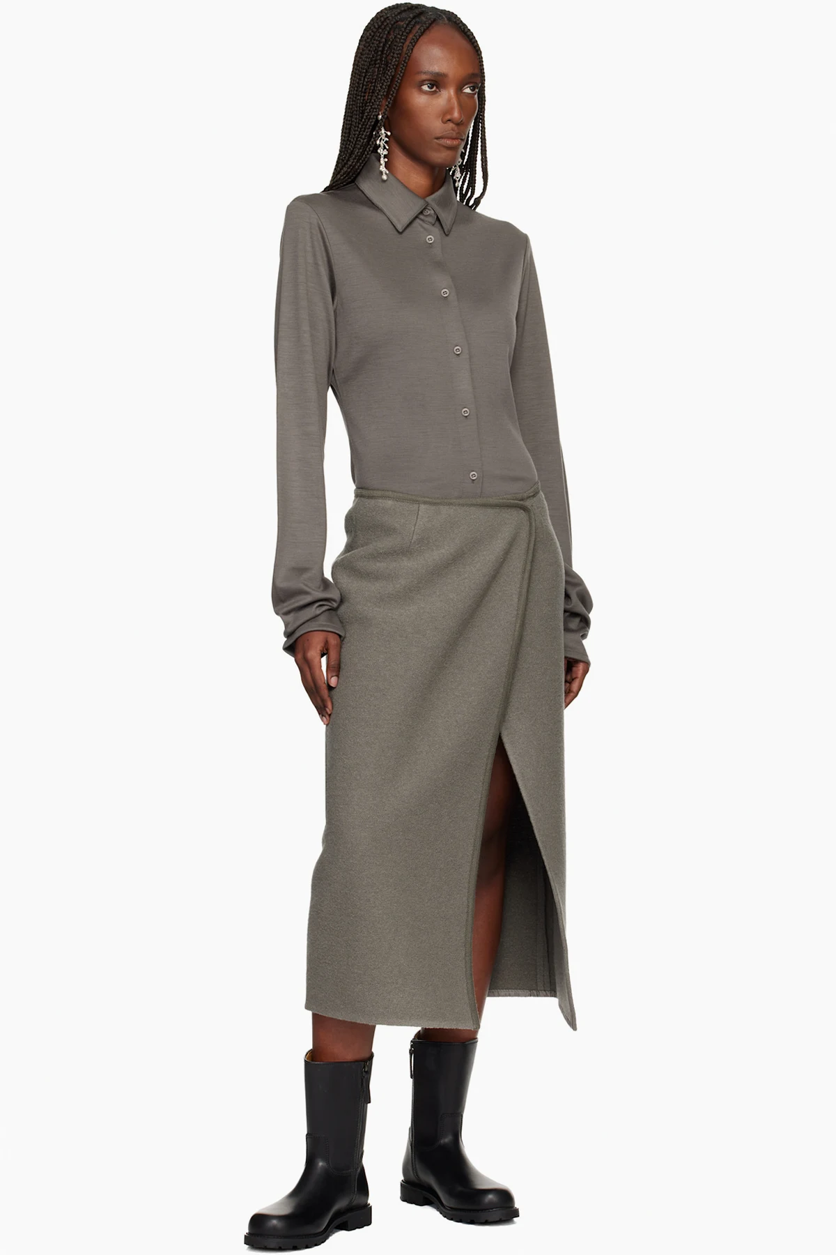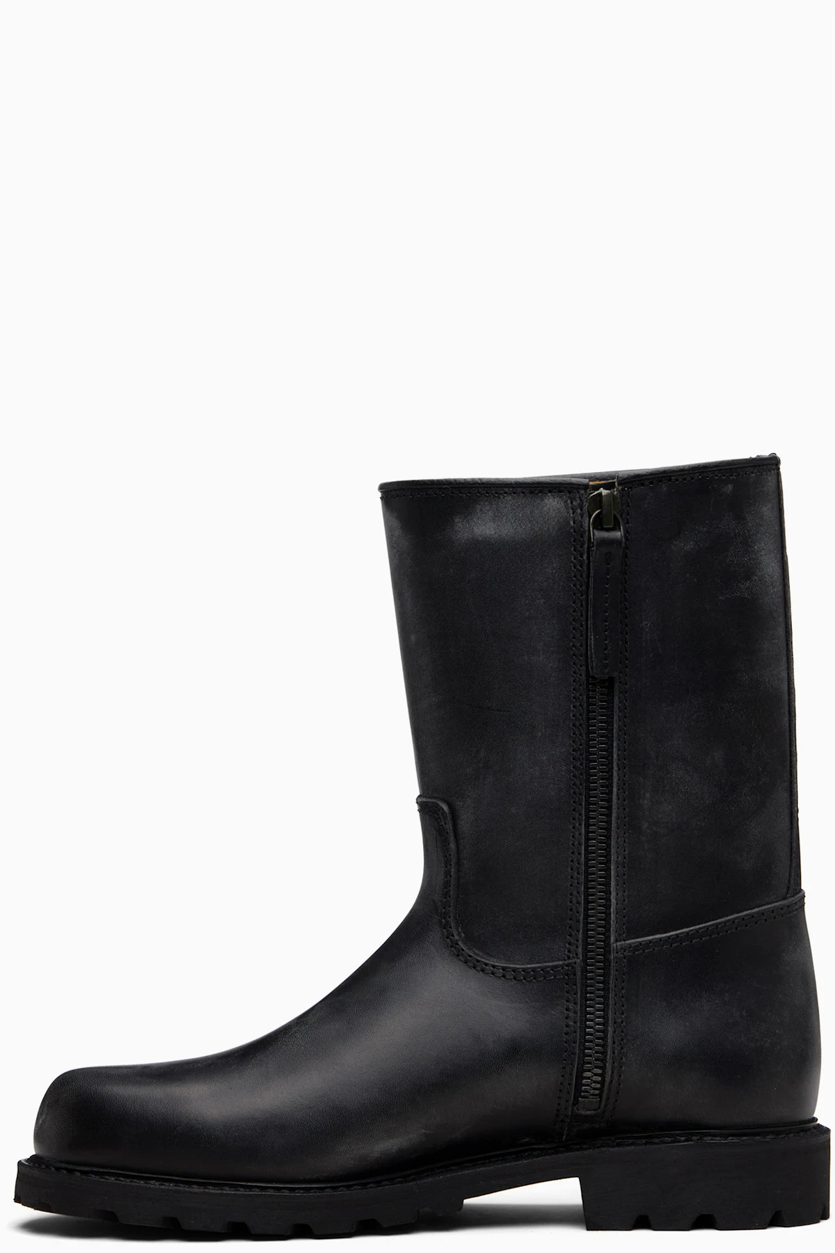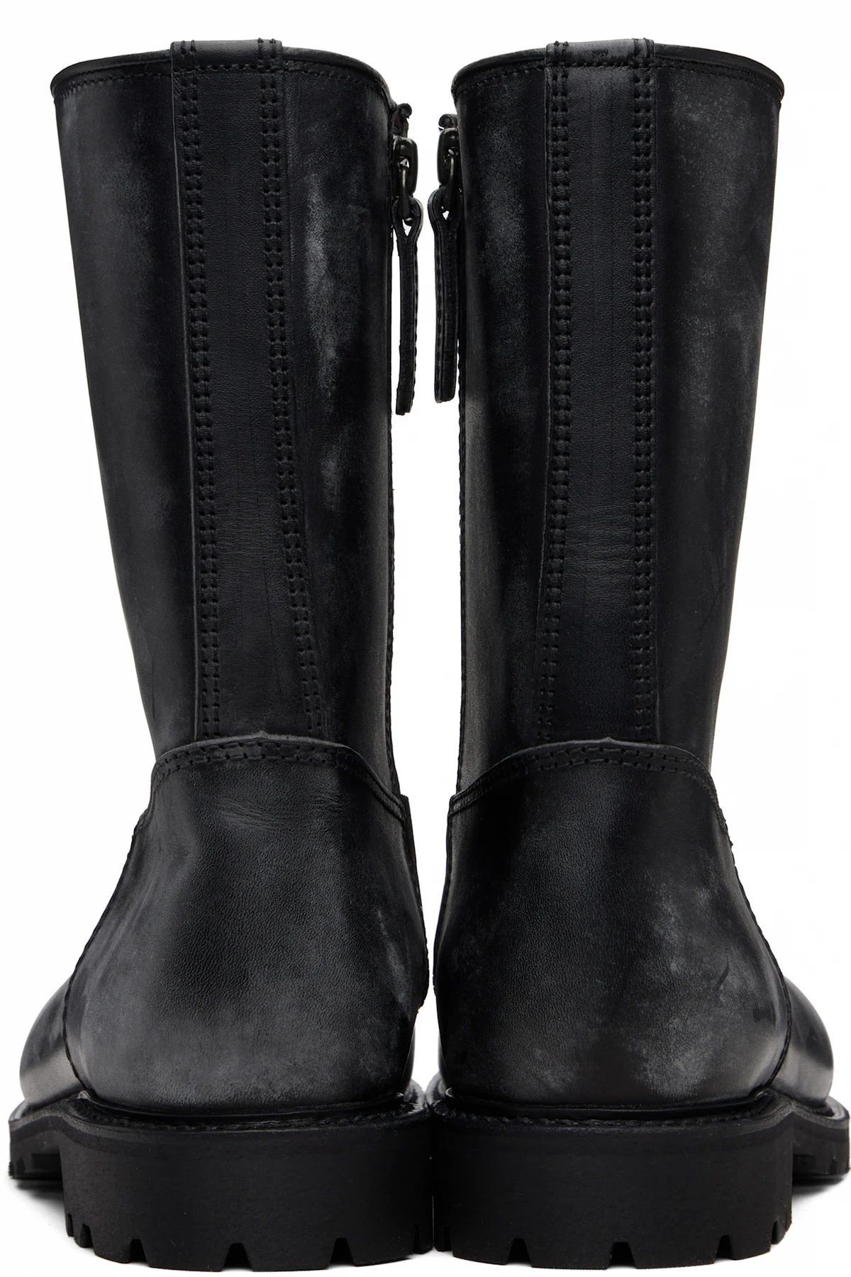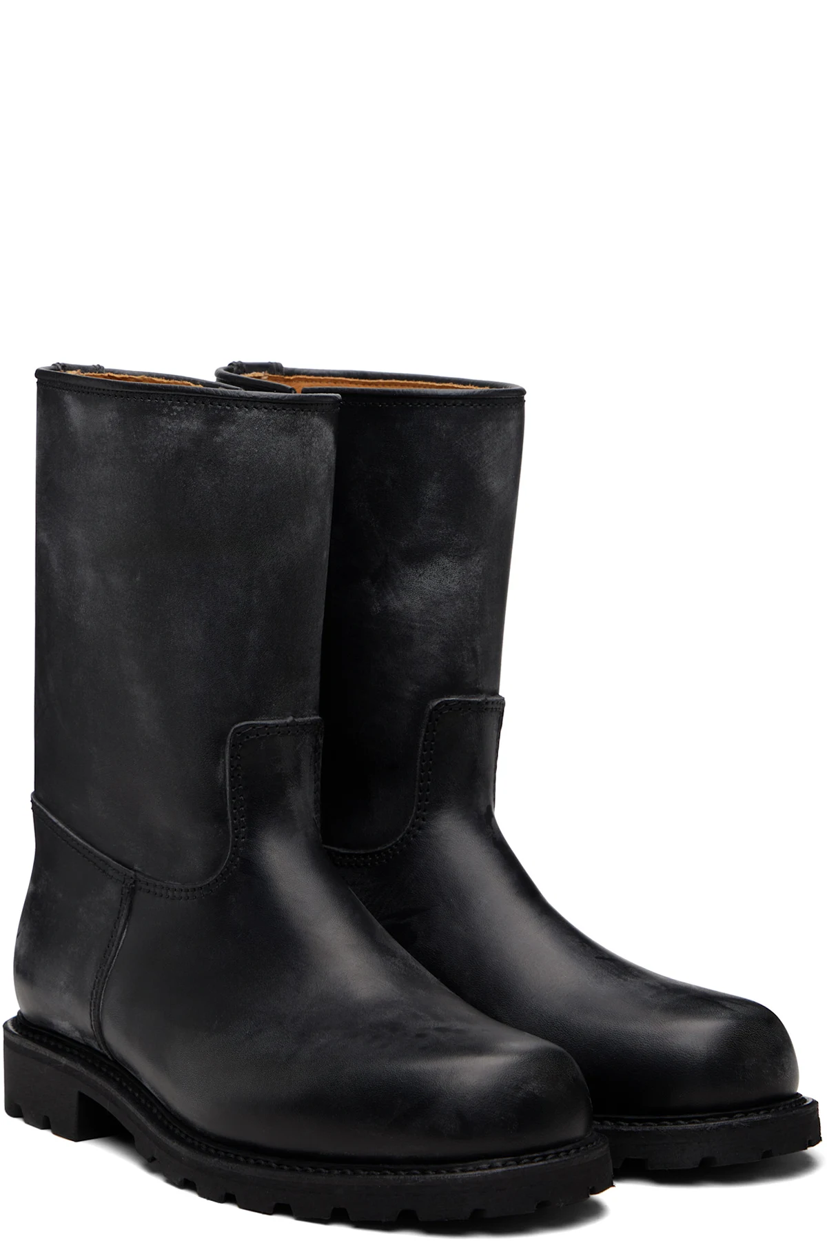 Calf-high grained leather boots.