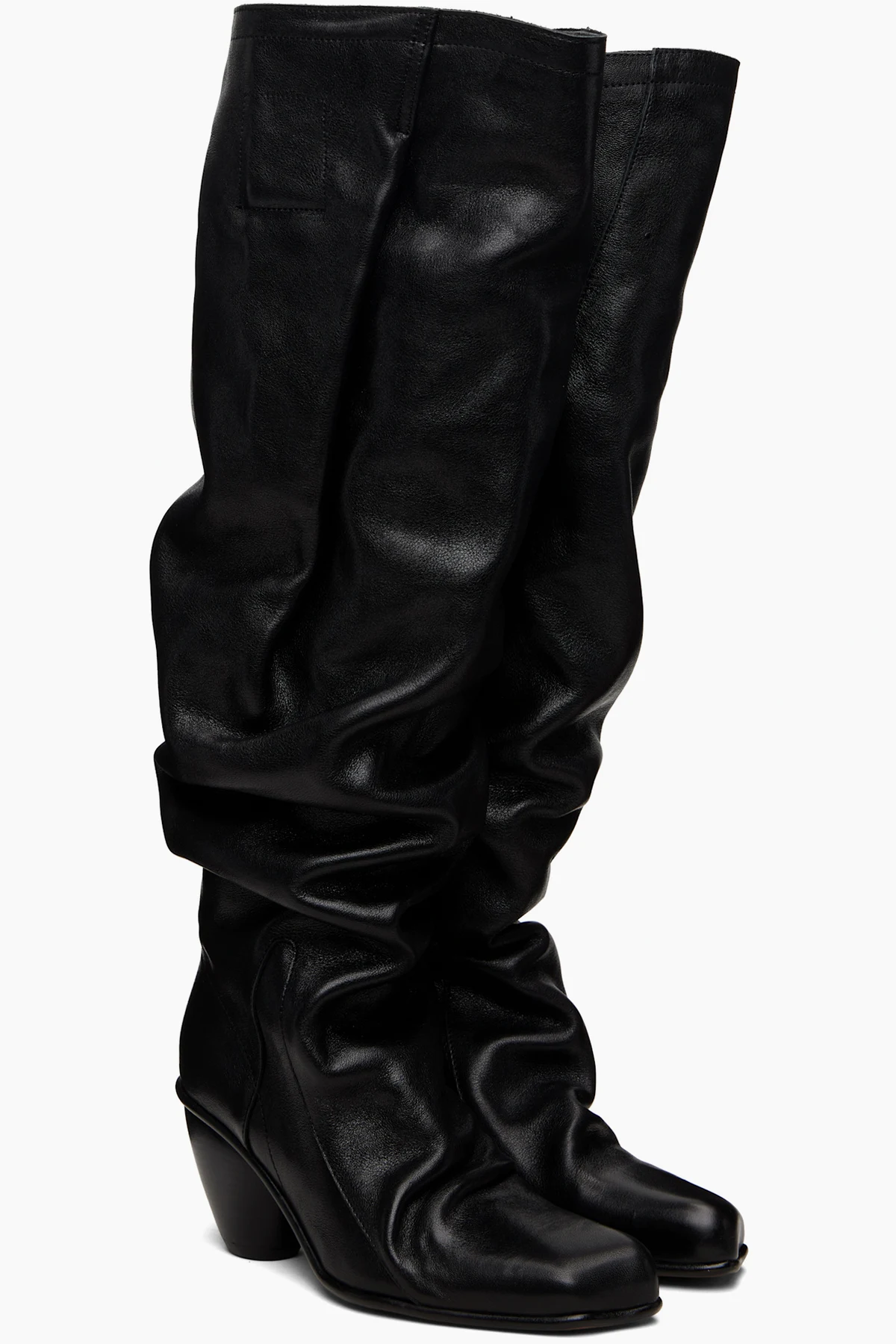Knee-high vegetable-tanned grained calfskin boots.