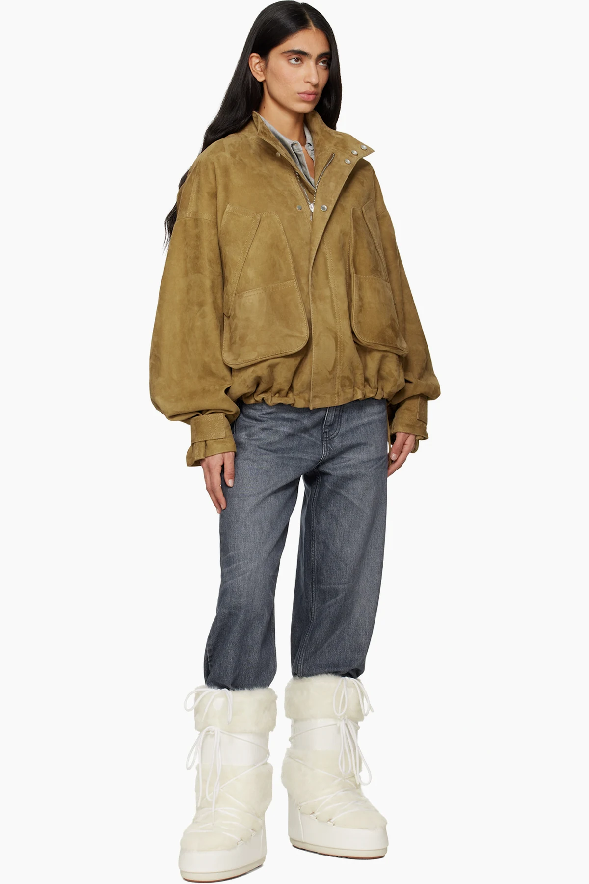 Mid-calf insulated faux-fur and buffed faux-leather boots.