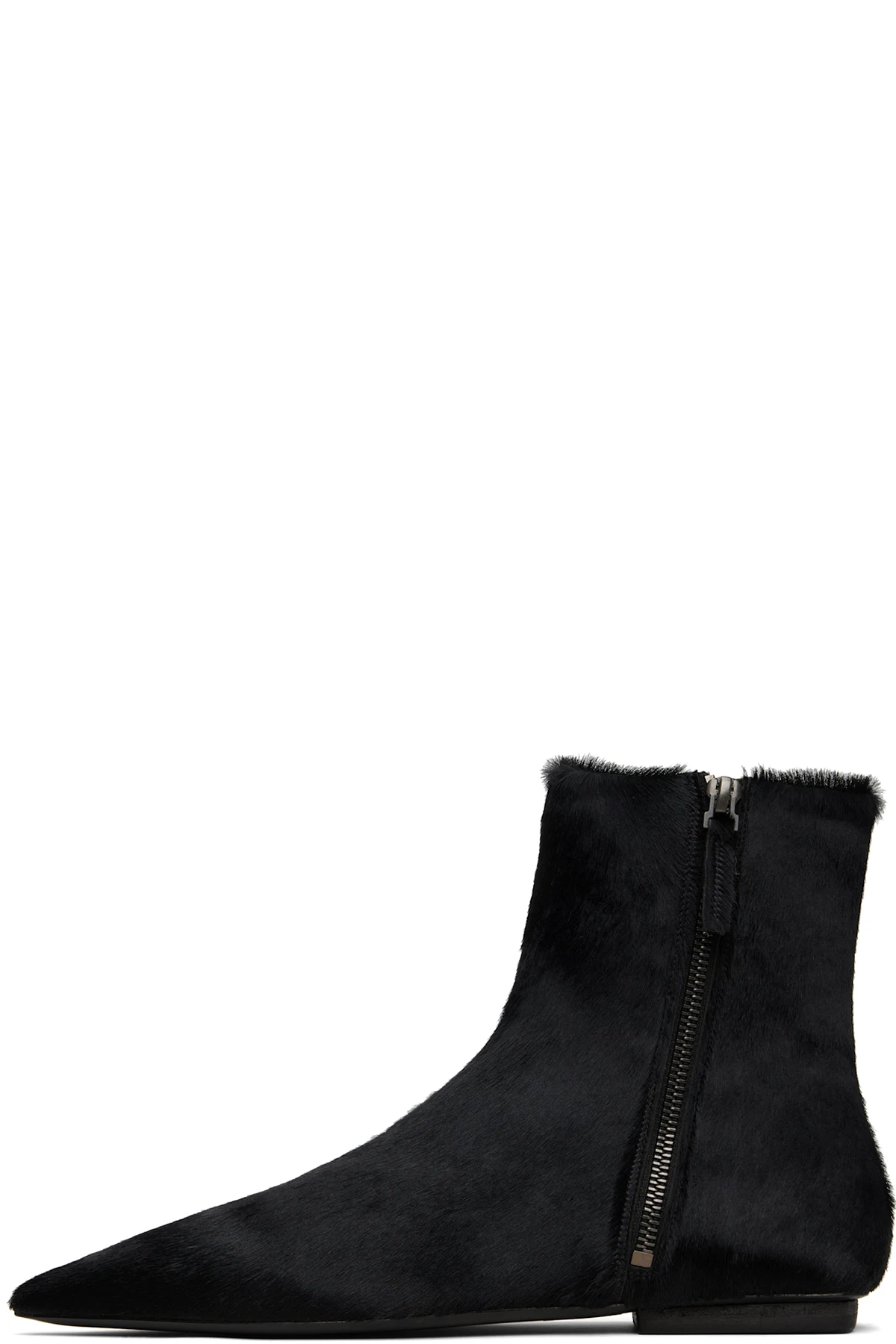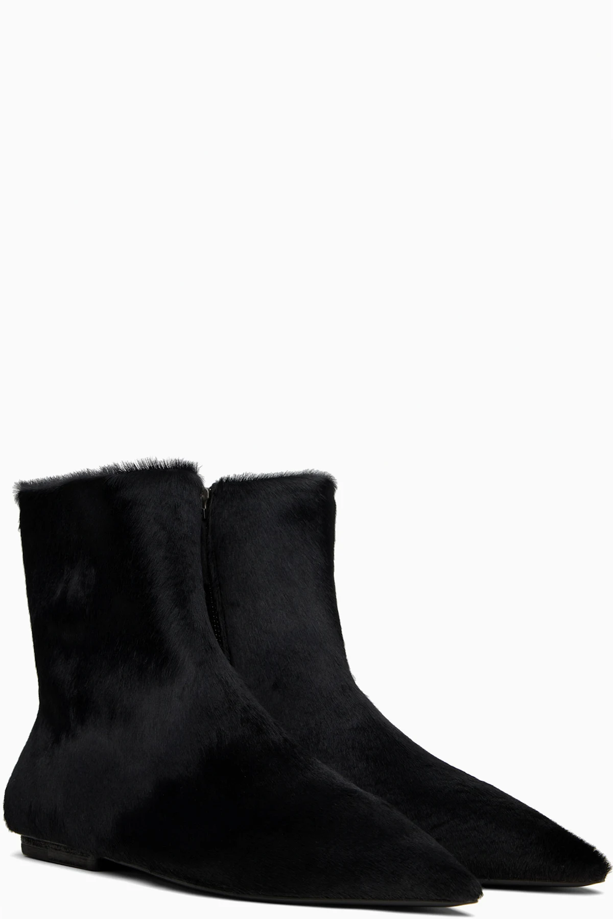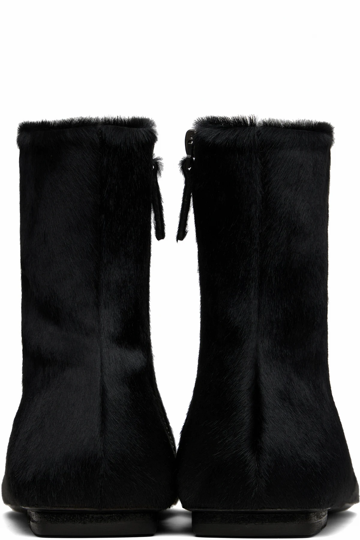Ankle-high hair-on-leather boots in black.