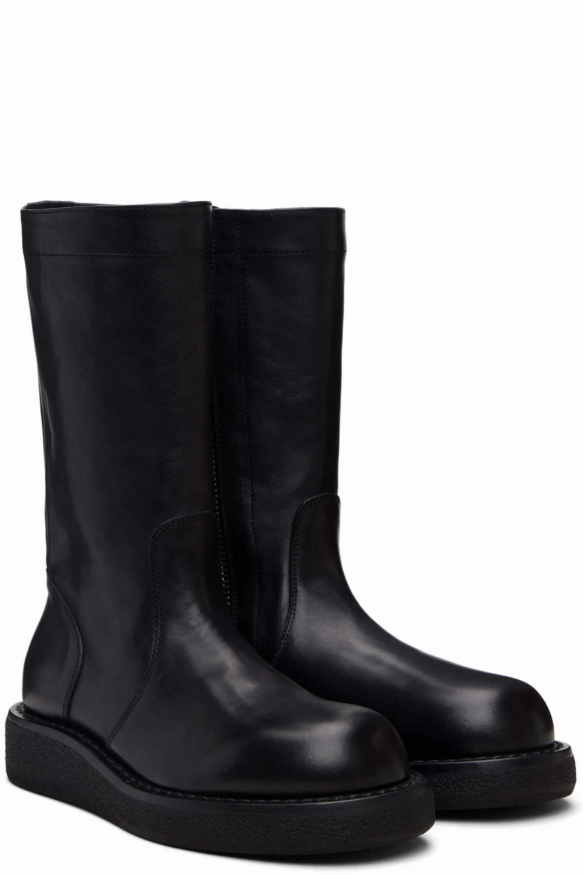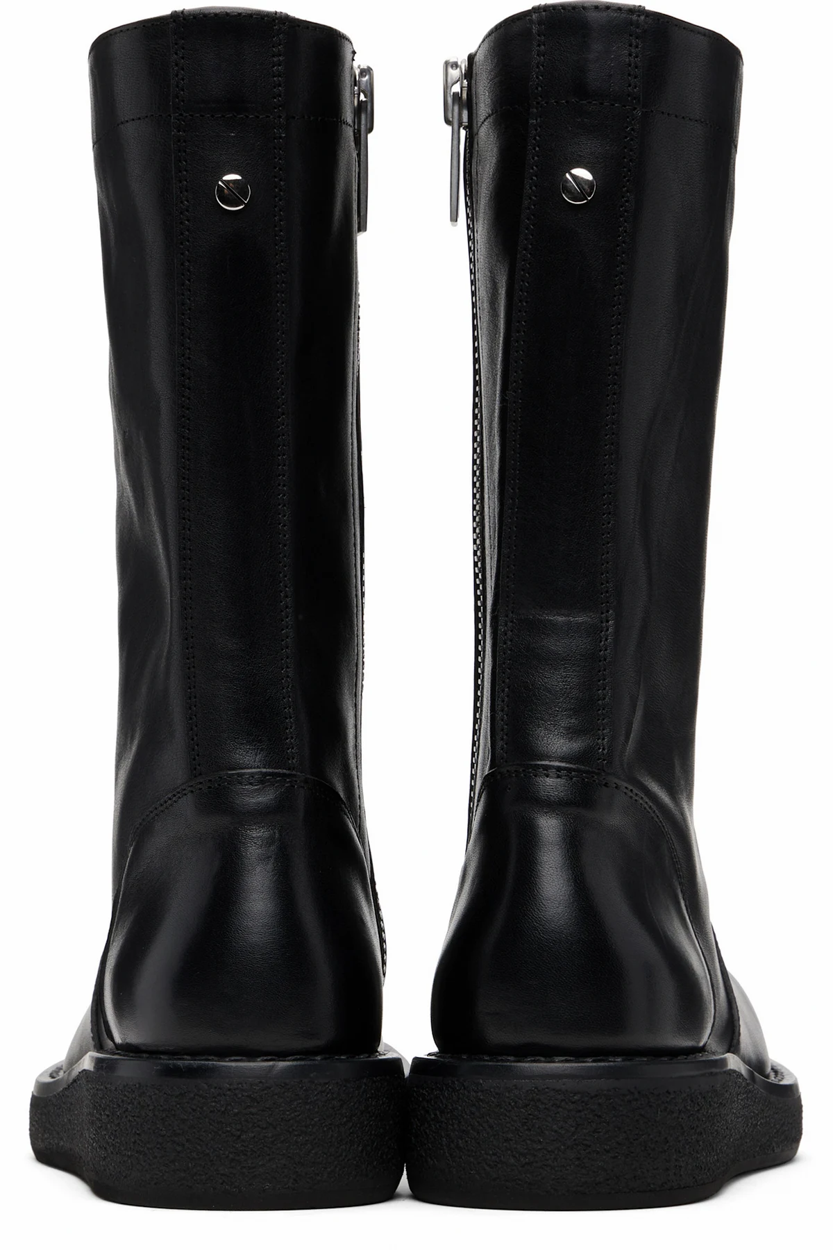 Mid-calf grained calfskin boots.