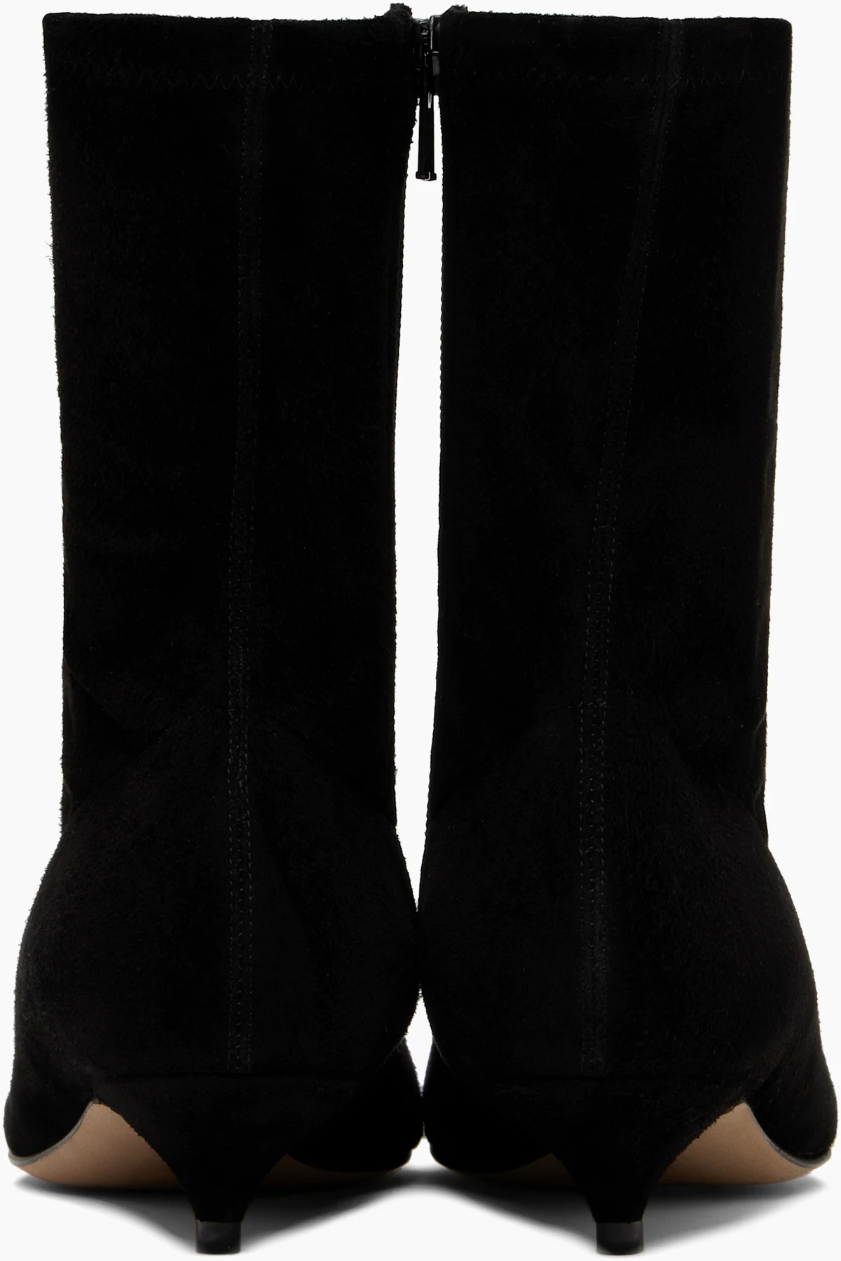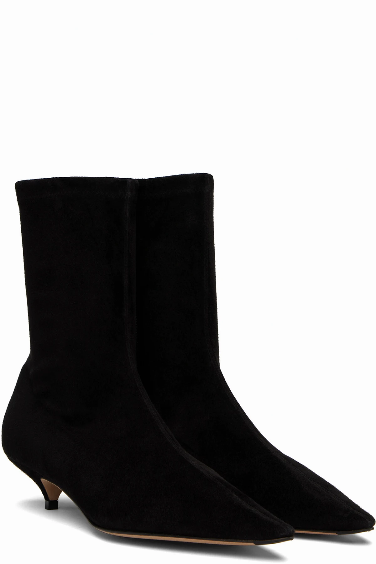 Ankle-high stretch calfskin suede boots.