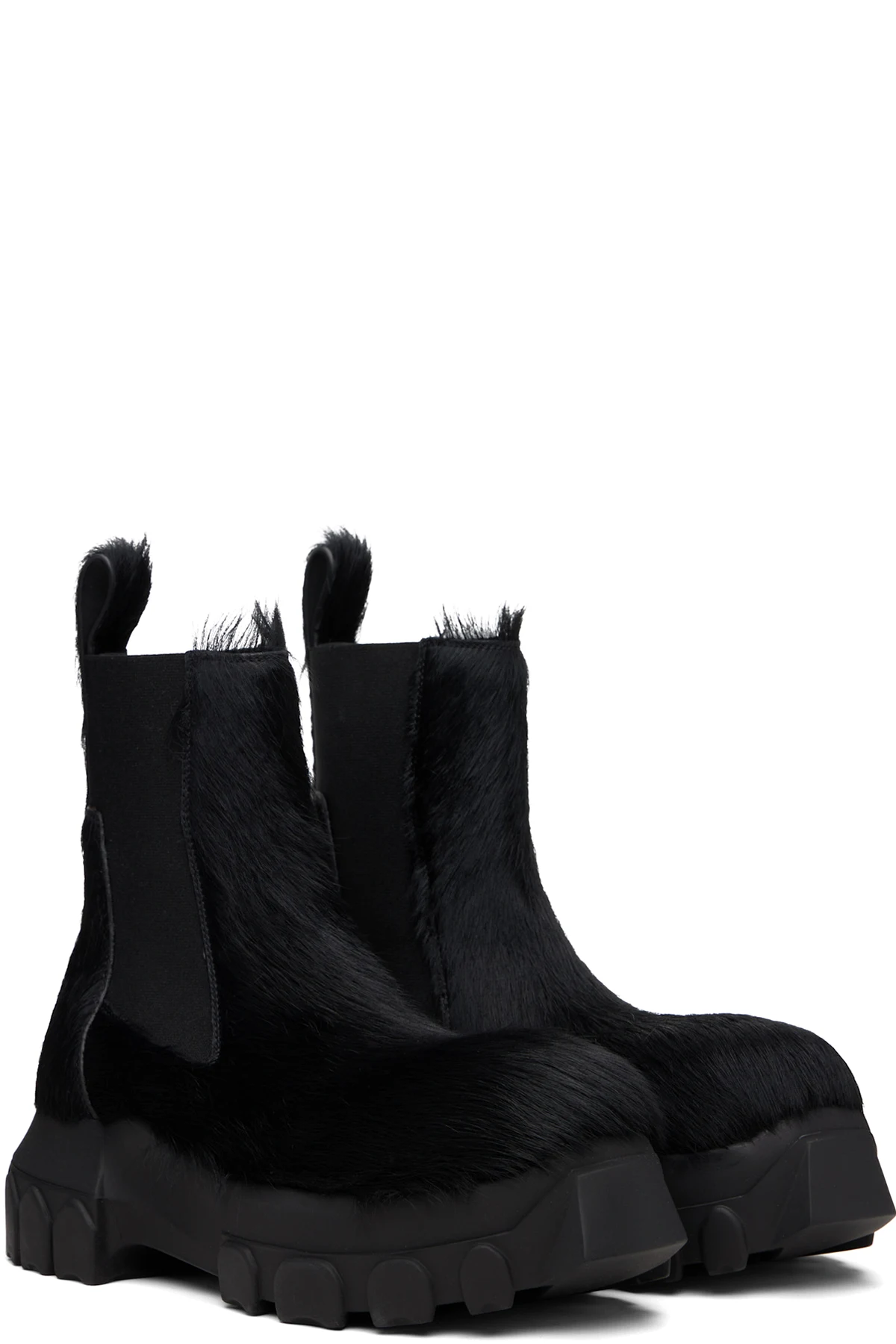 Ankle-high hair-on-leather Chelsea boots.
