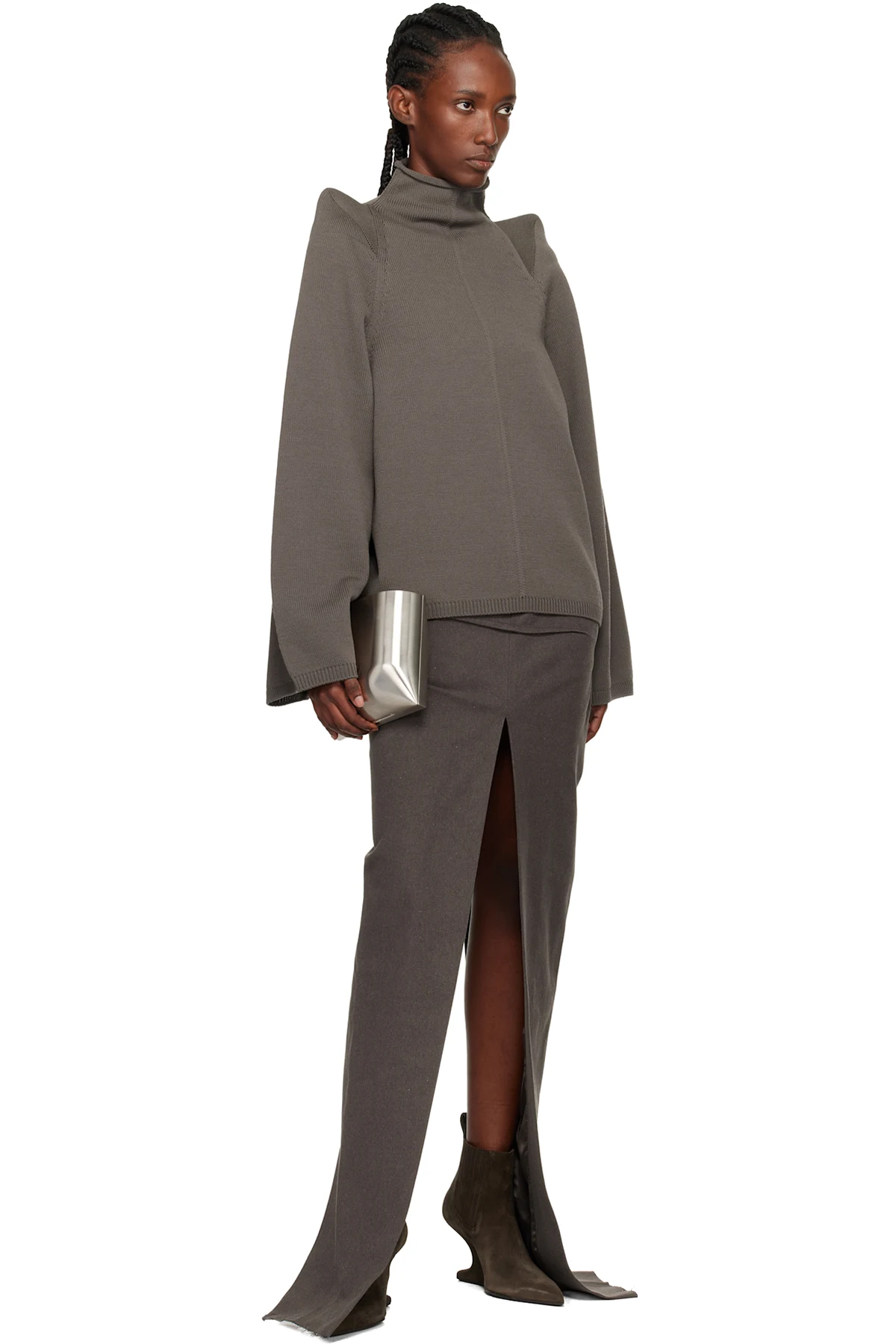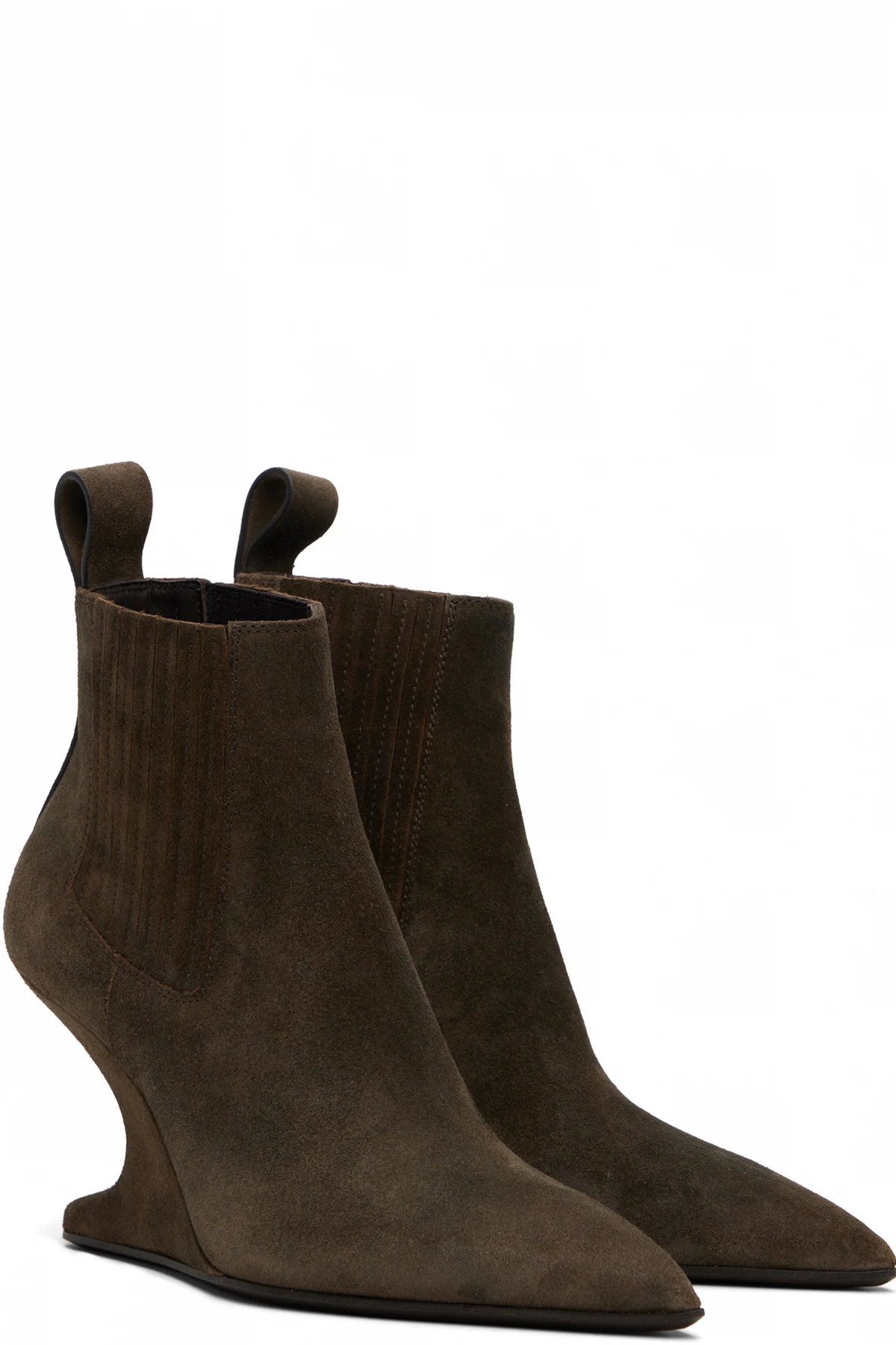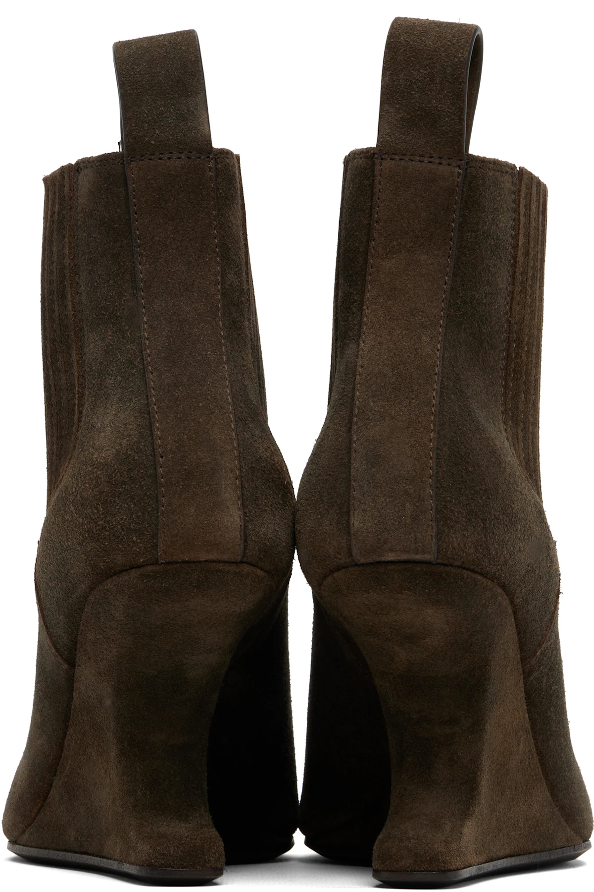 Ankle-high suede boots.